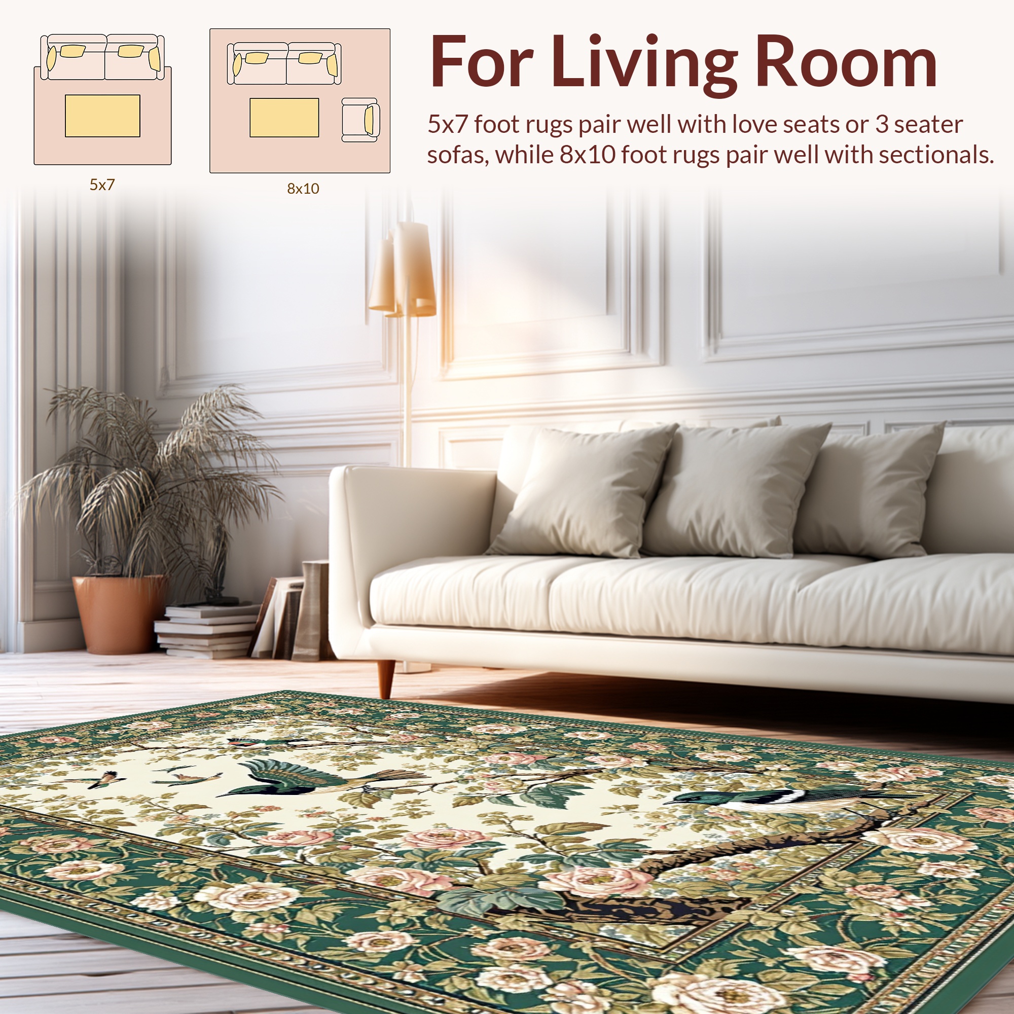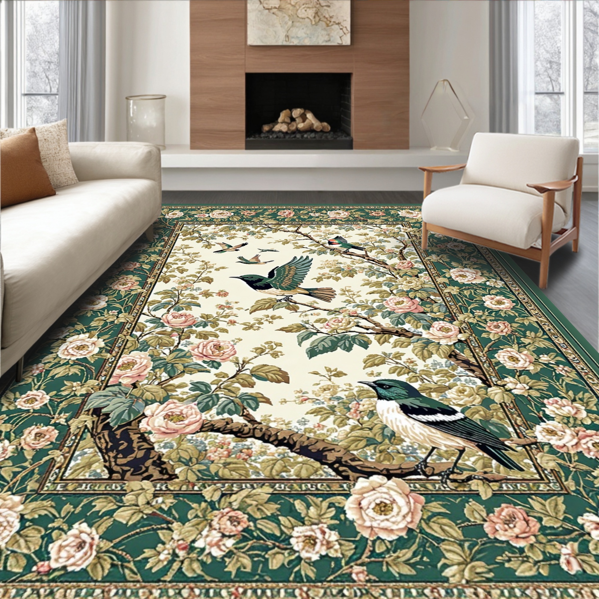 Emerald Green Floral-Bird Serene Rug