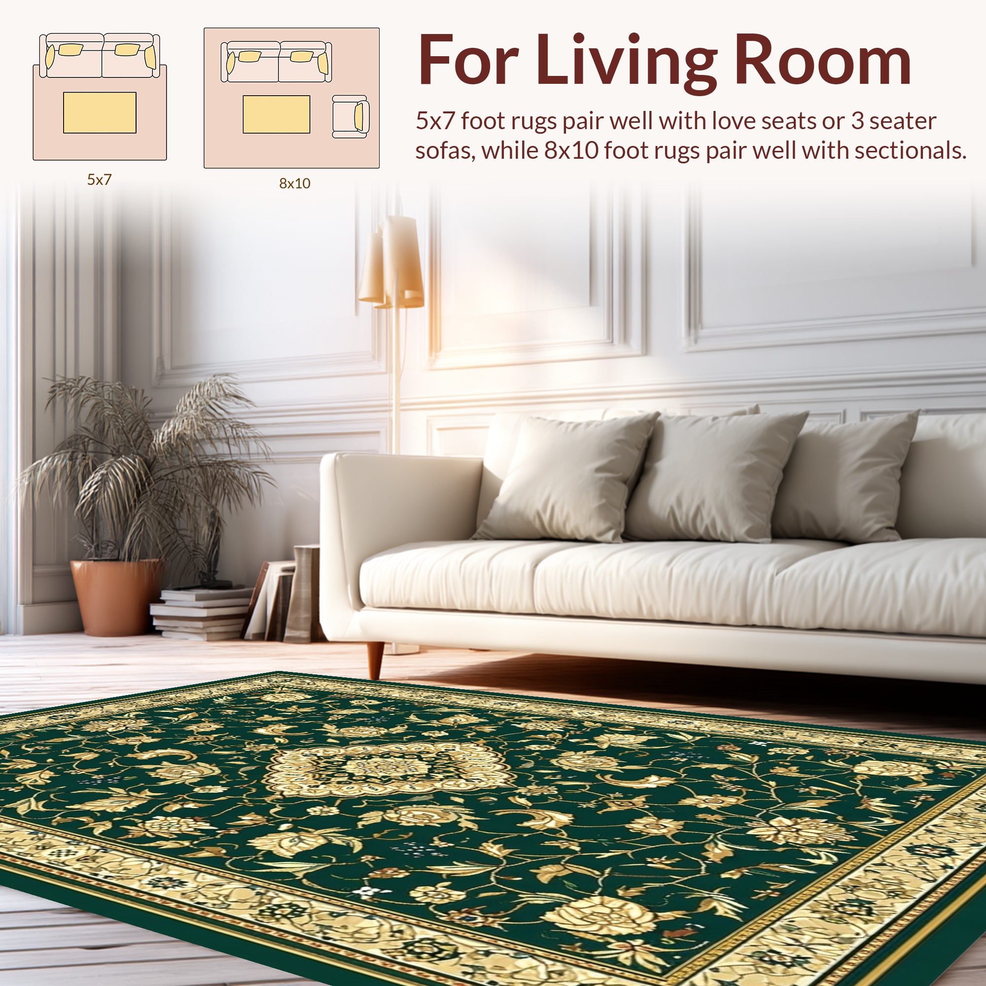 Emerald Green Ornate Floral Elegant Rug