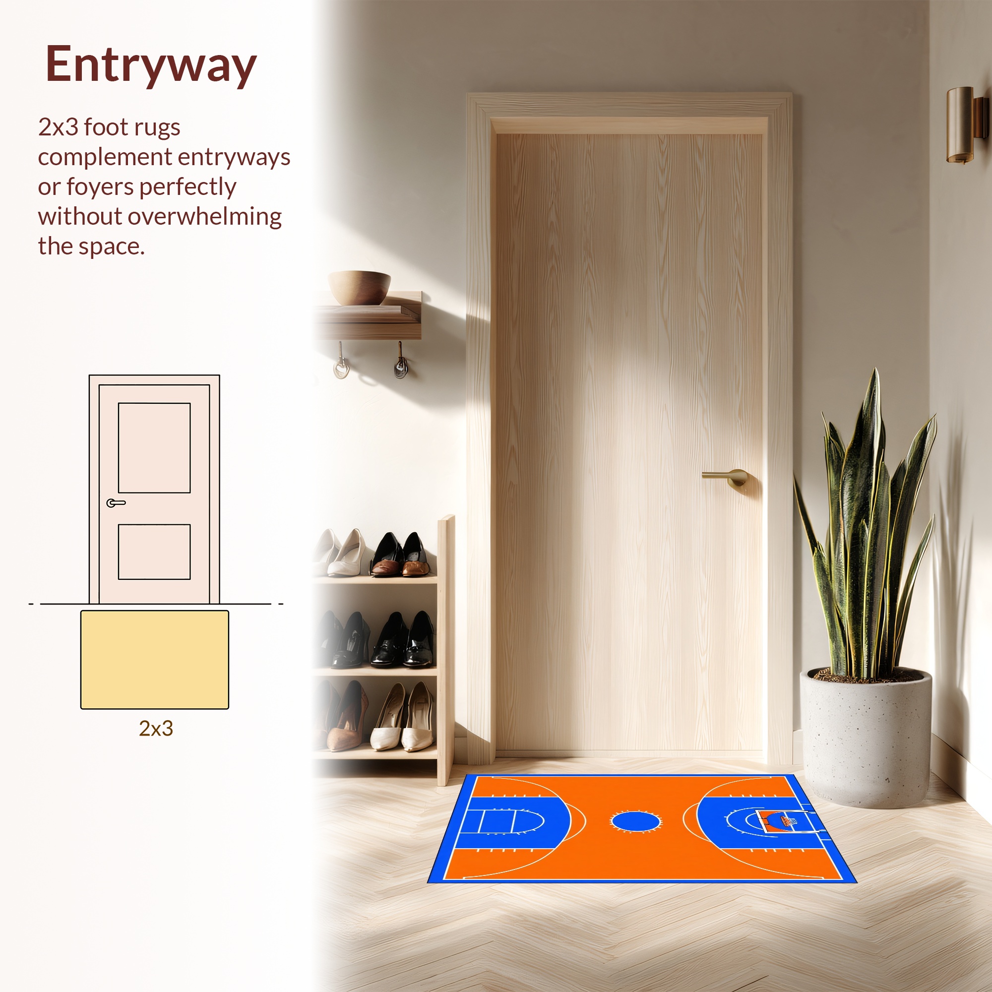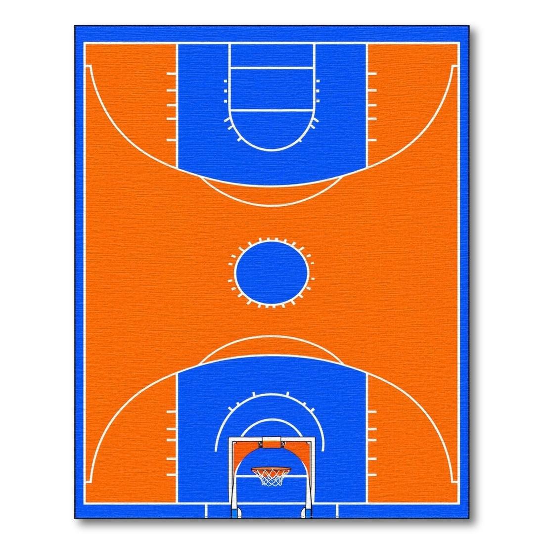 Energetic Orange Blue Basketball Court Rug