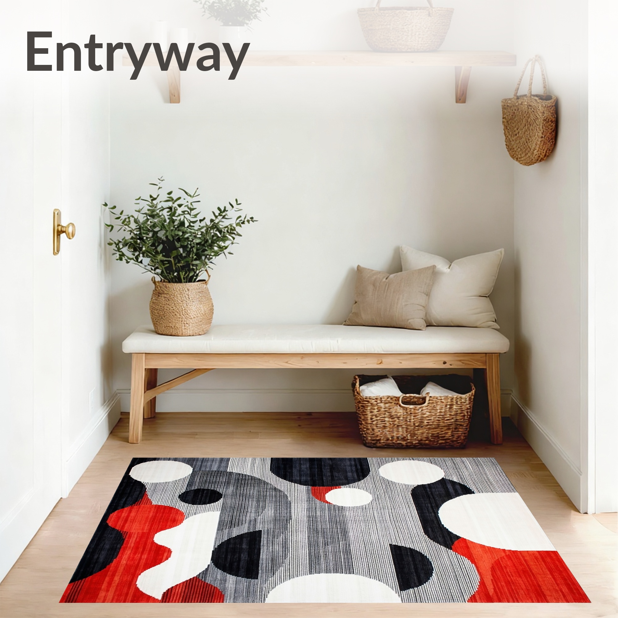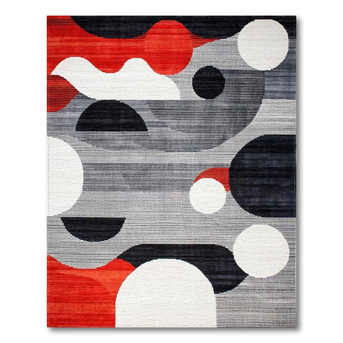 Energetic Red Black Gray Abstract Rug