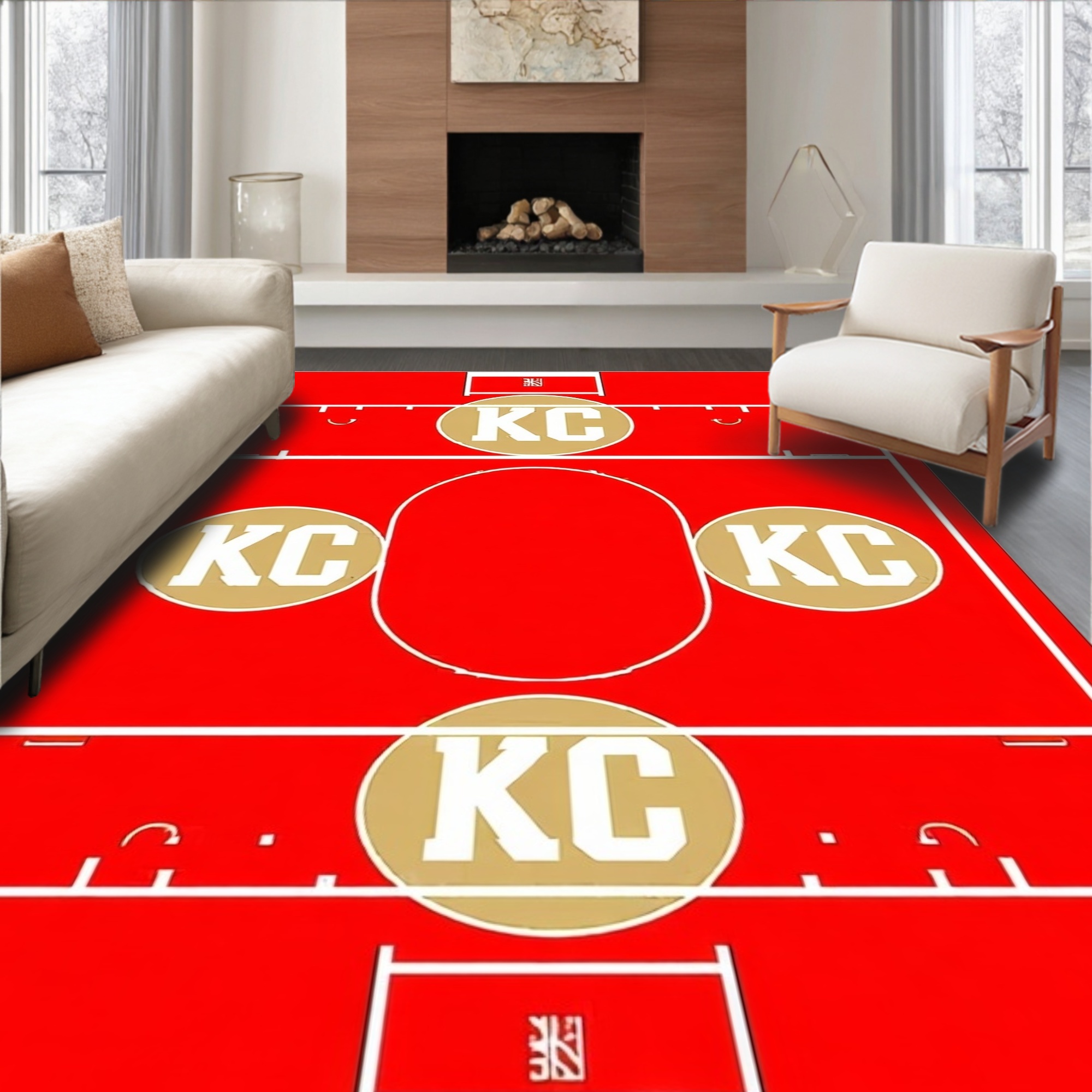 Energetic Red Sports Field Rug