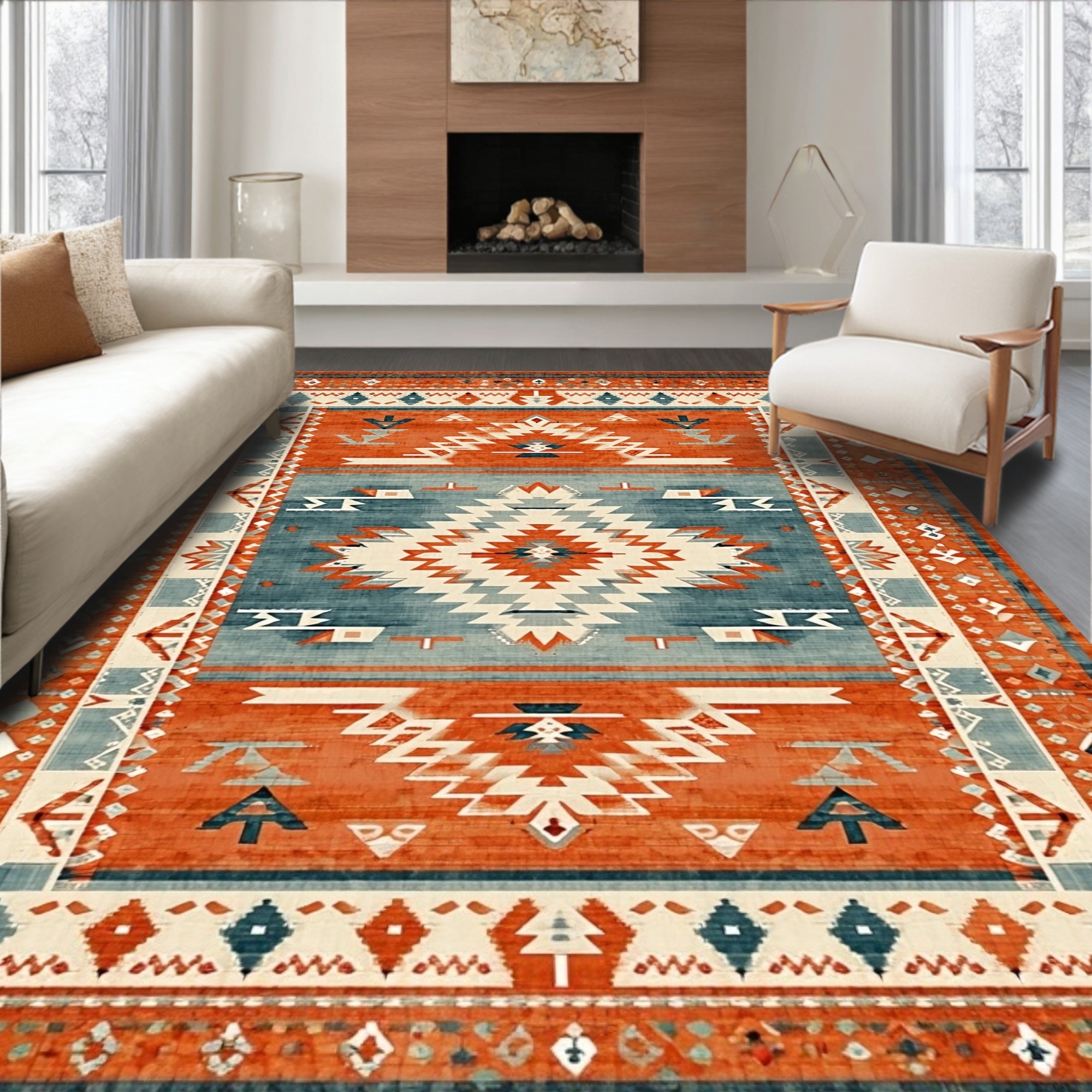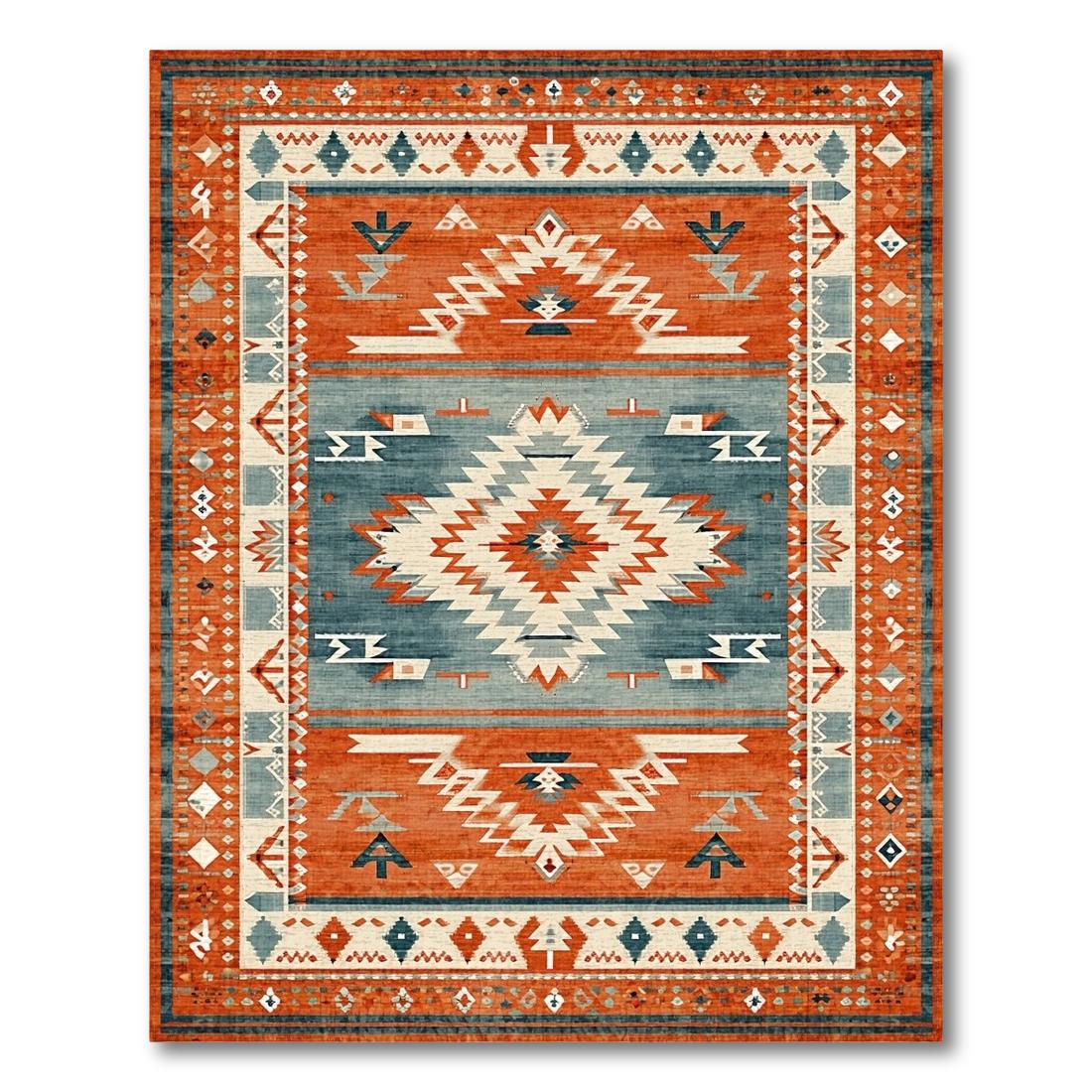 Energetic Terracotta Blue Tribal Rug