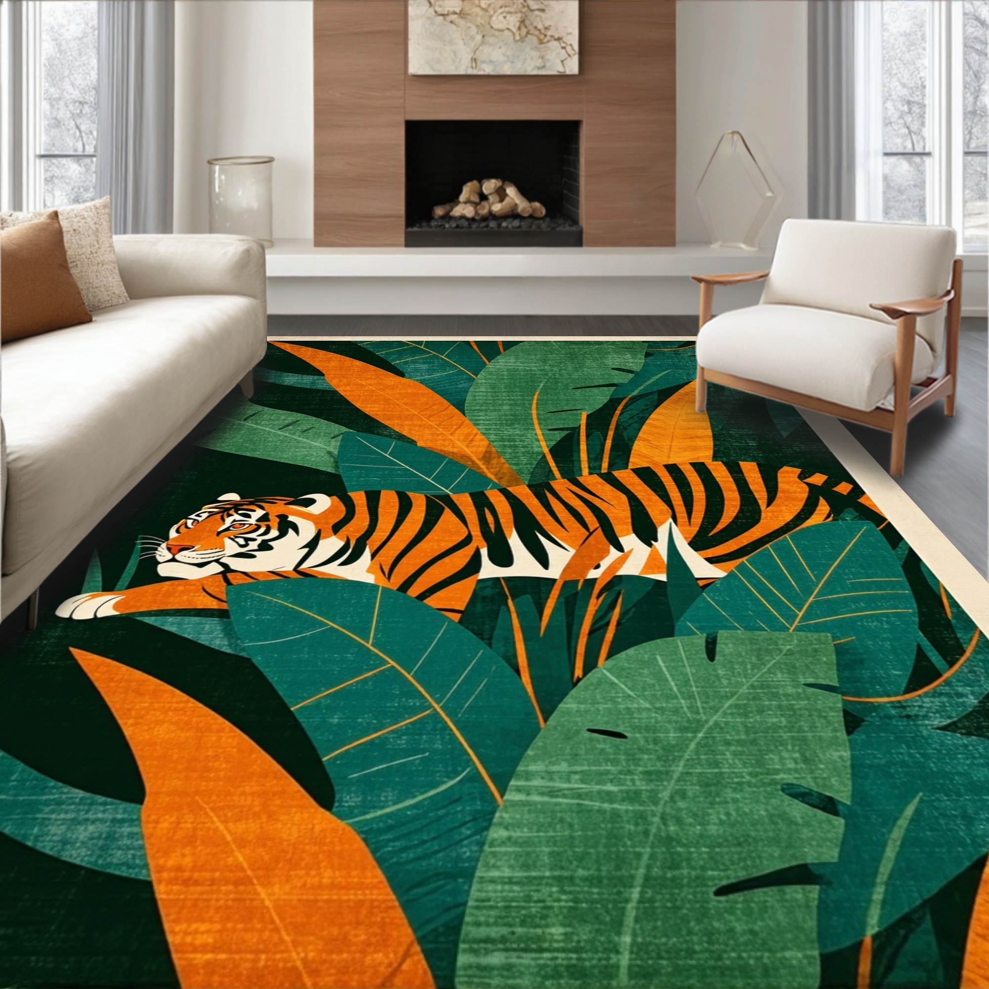 Exotic Teal Orange Jungle Tiger Rug