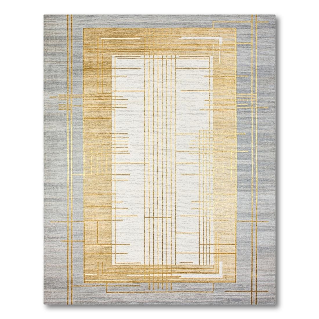 Gray Gold Geometric Modern Rug