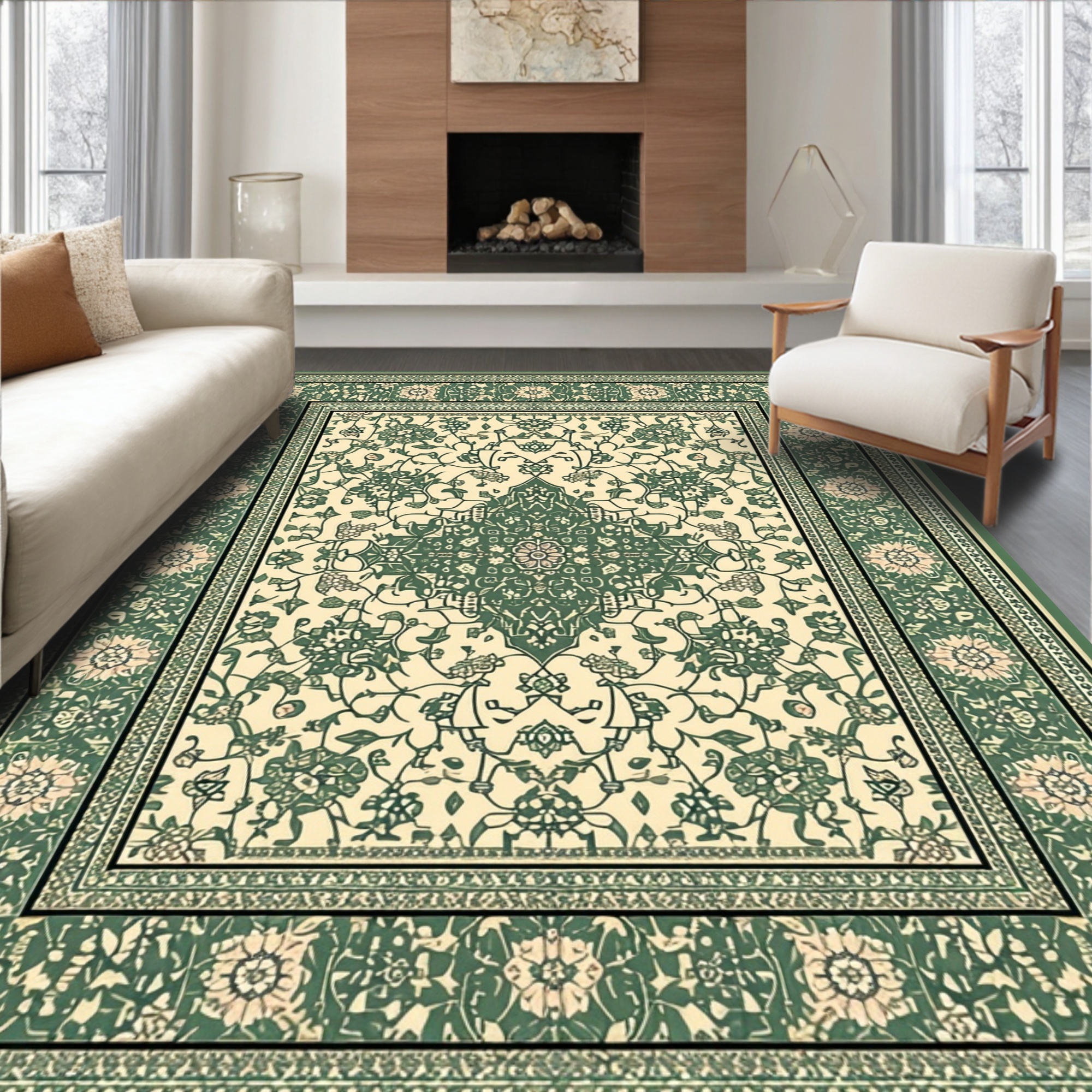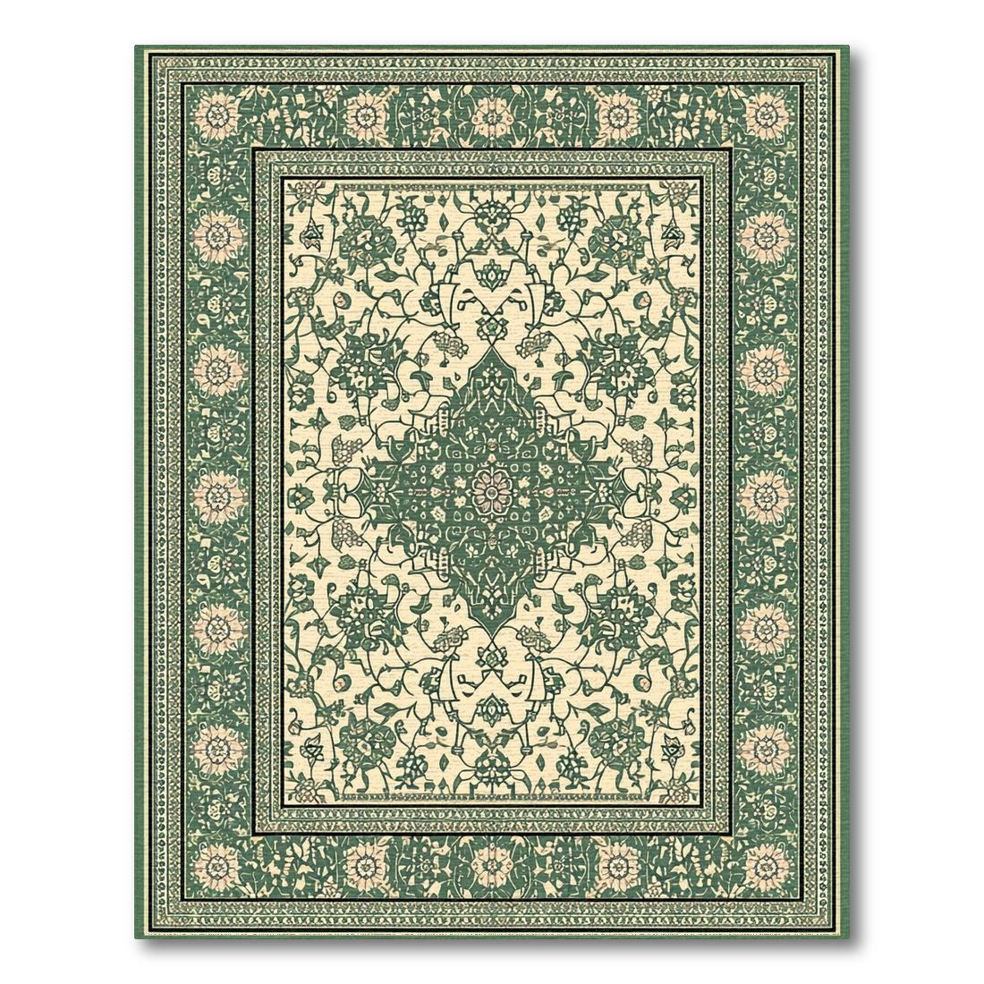 Green Beige Ornate Elegant Rug
