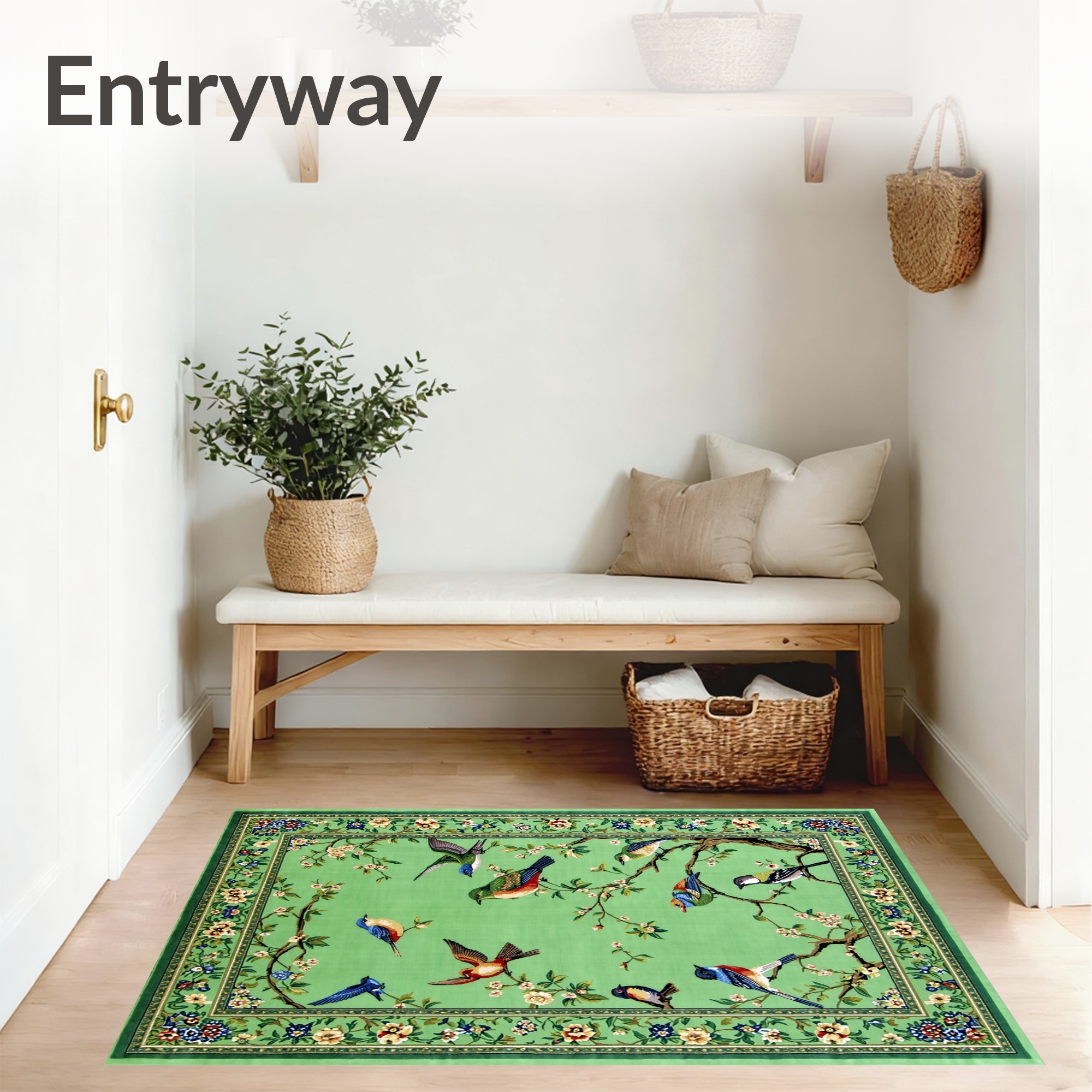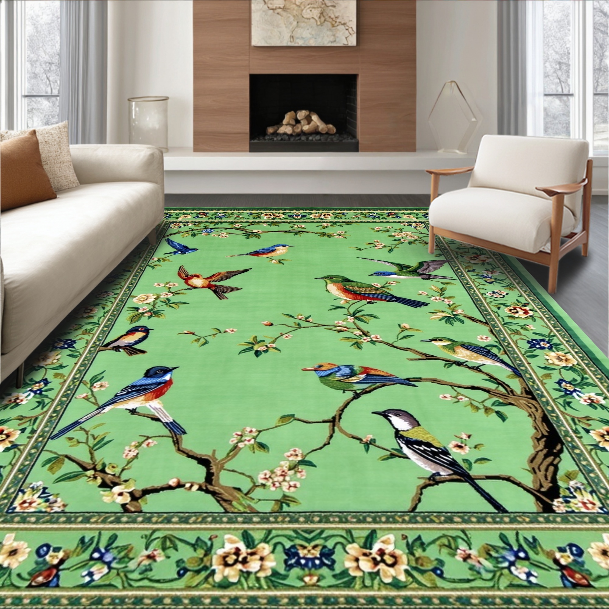 Green Bird Floral Vibrant Rug