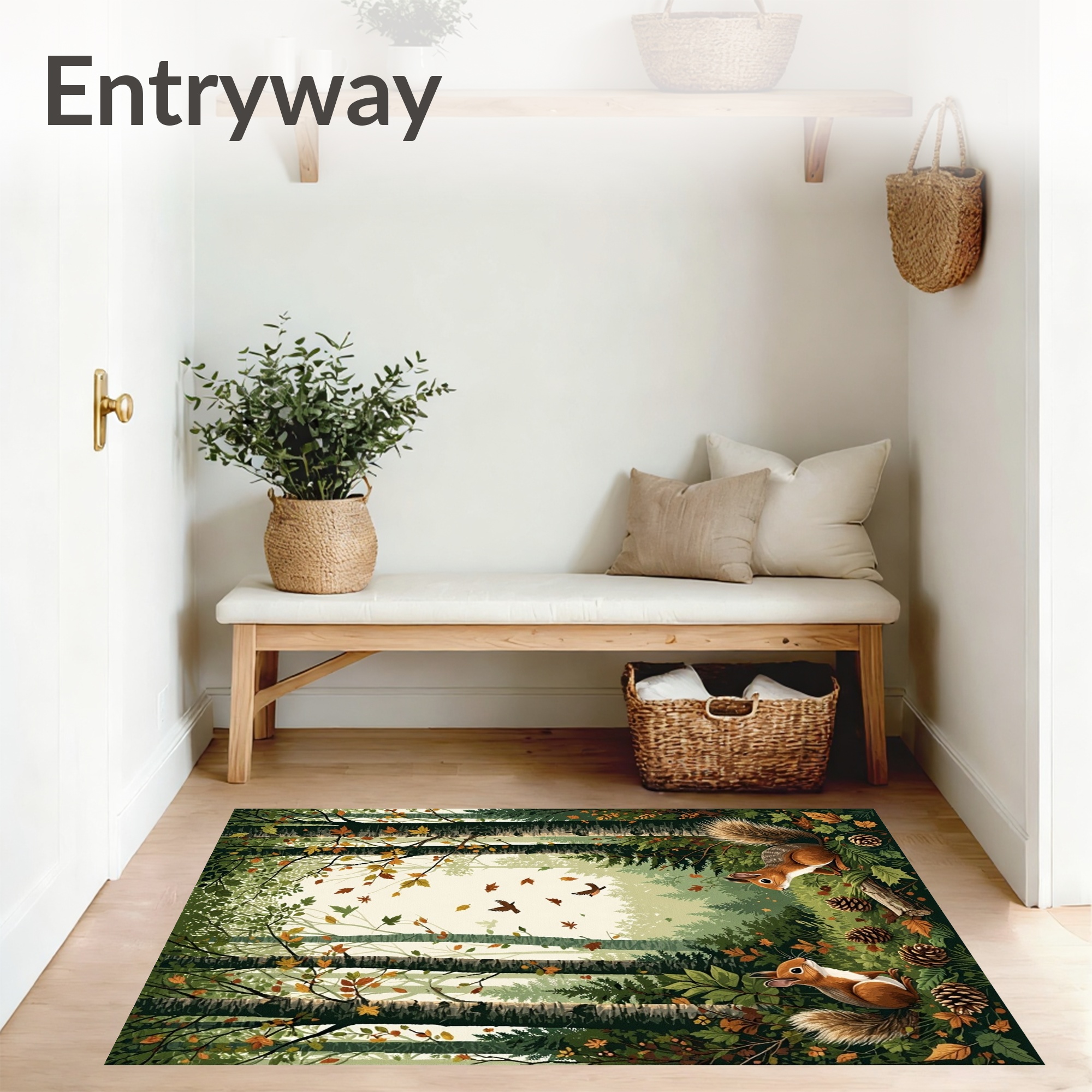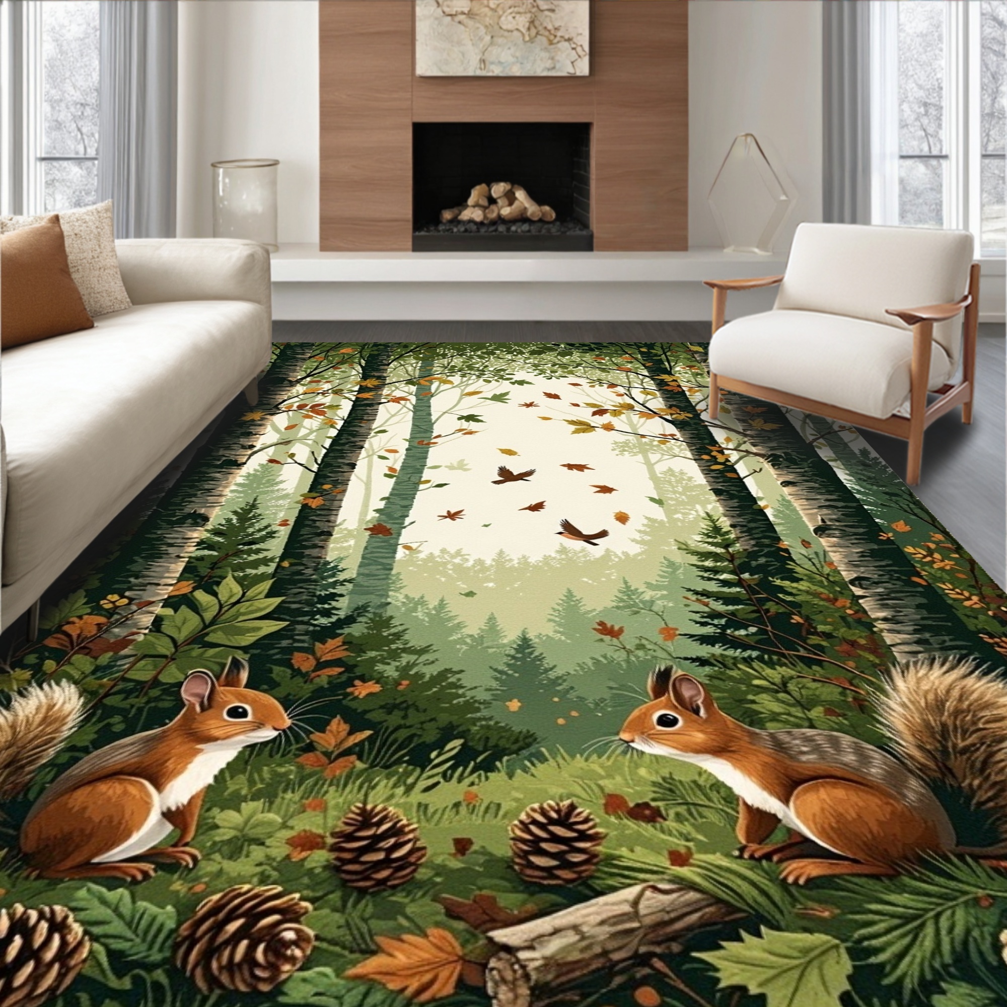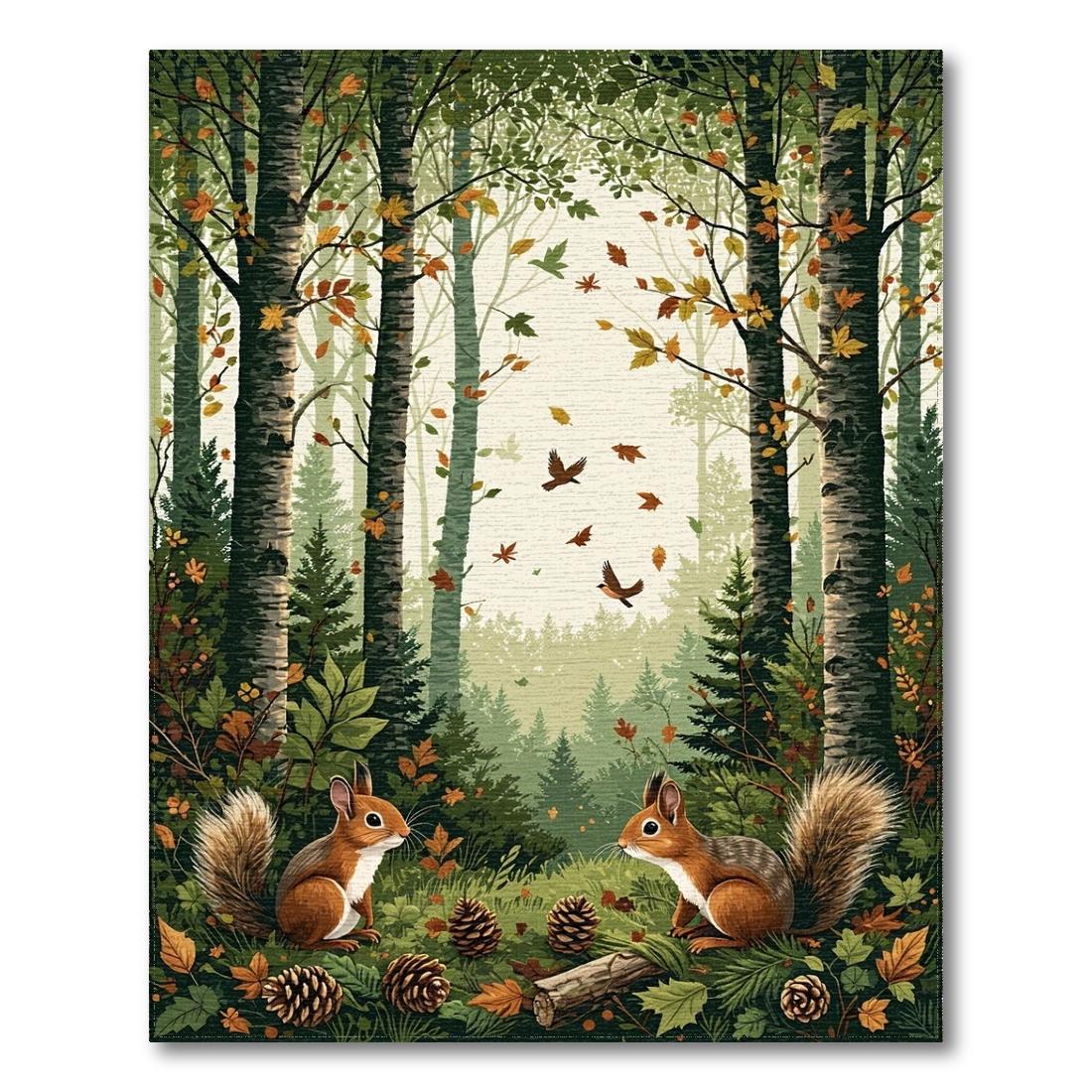 Green-Brown Woodland Cheerful Rug