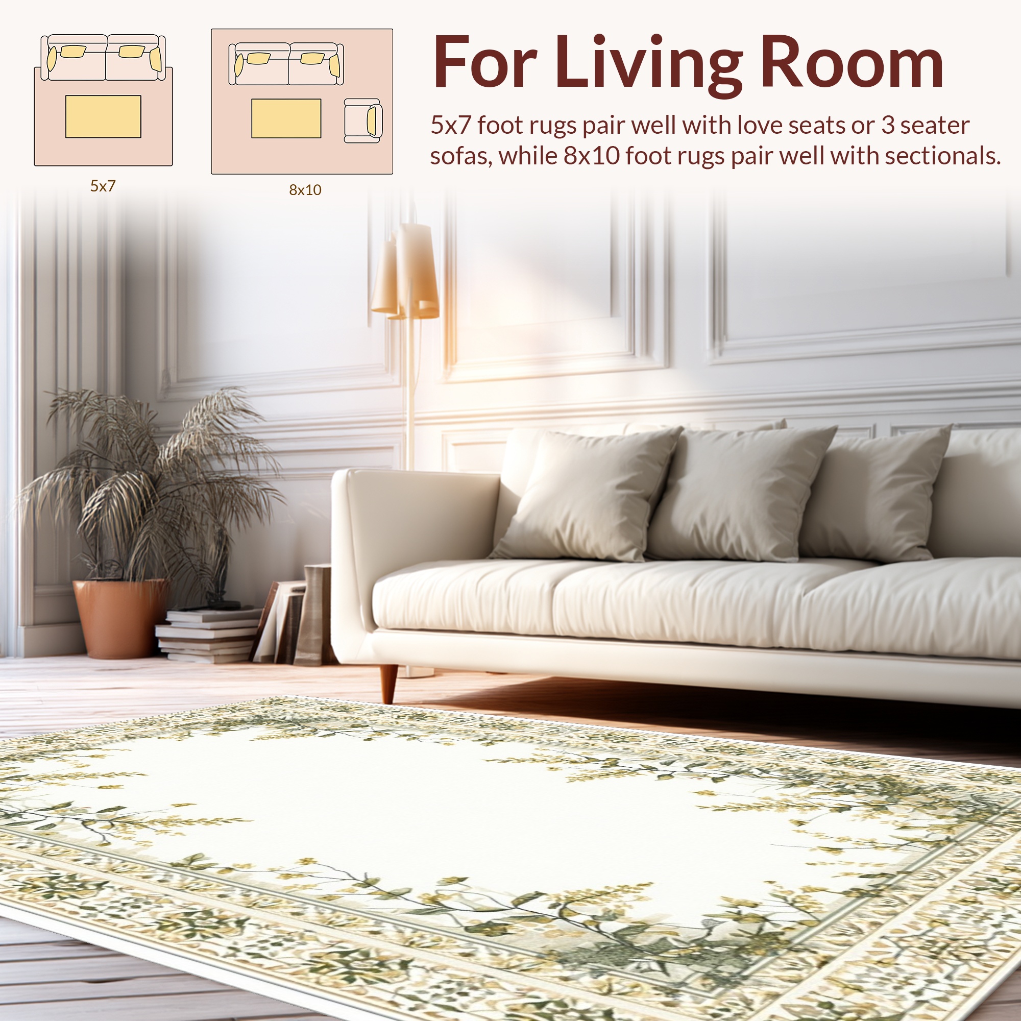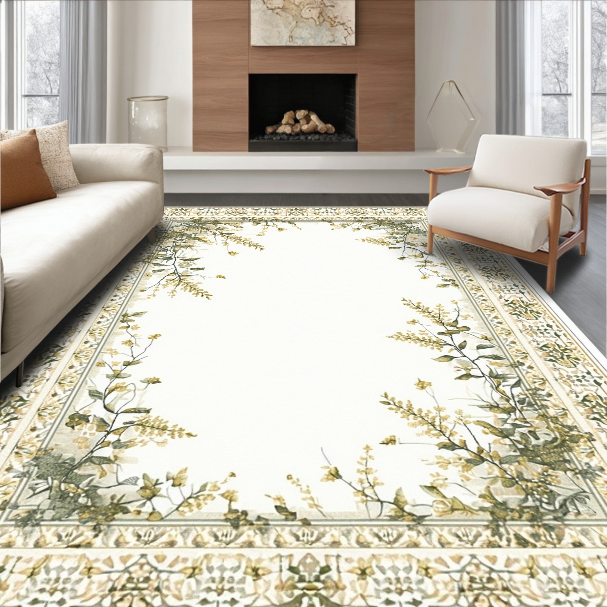Ivory Botanical Border Rug