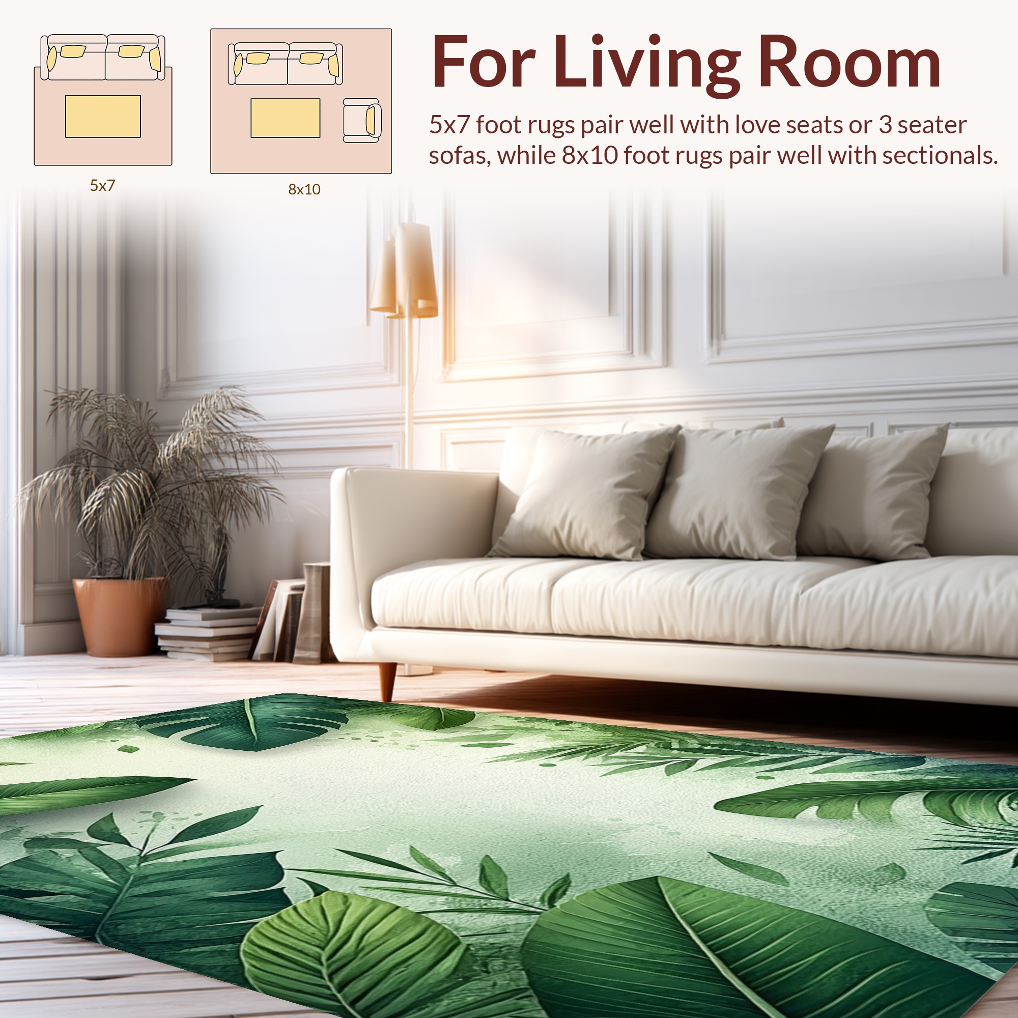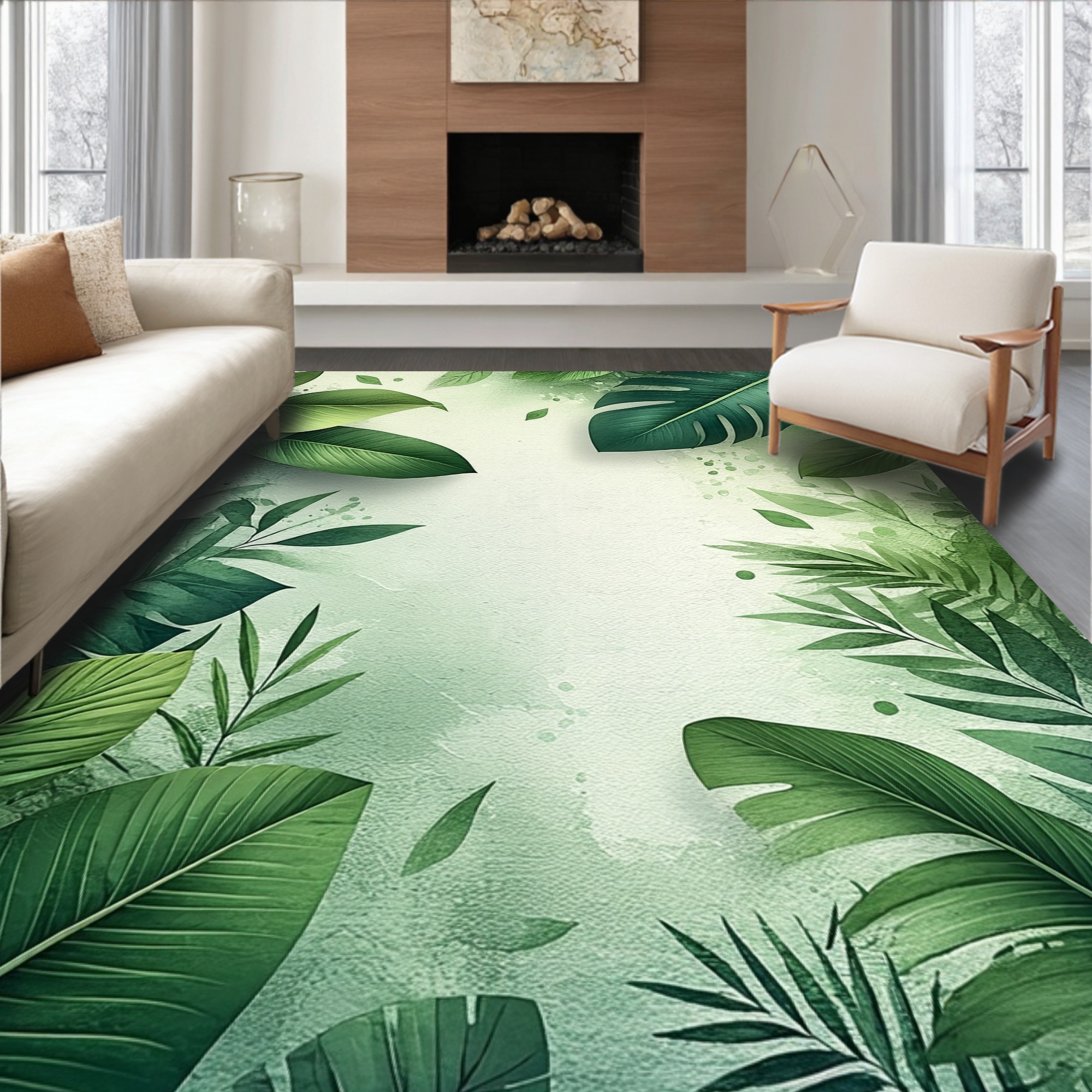 Lush Green Tropical Leaves Rug