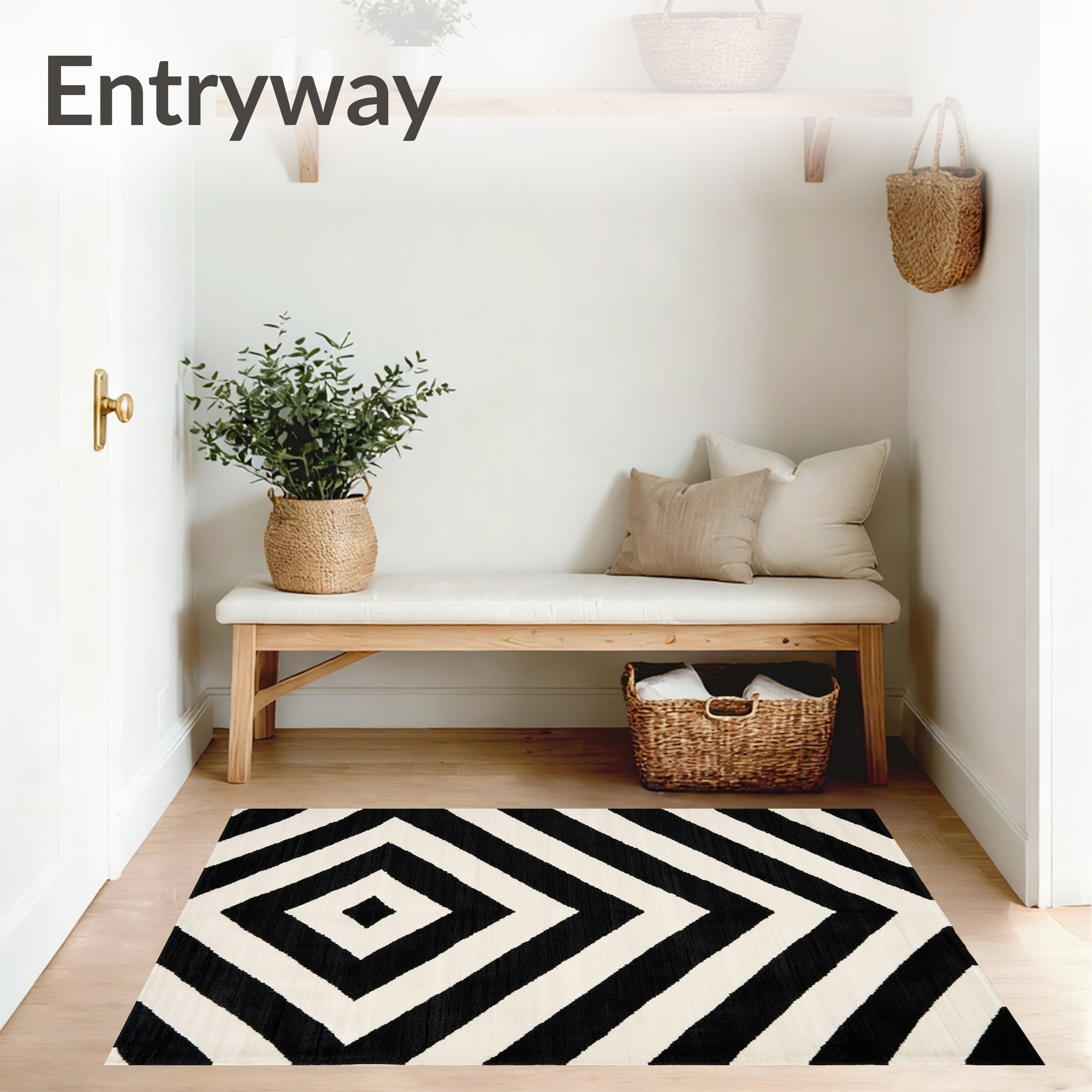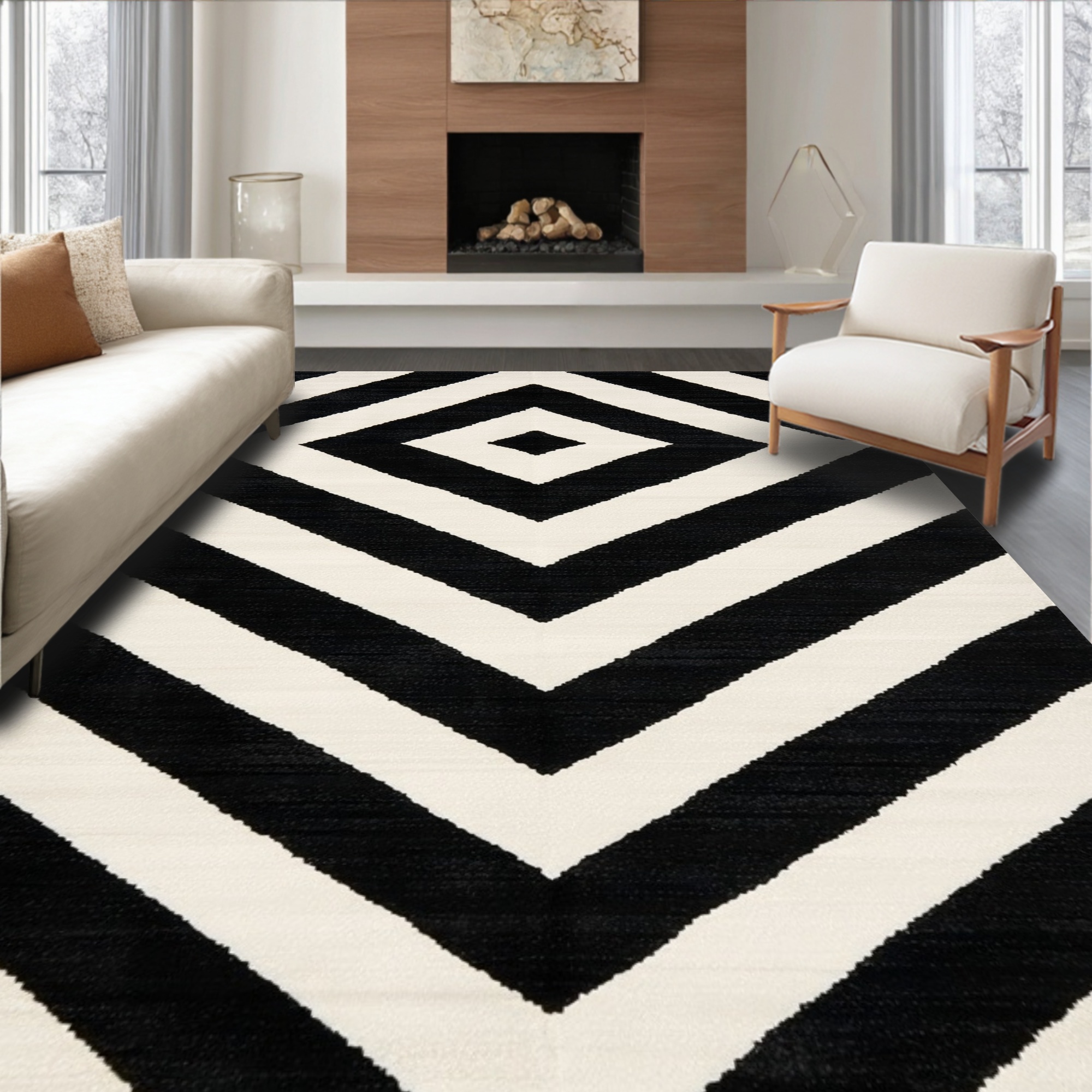 Modern Black and White Diamond Rug