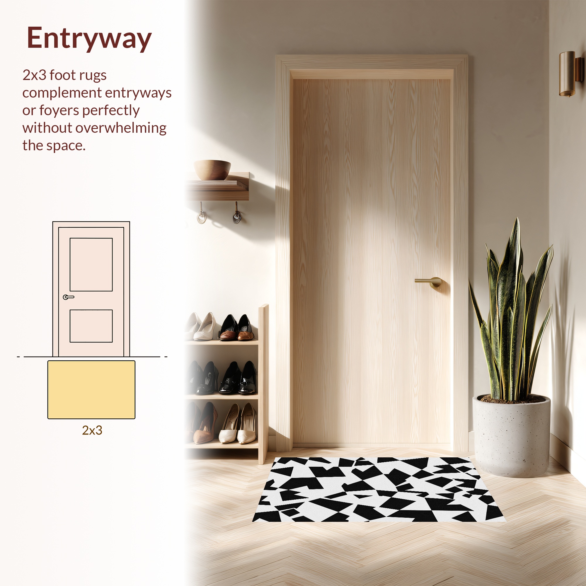 Modern Black & White Abstract Geometric Rug