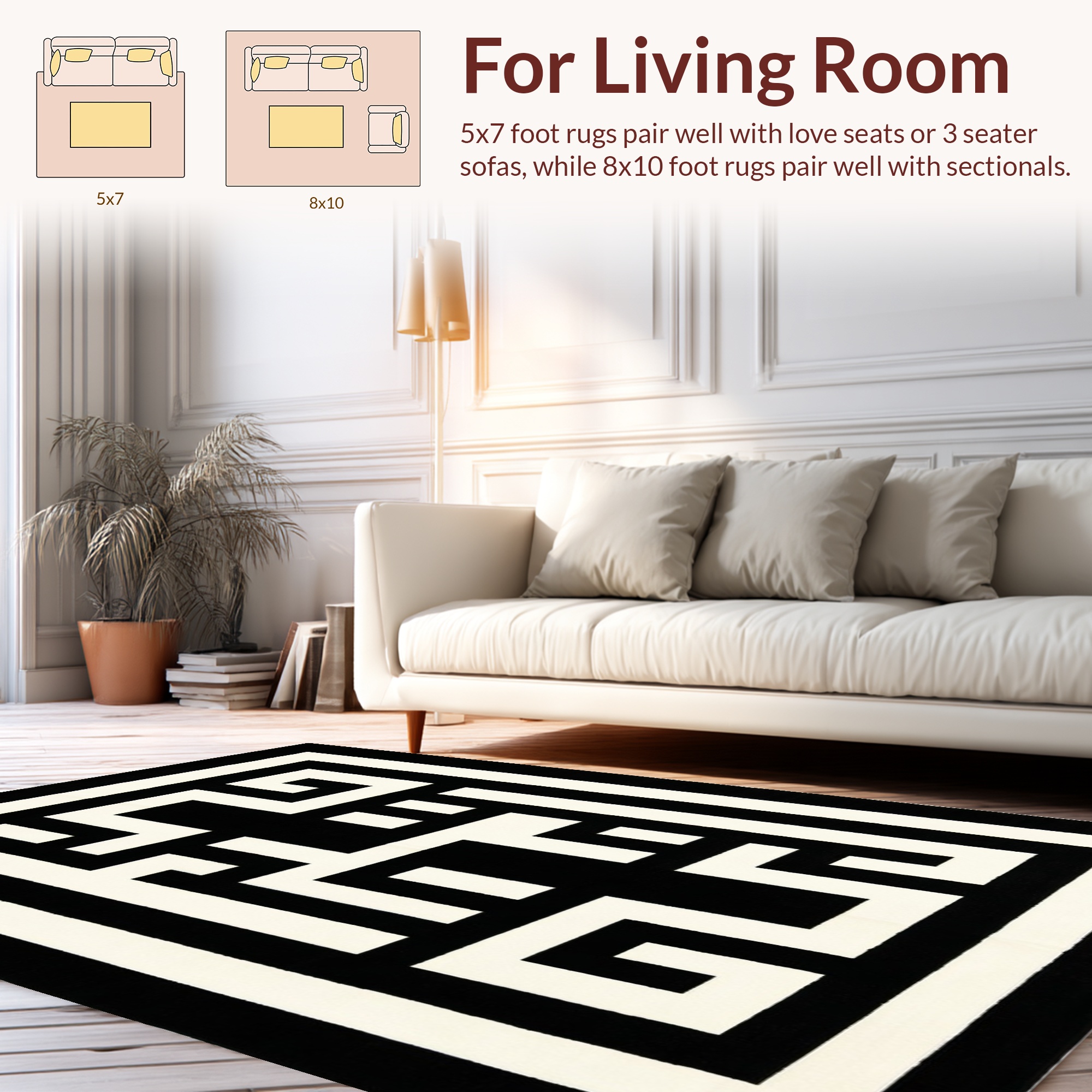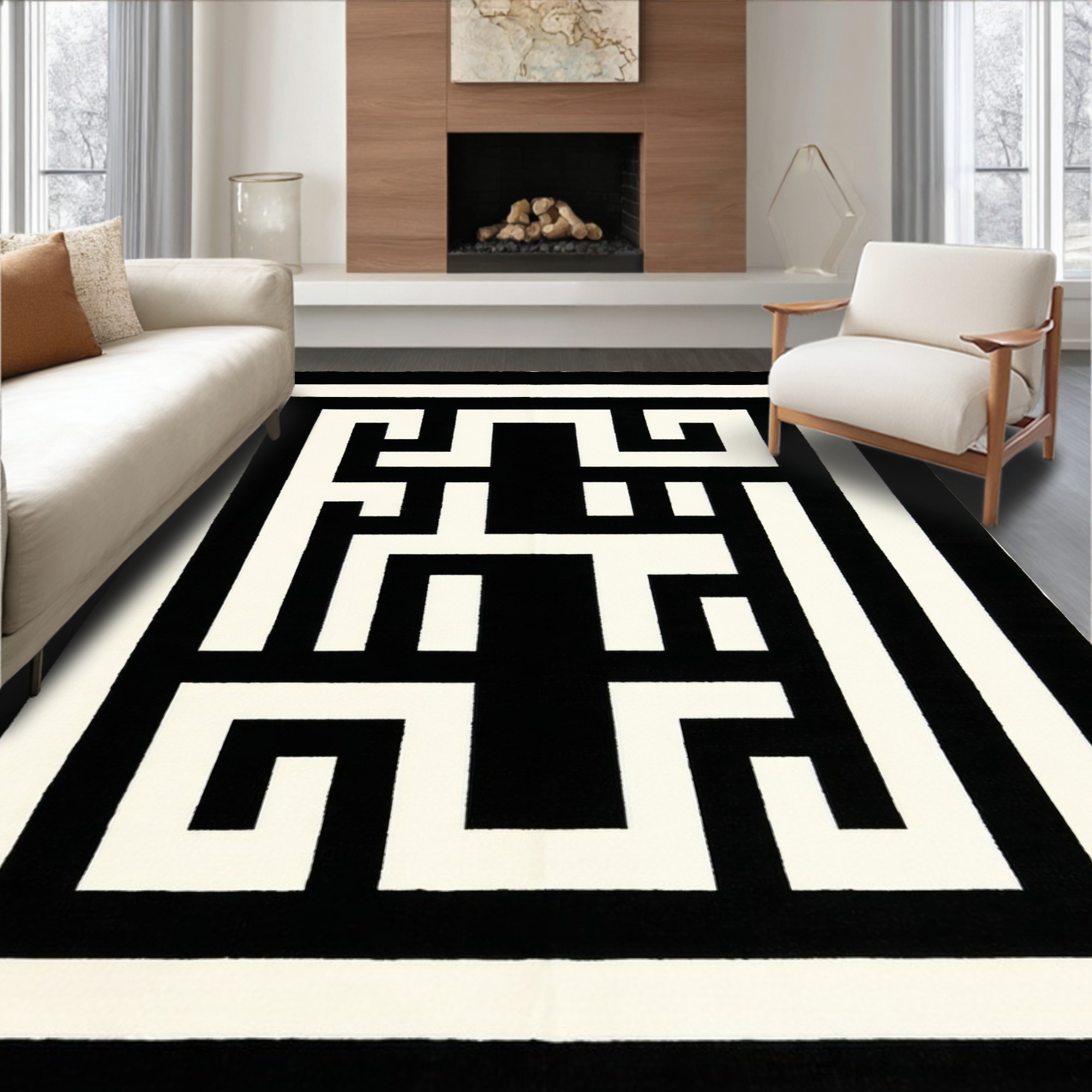 Modern Black White Geometric Rug