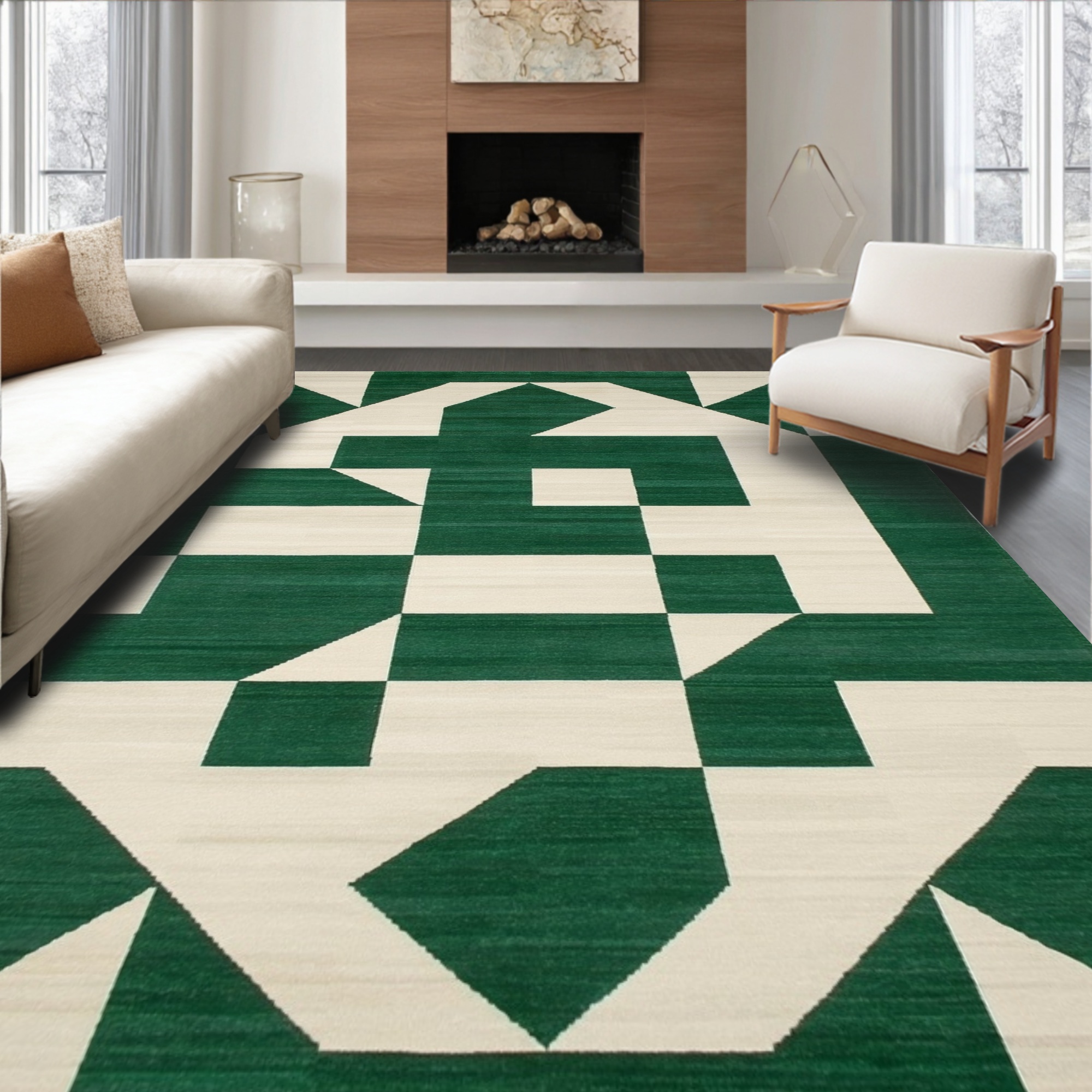 Modern Green Geometric Rug