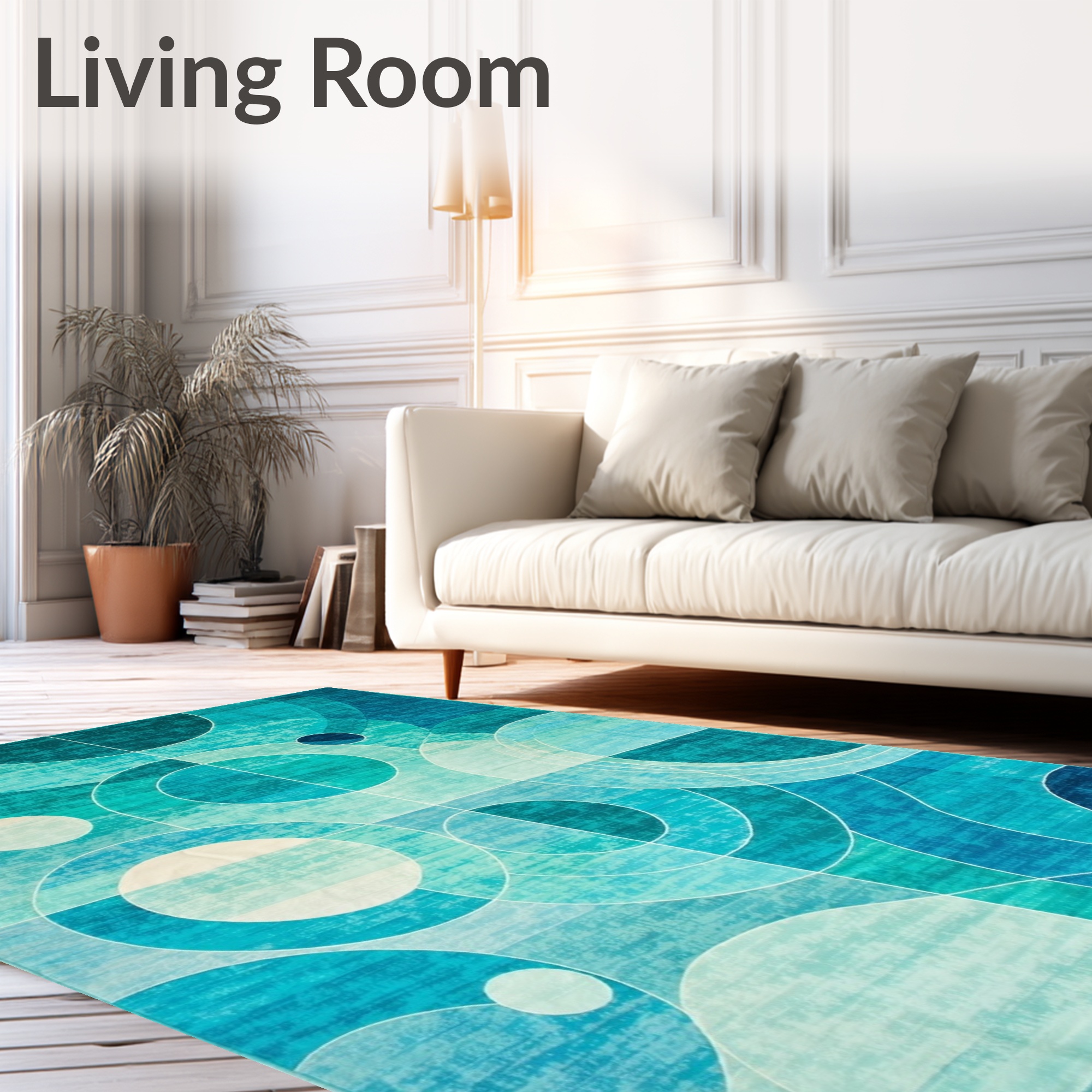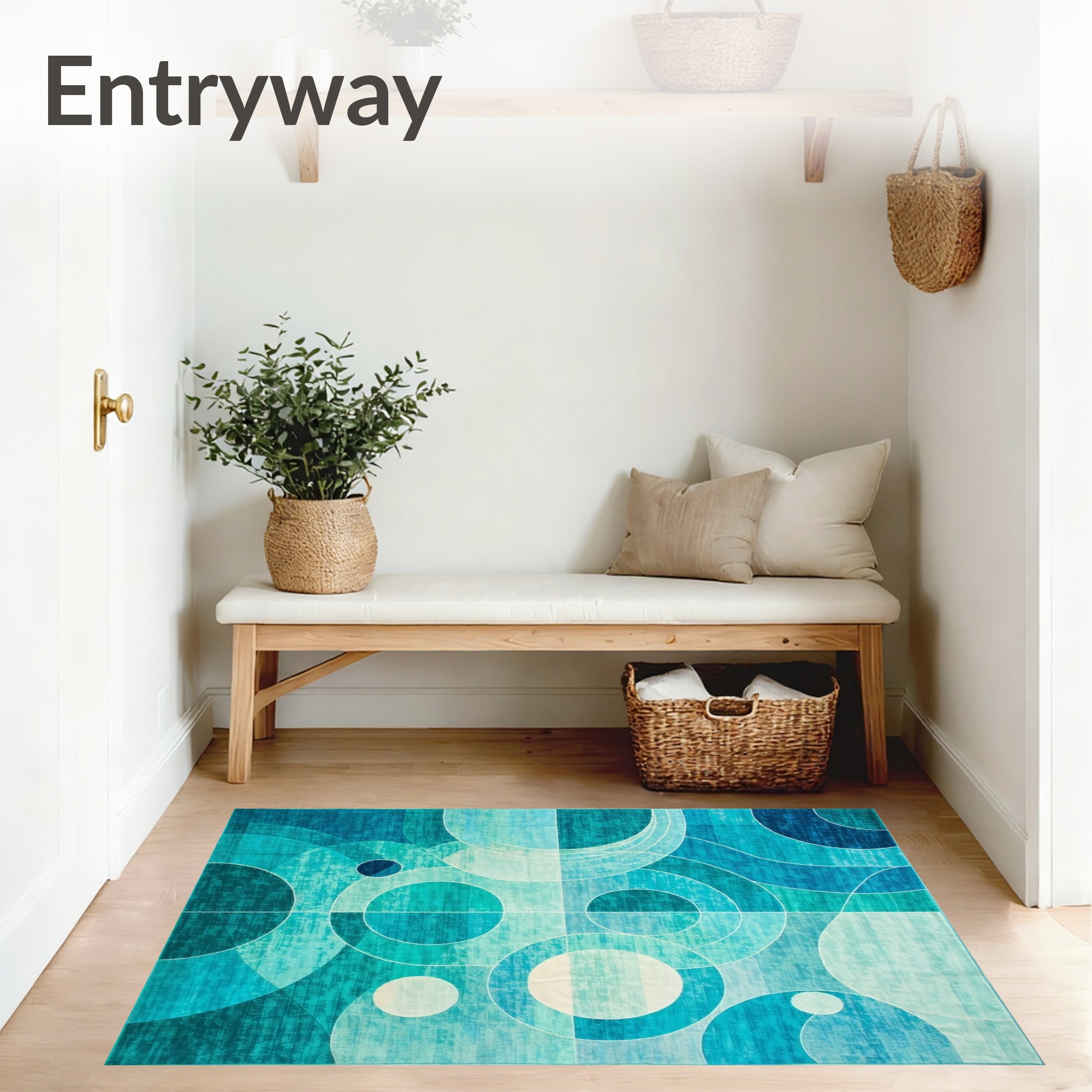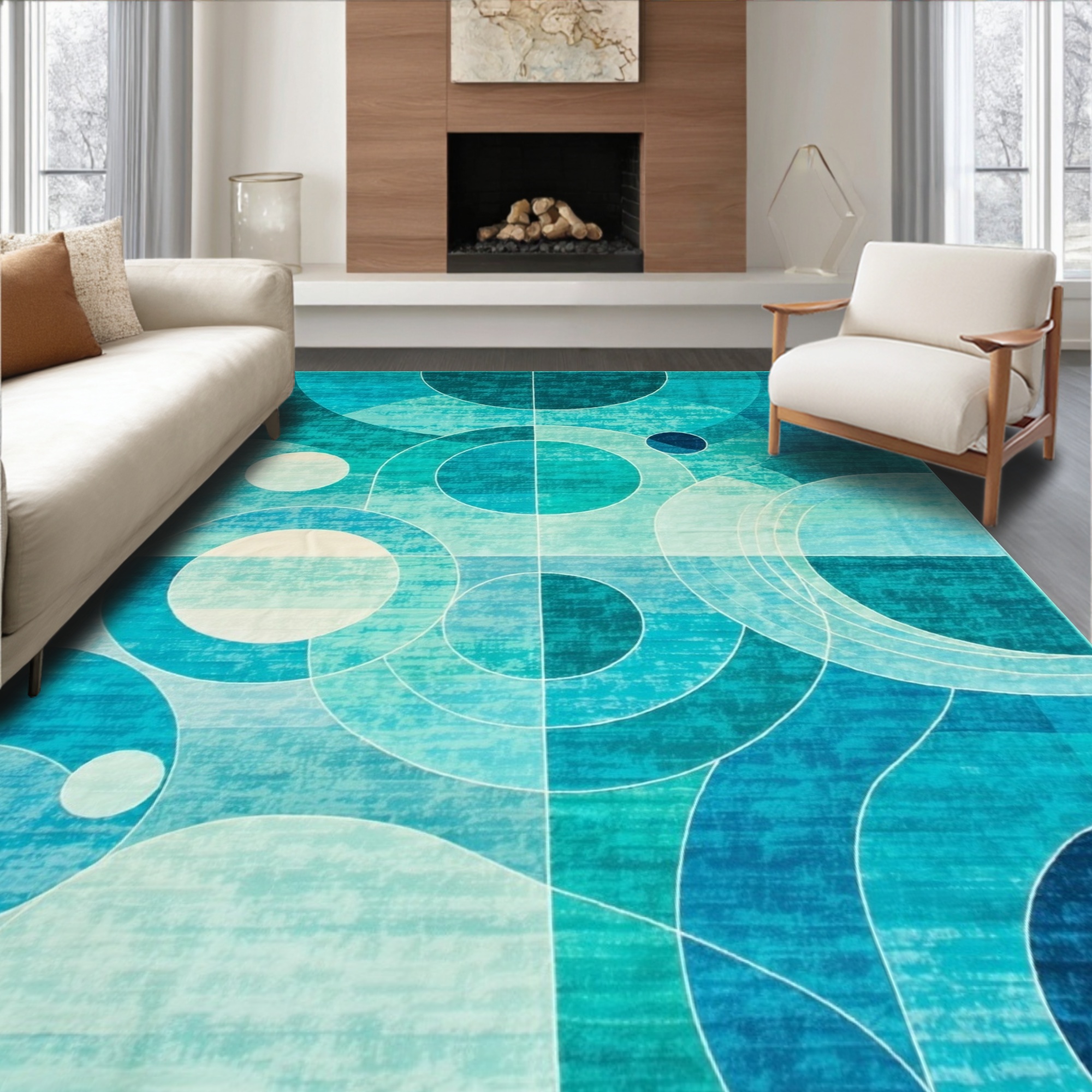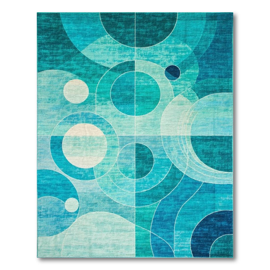 Modern Teal Geometric Circle Rug