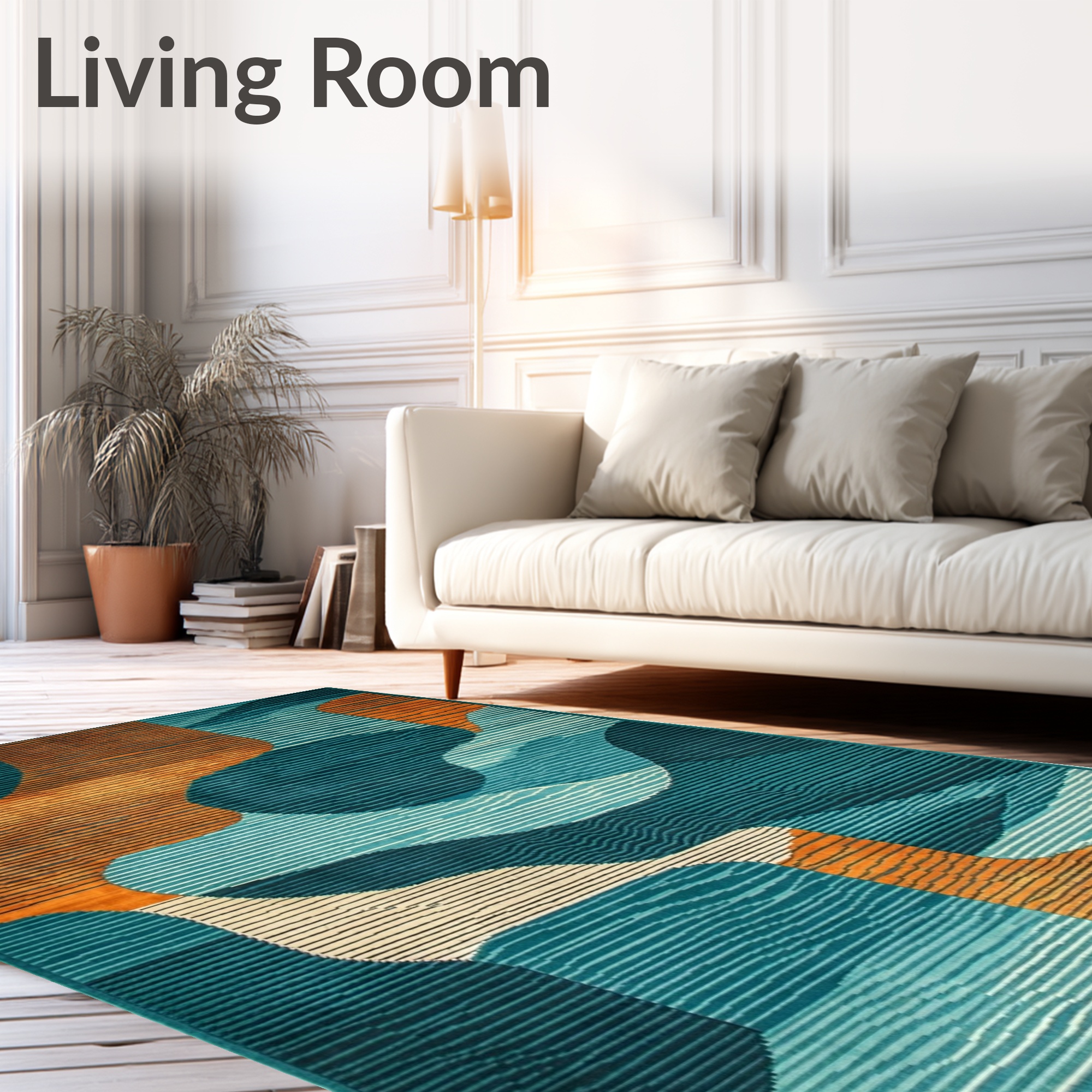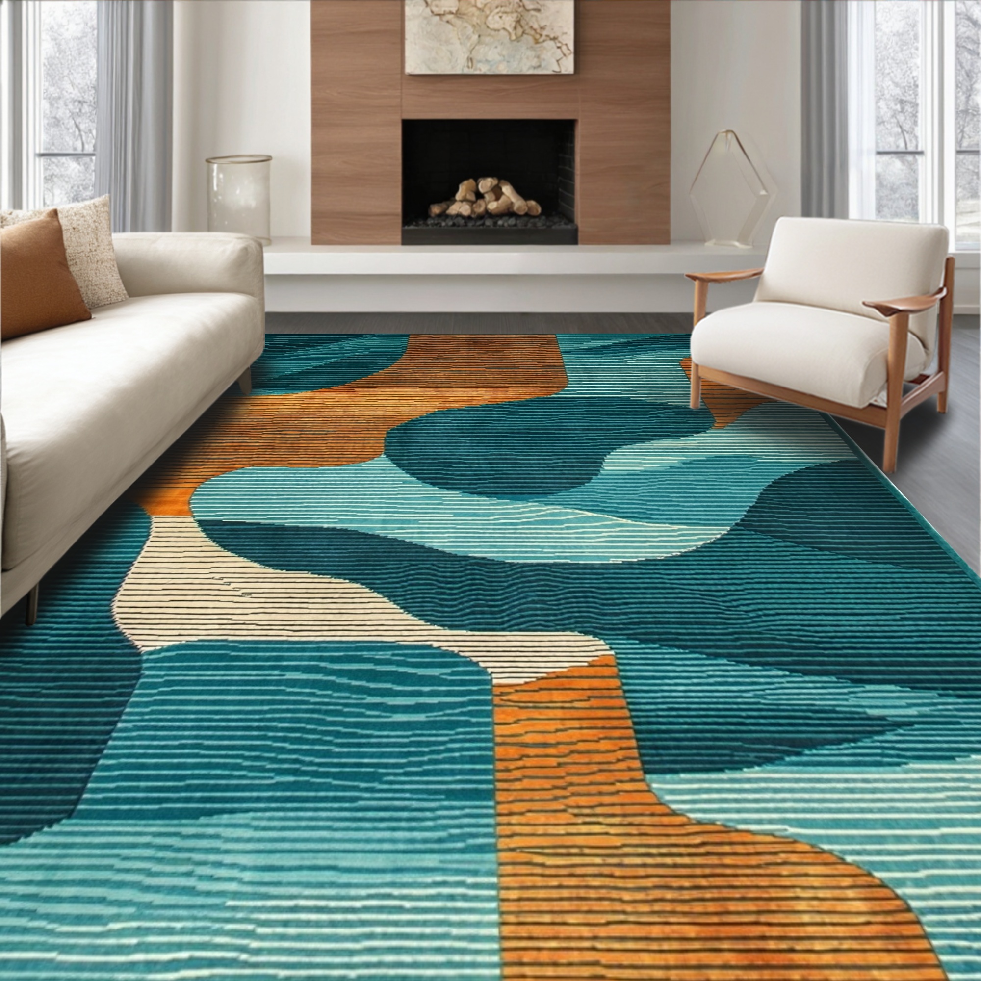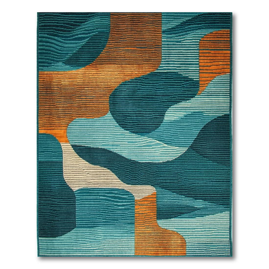 Modern Teal & Orange Abstract Wave Rug