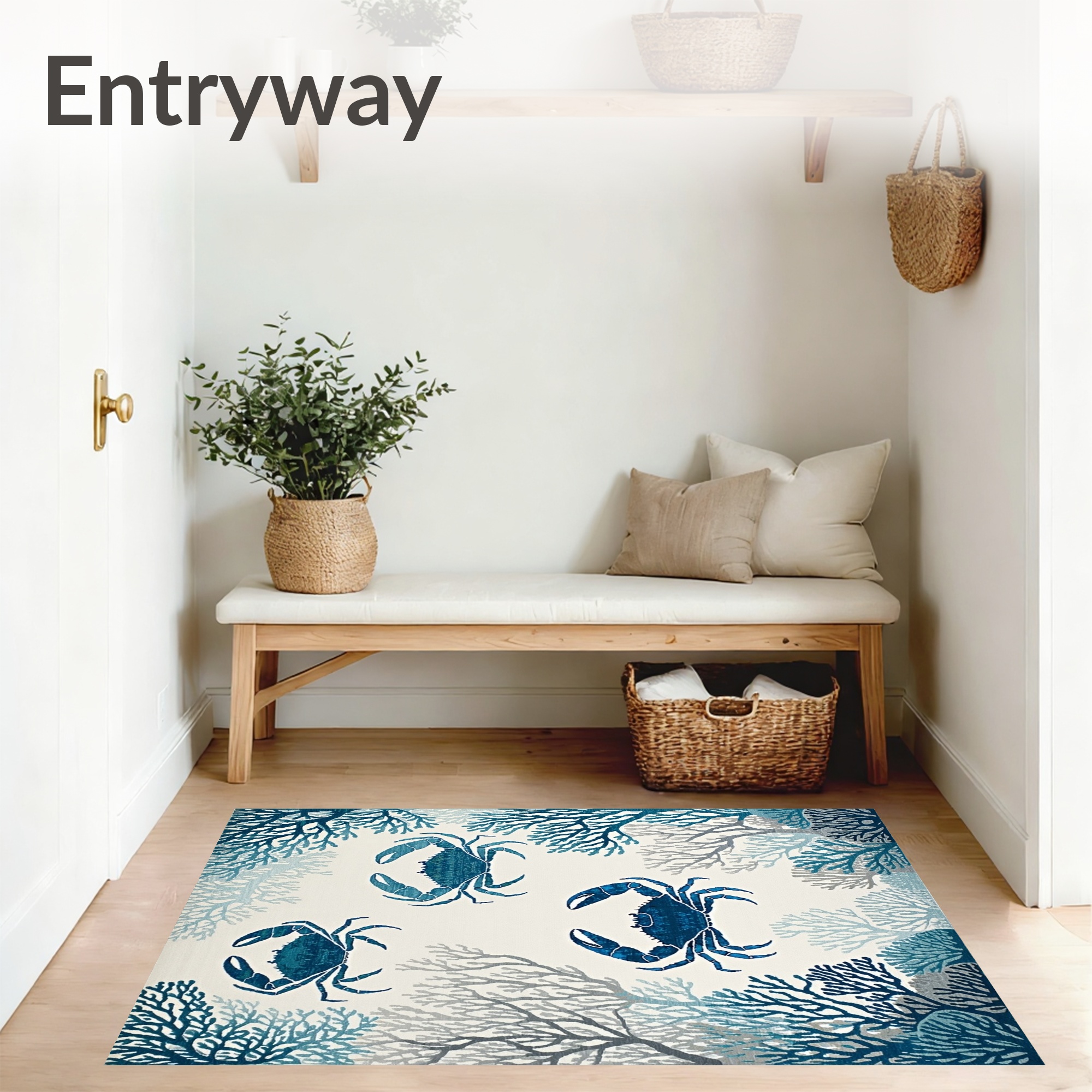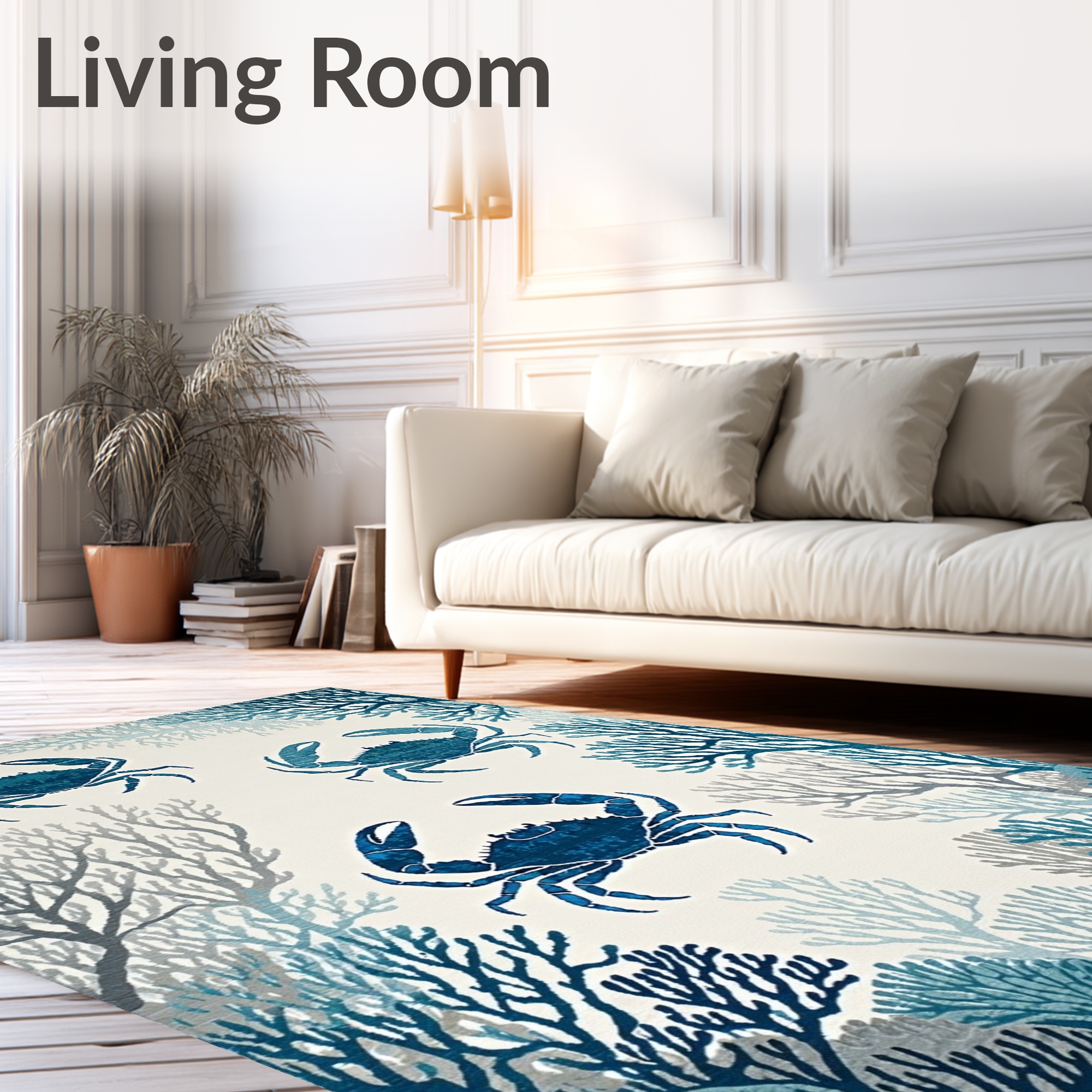 Nautical Blue Crab-Coral Rug
