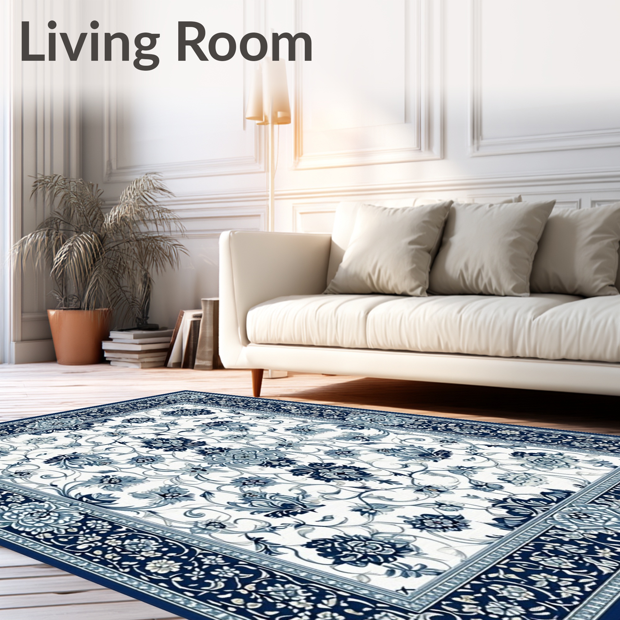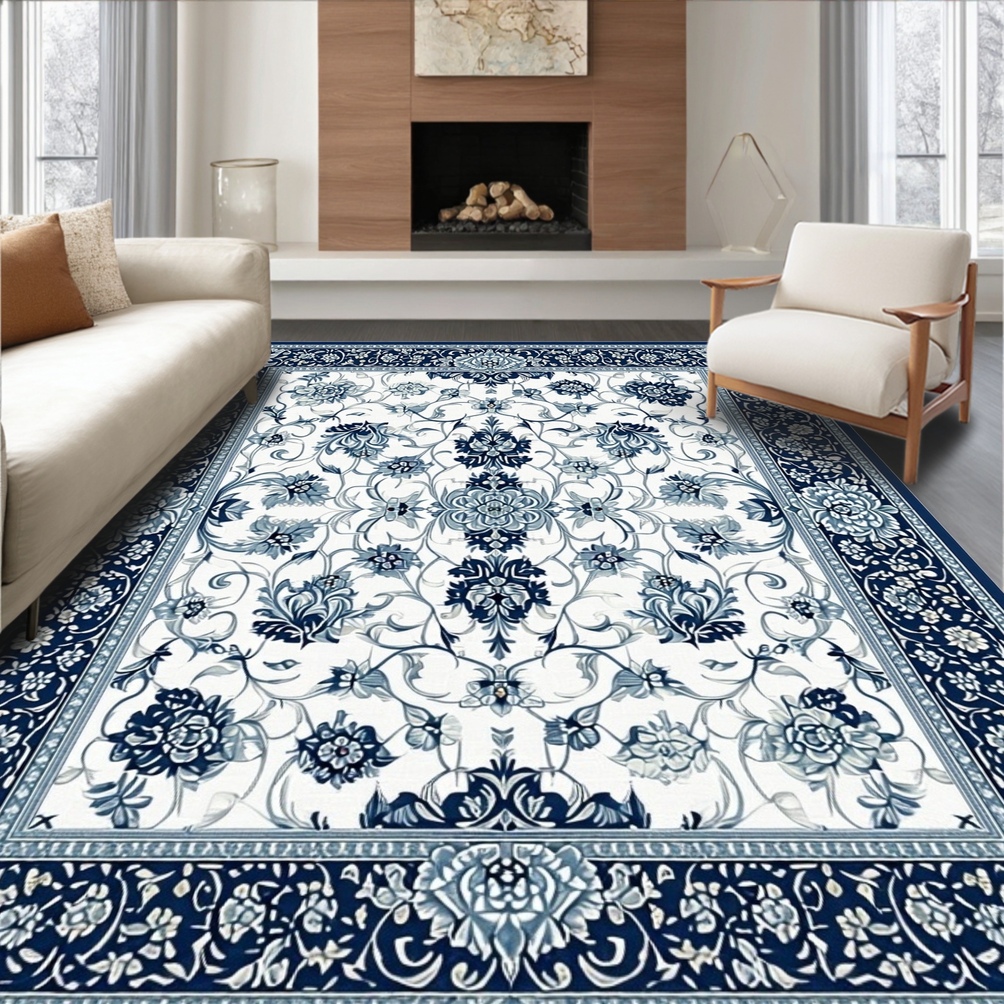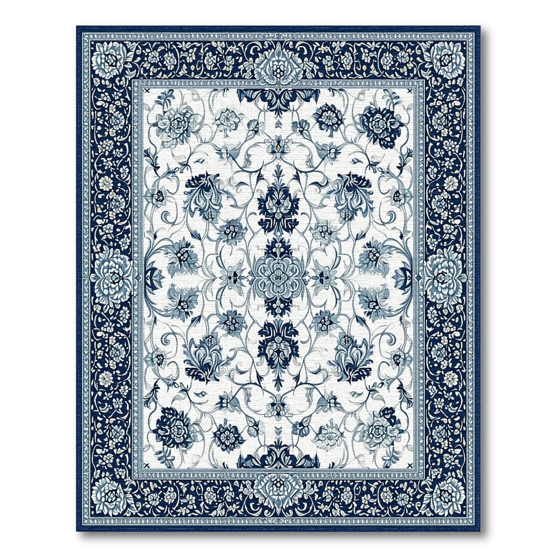 Navy and Ivory Floral Elegant Rug