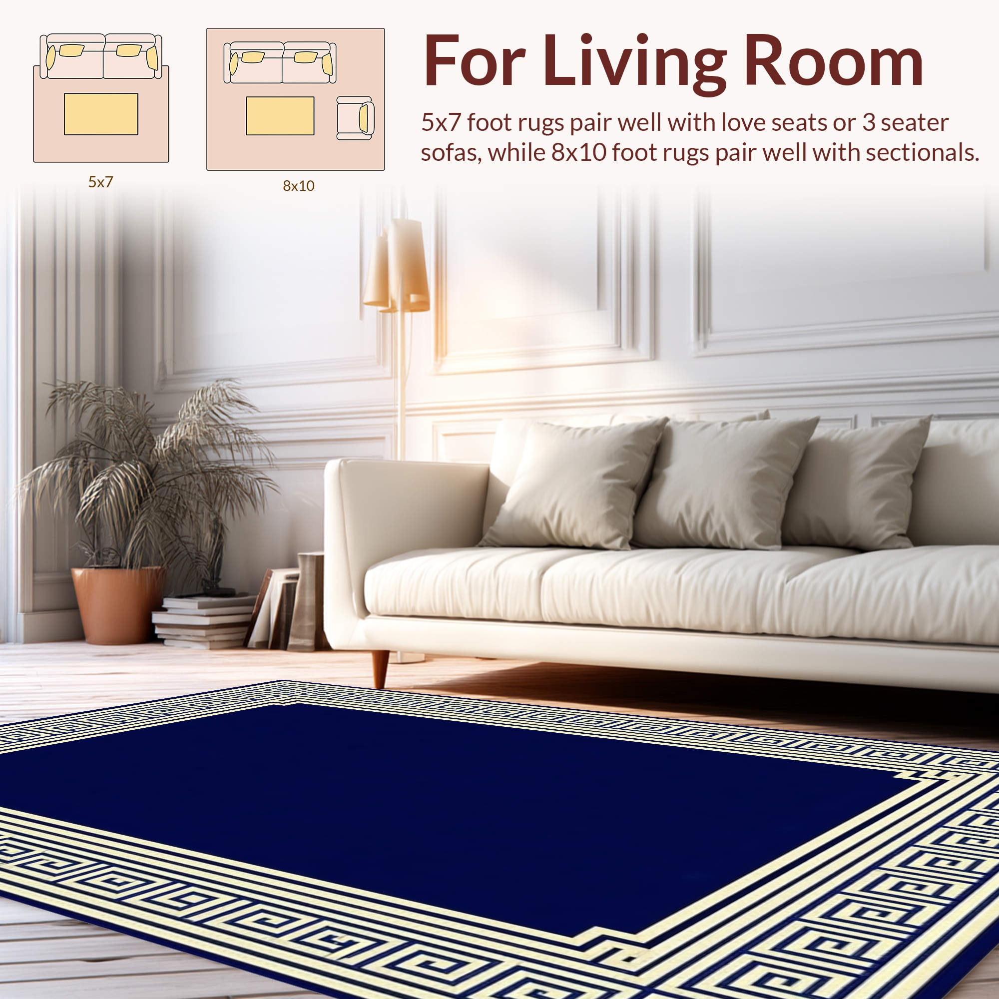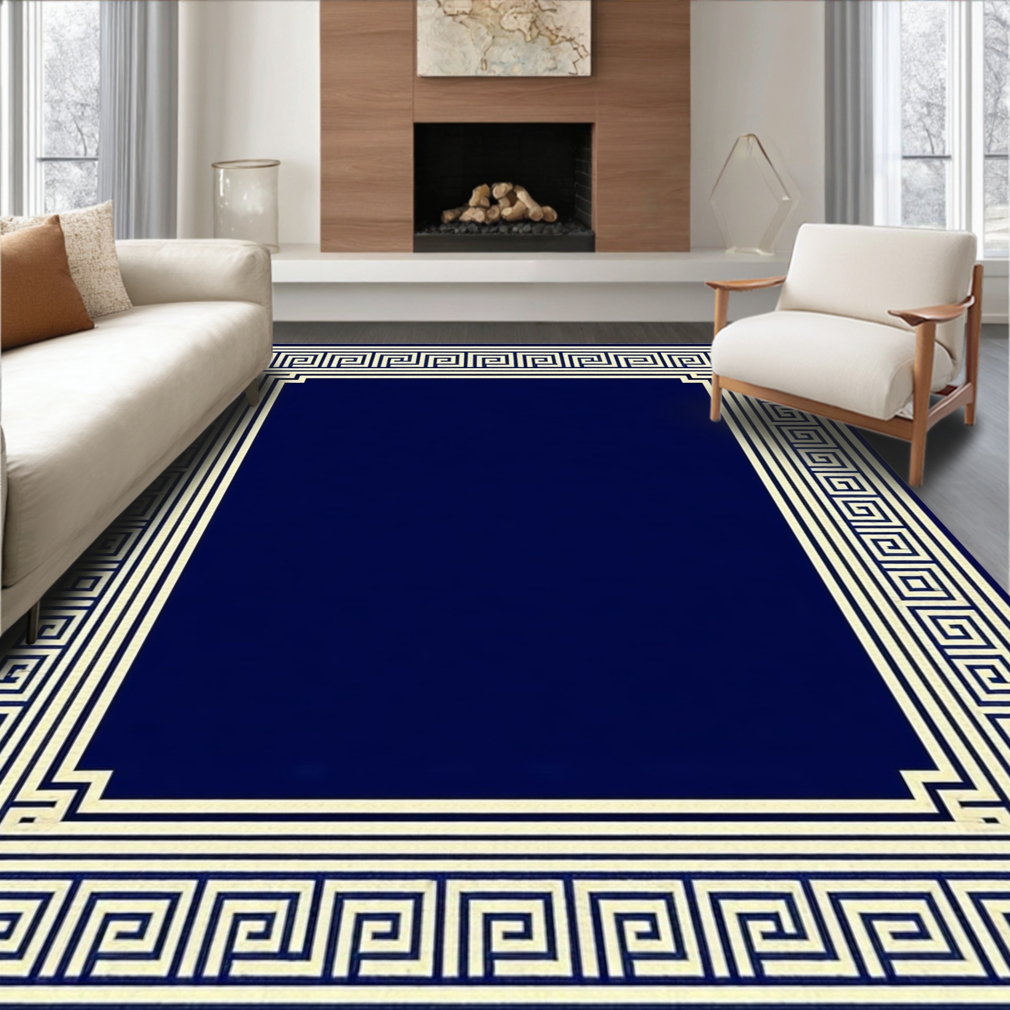 Navy Blue Greek Key Elegant Rug