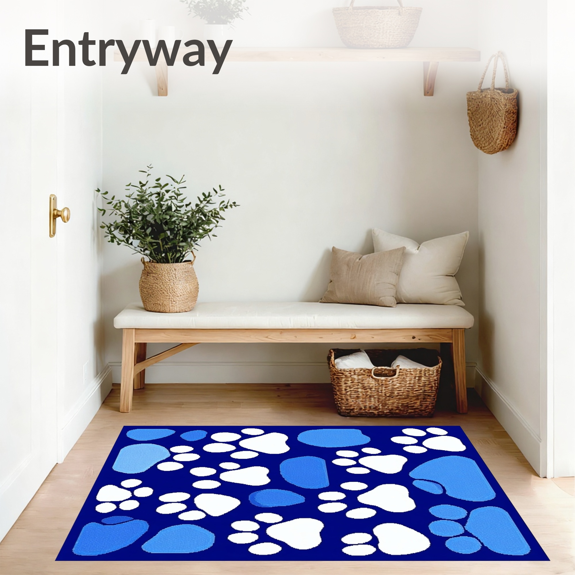 Navy Blue Paw Print Playful Rug
