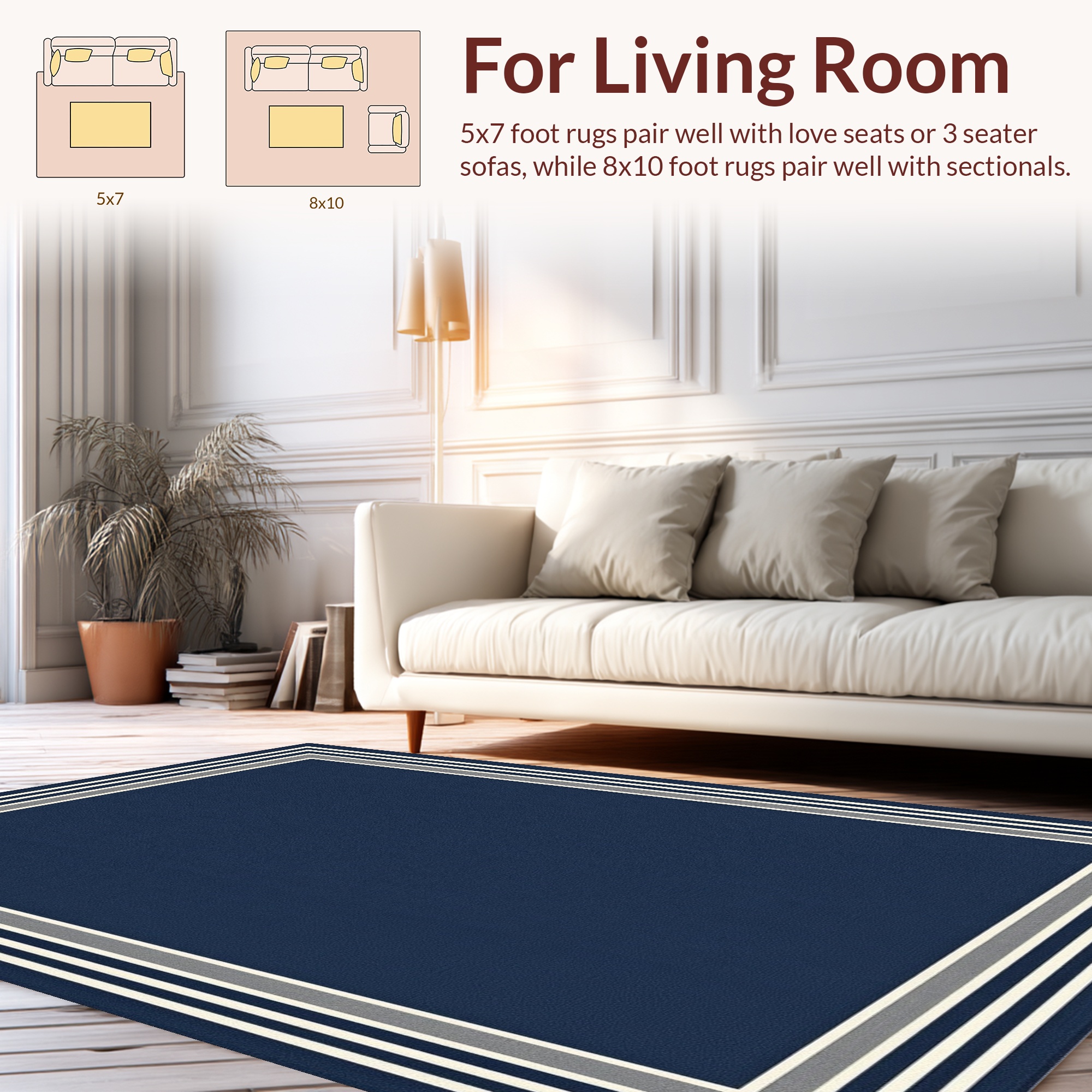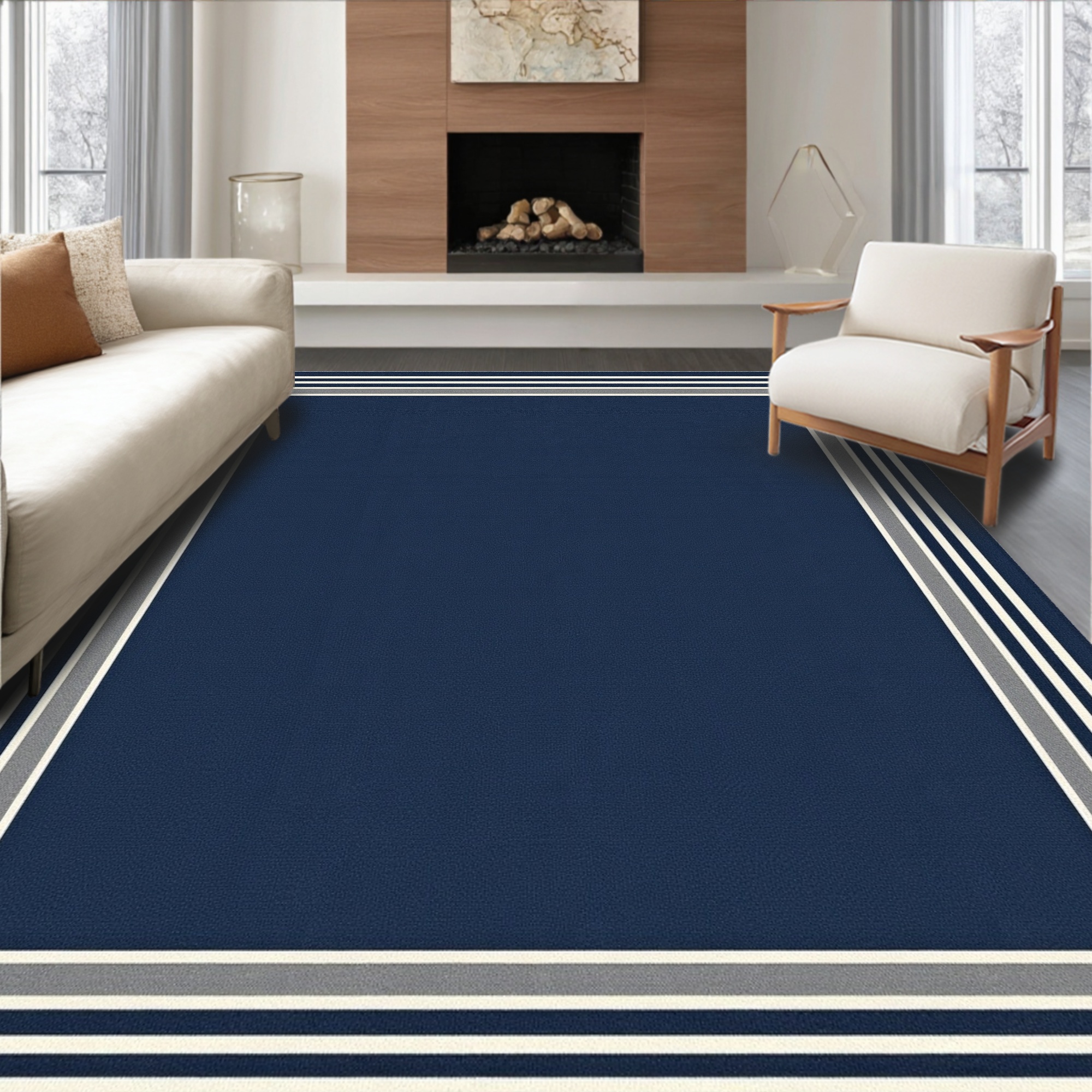 Navy Bordered Serene Rug