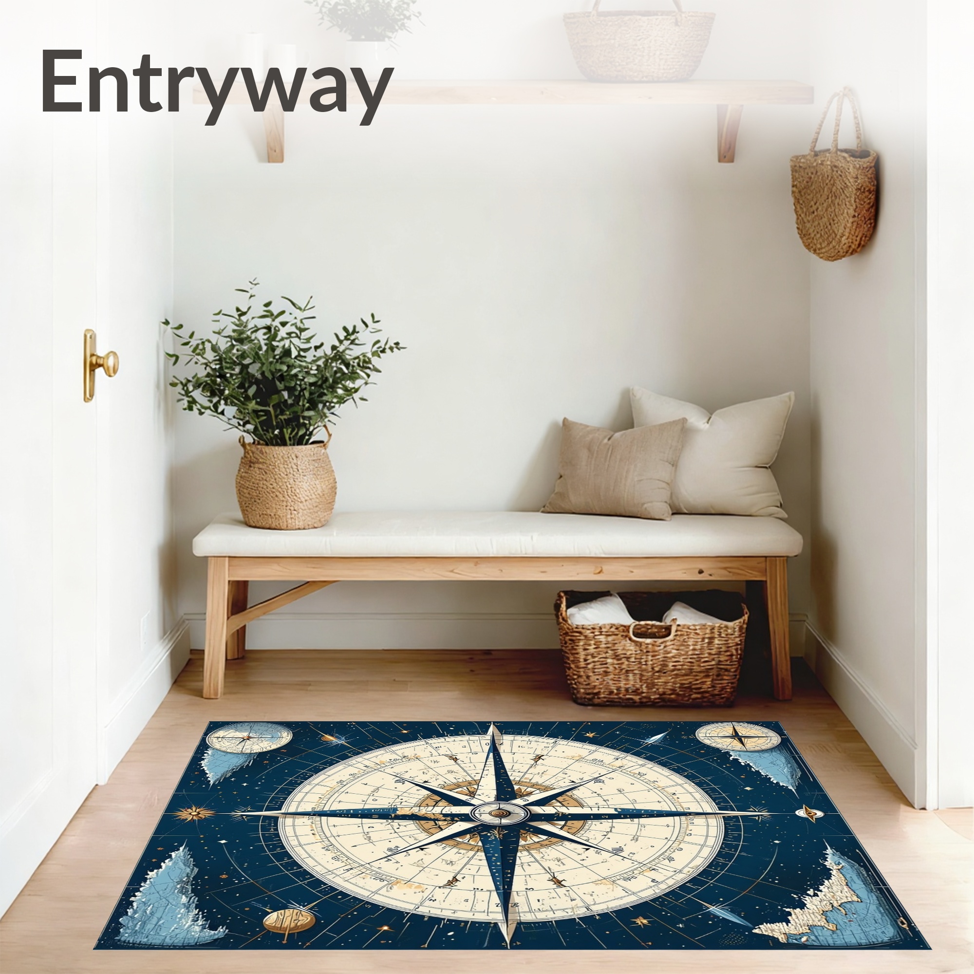Navy & Cream Vintage Compass Adventure Rug