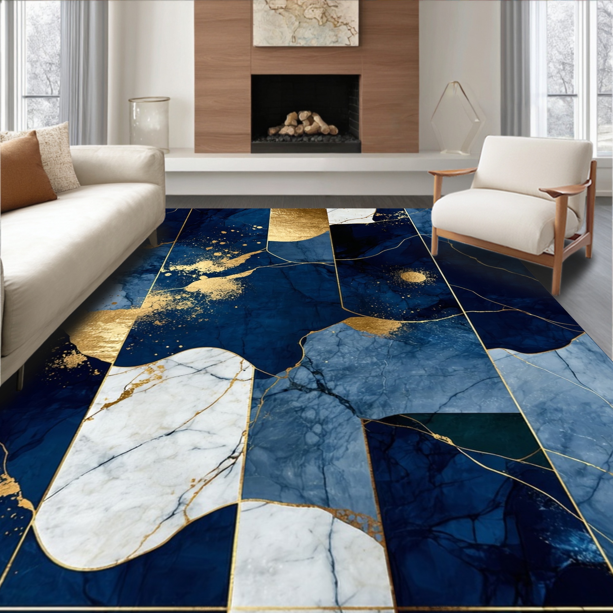 Navy Gold Abstract Elegant Rug