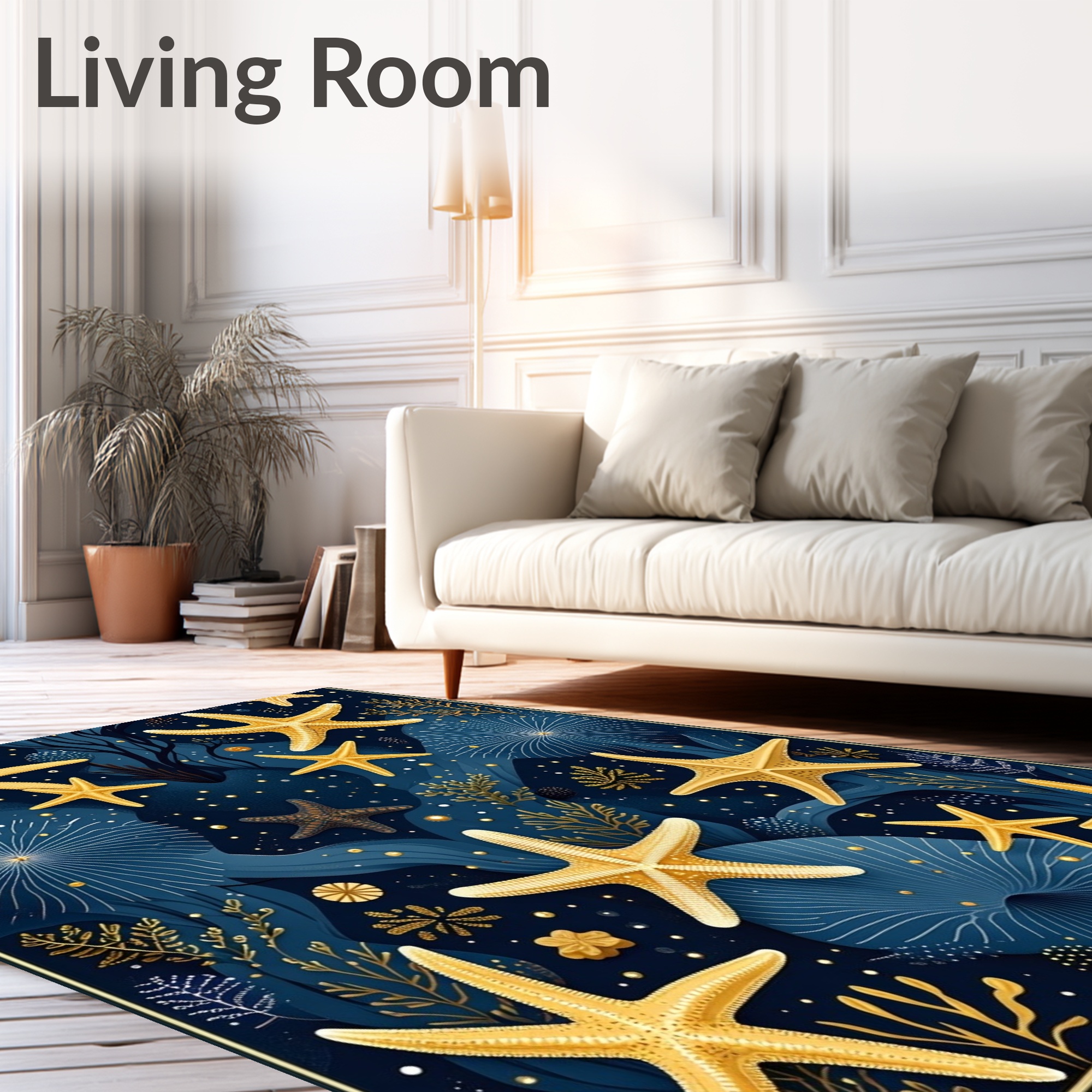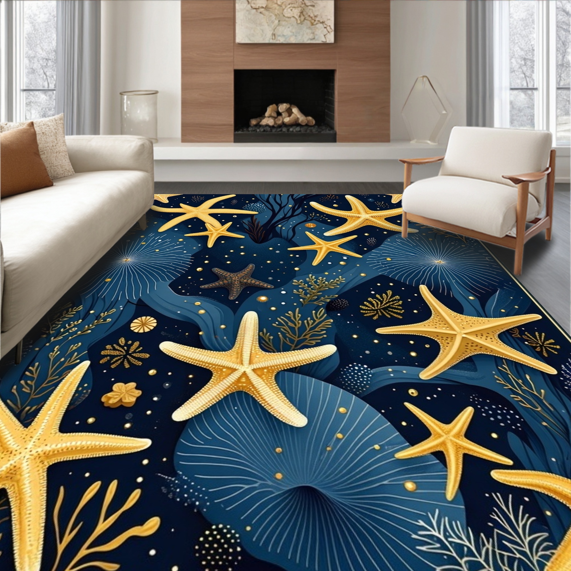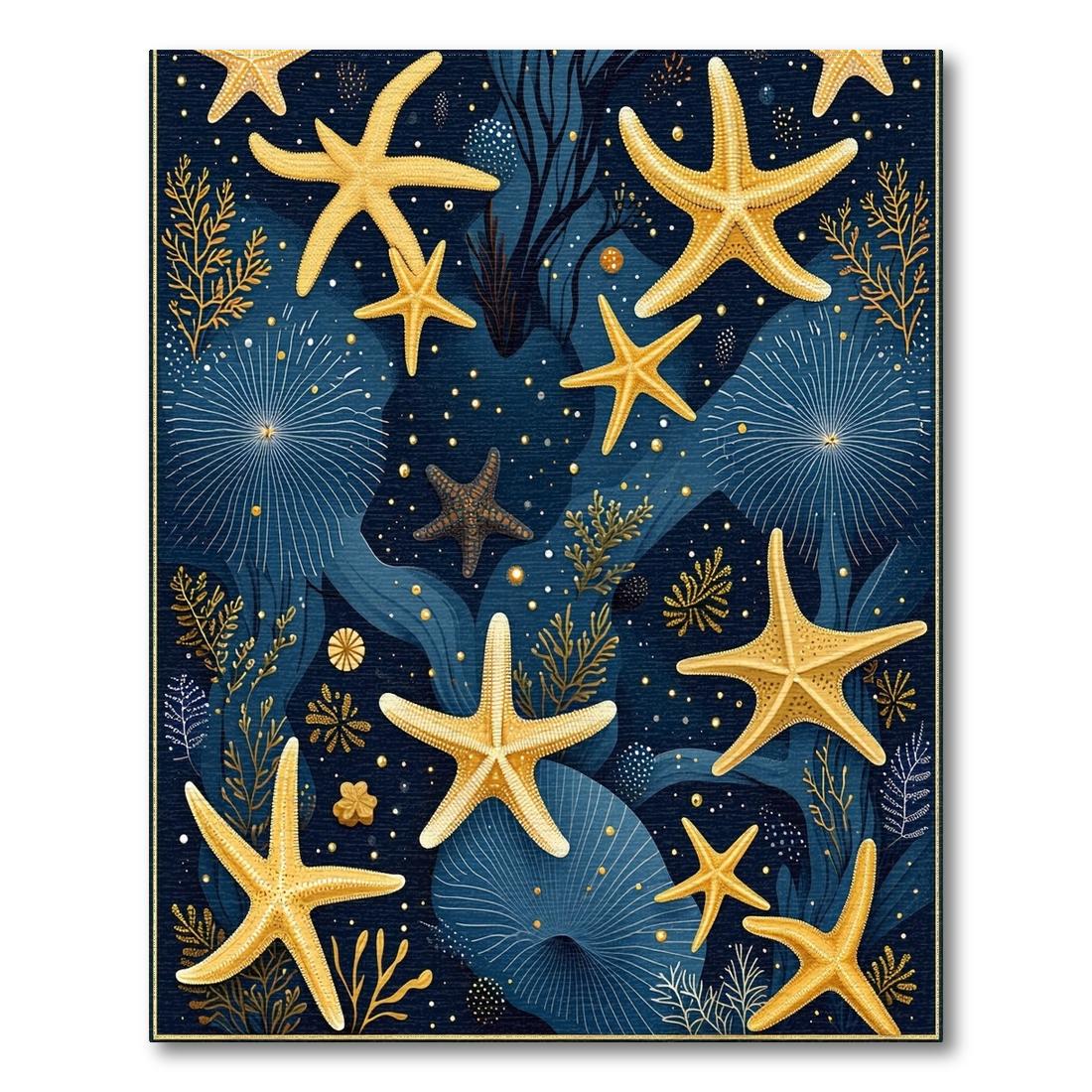 Navy Gold Starfish Serene Ocean Rug
