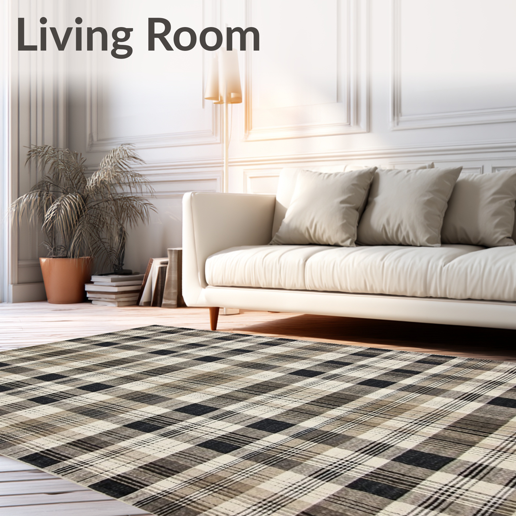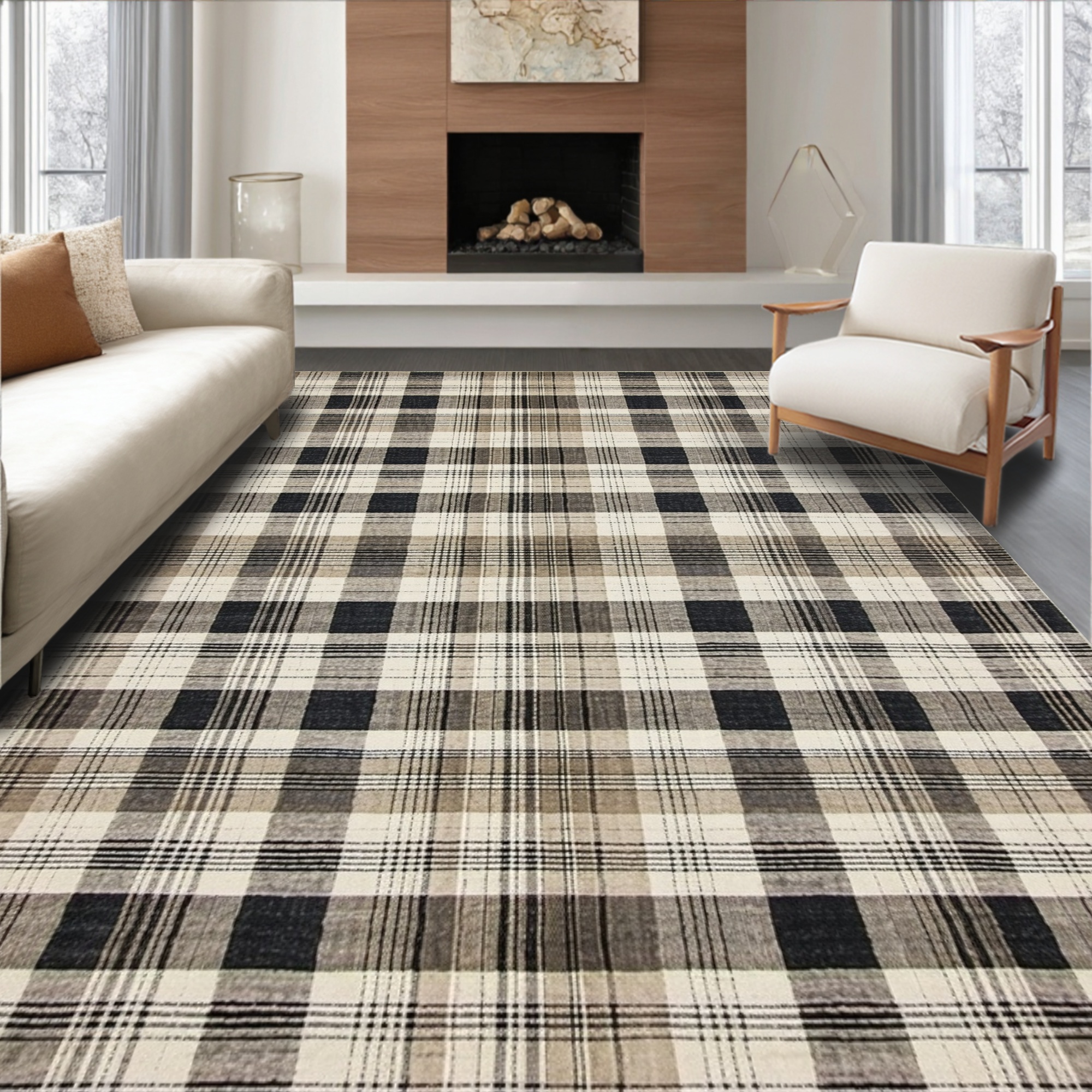 Neutral Plaid Cozy Rug