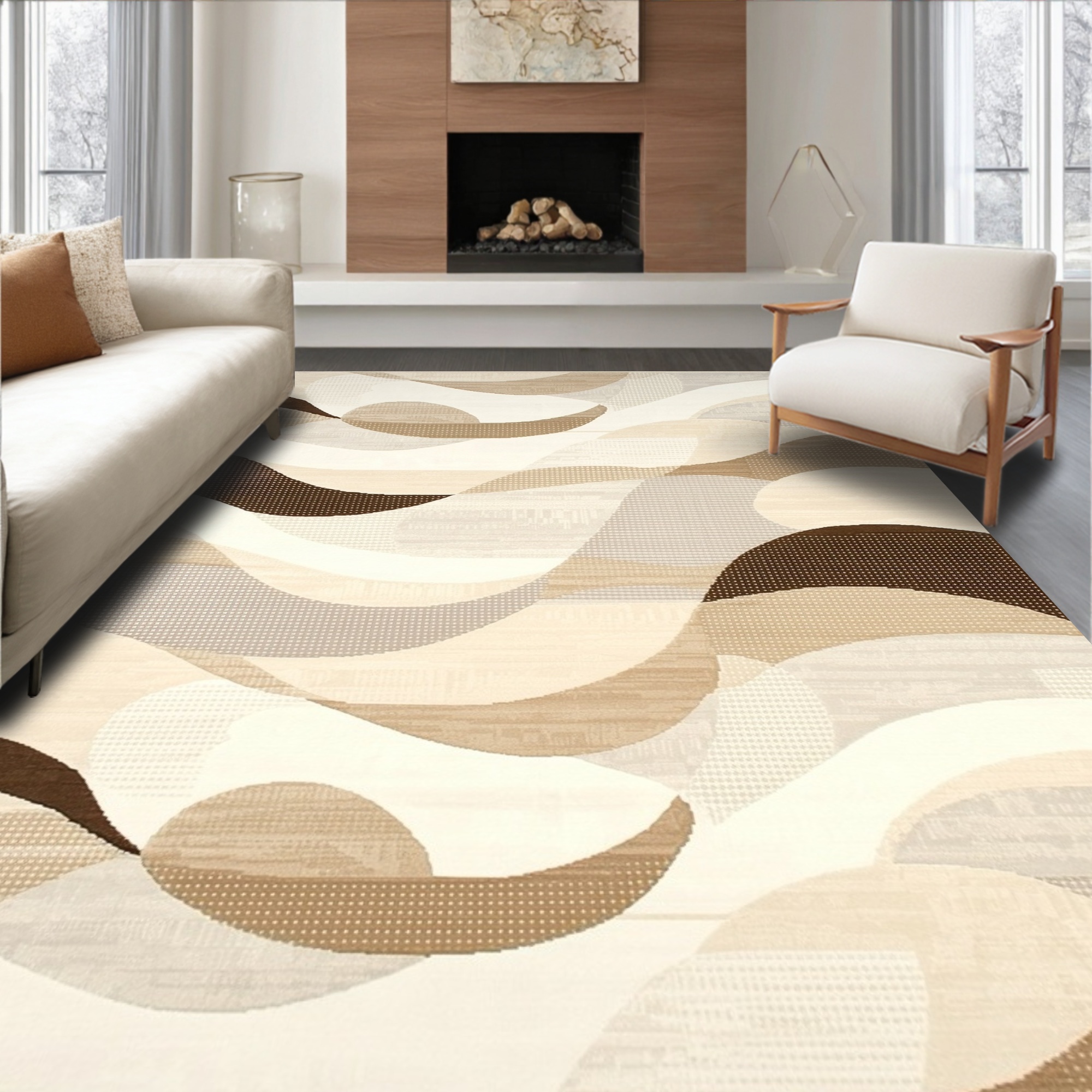 Neutral Wave Pattern Calm Rug