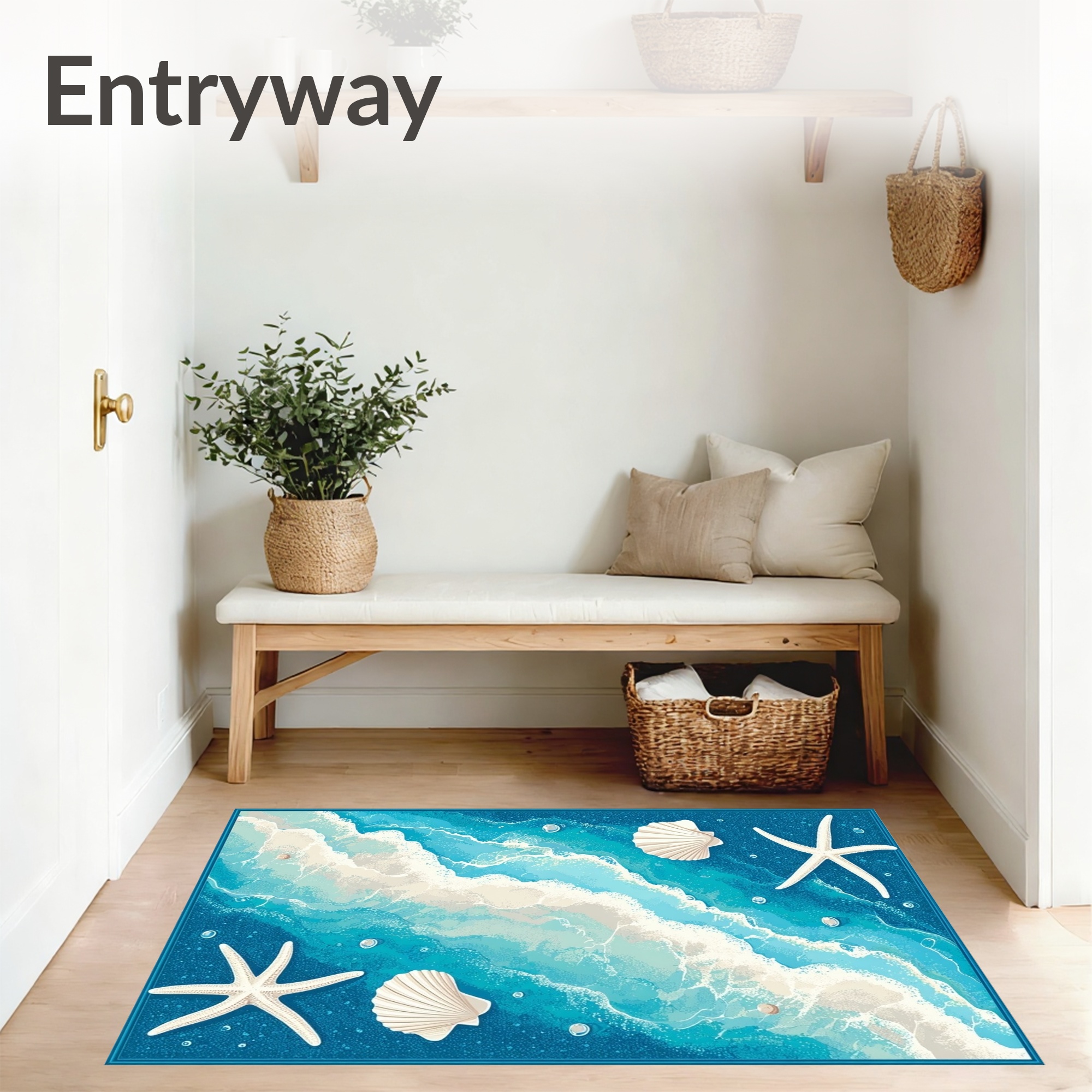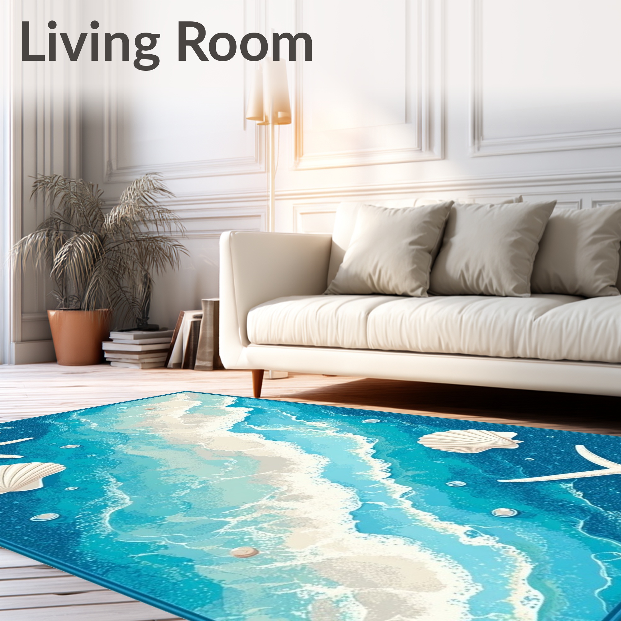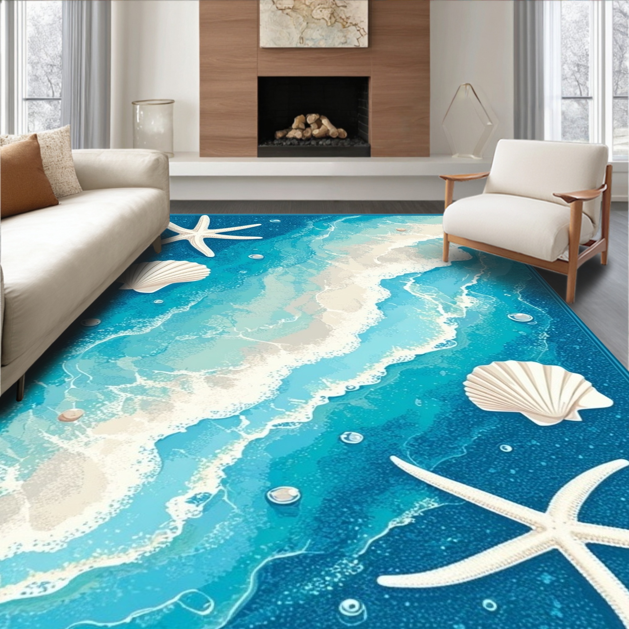 Ocean Blue Coastal Seashell Starfish Rug