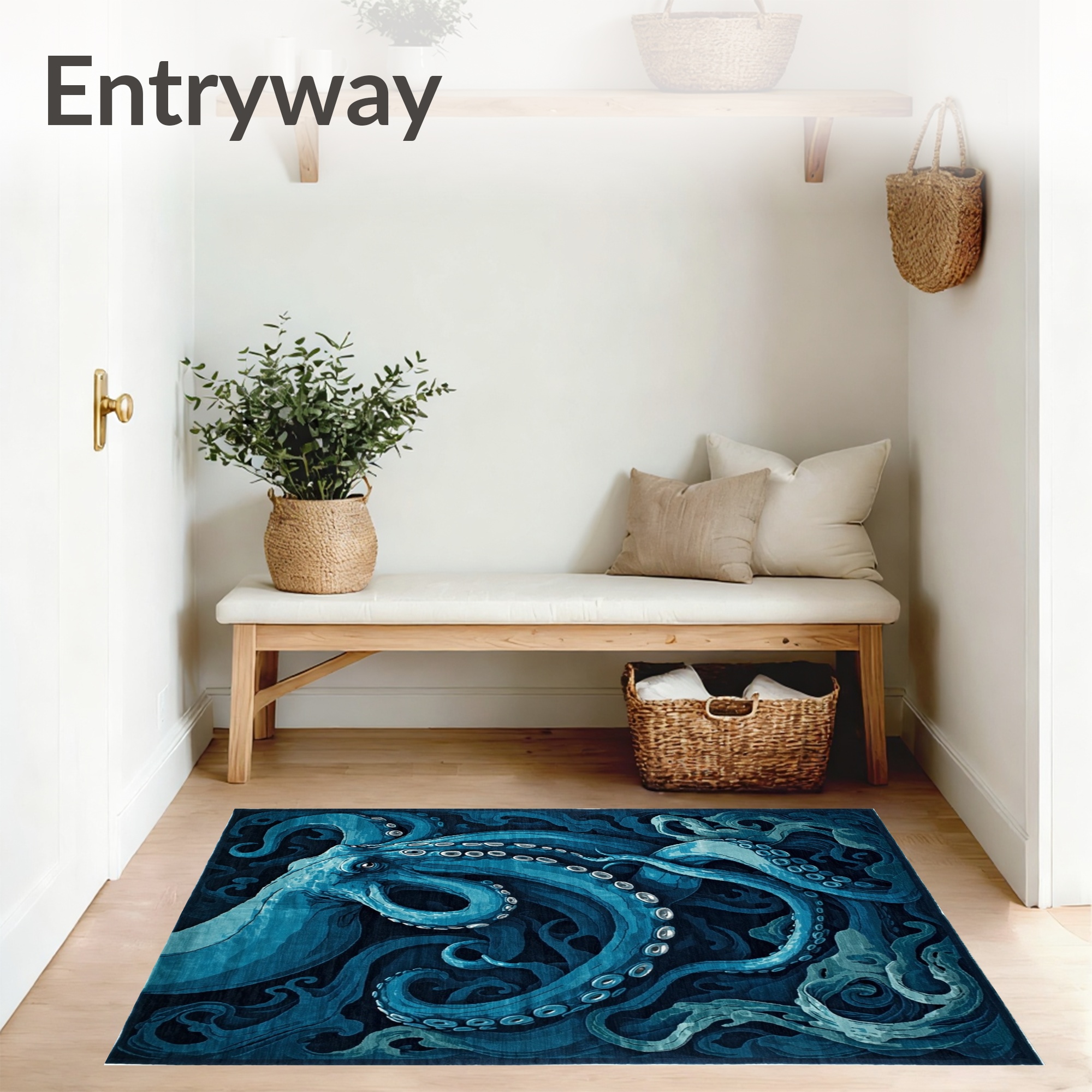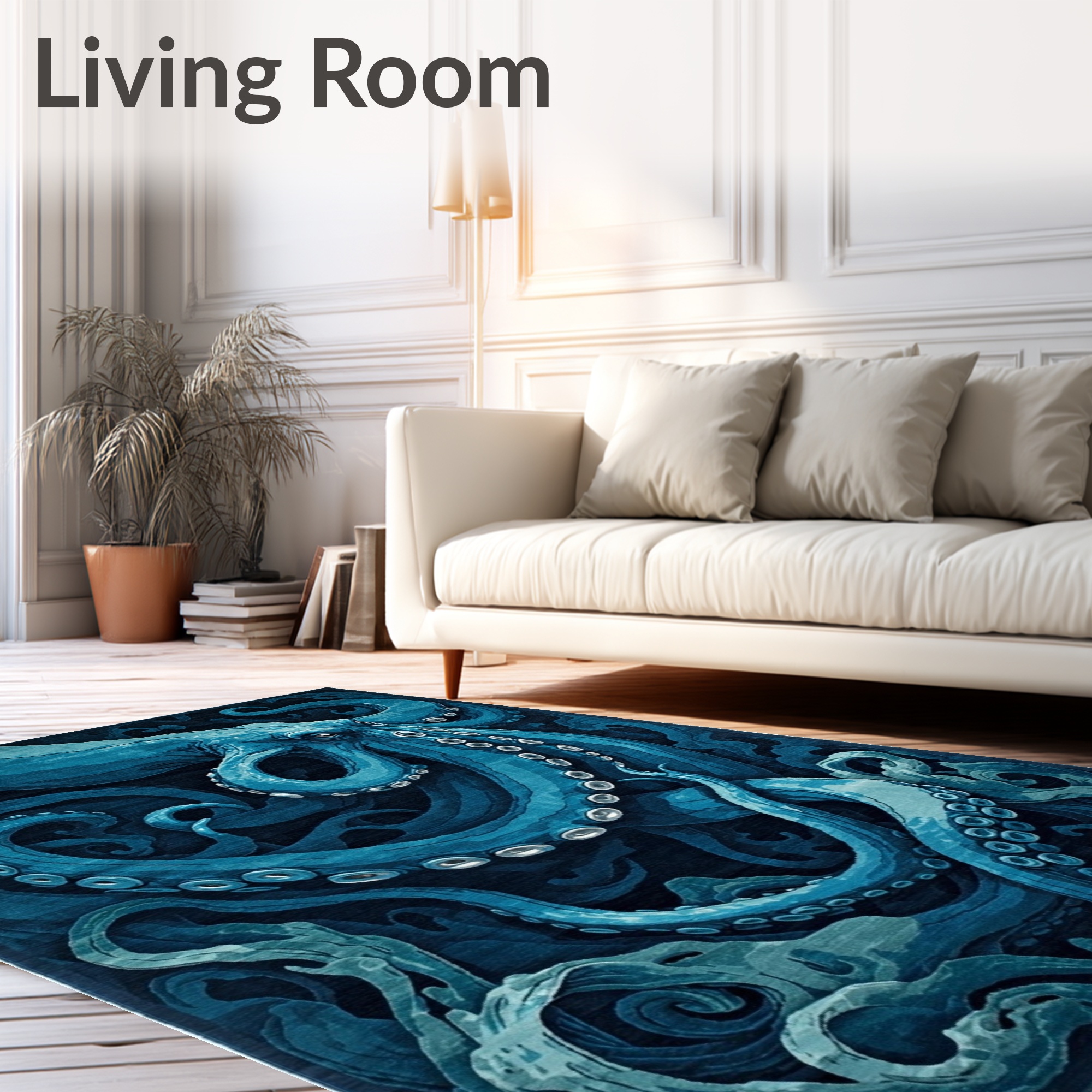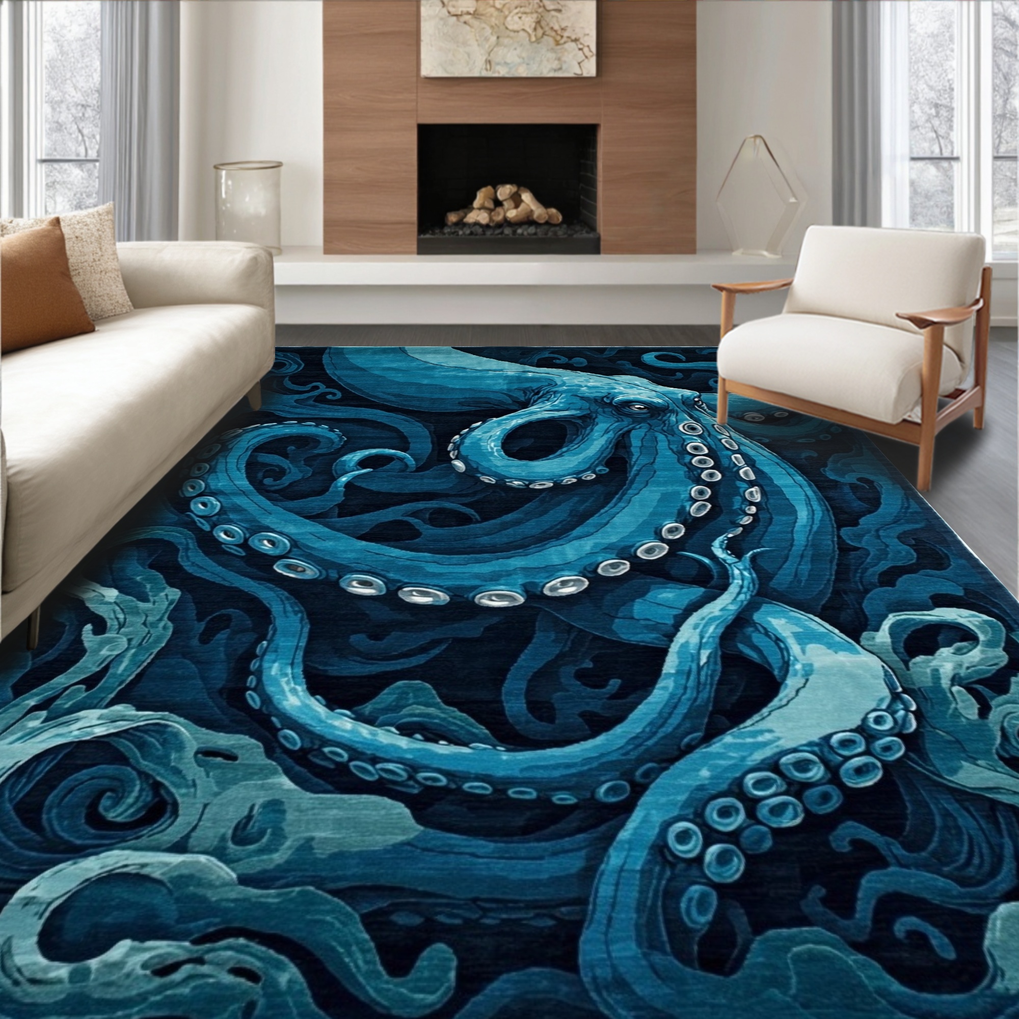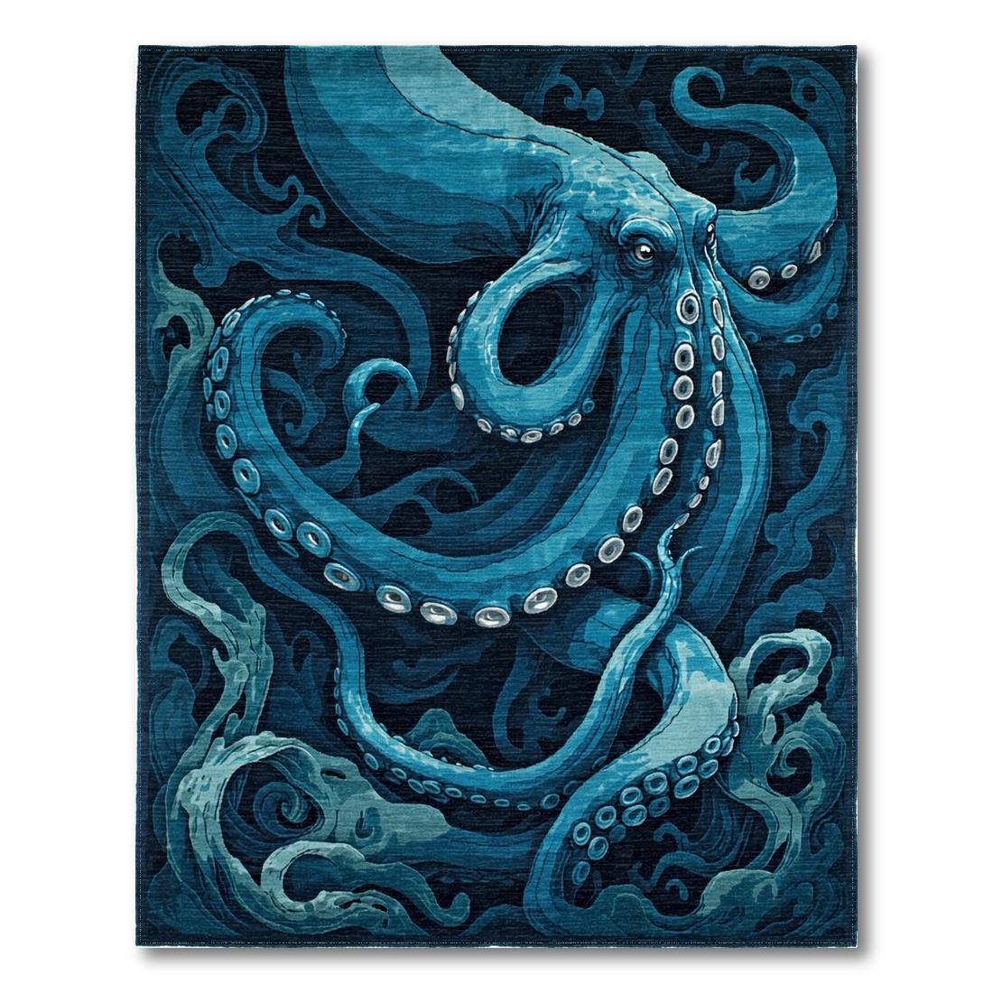 Ocean Blue Octopus Swirling Underwater Rug