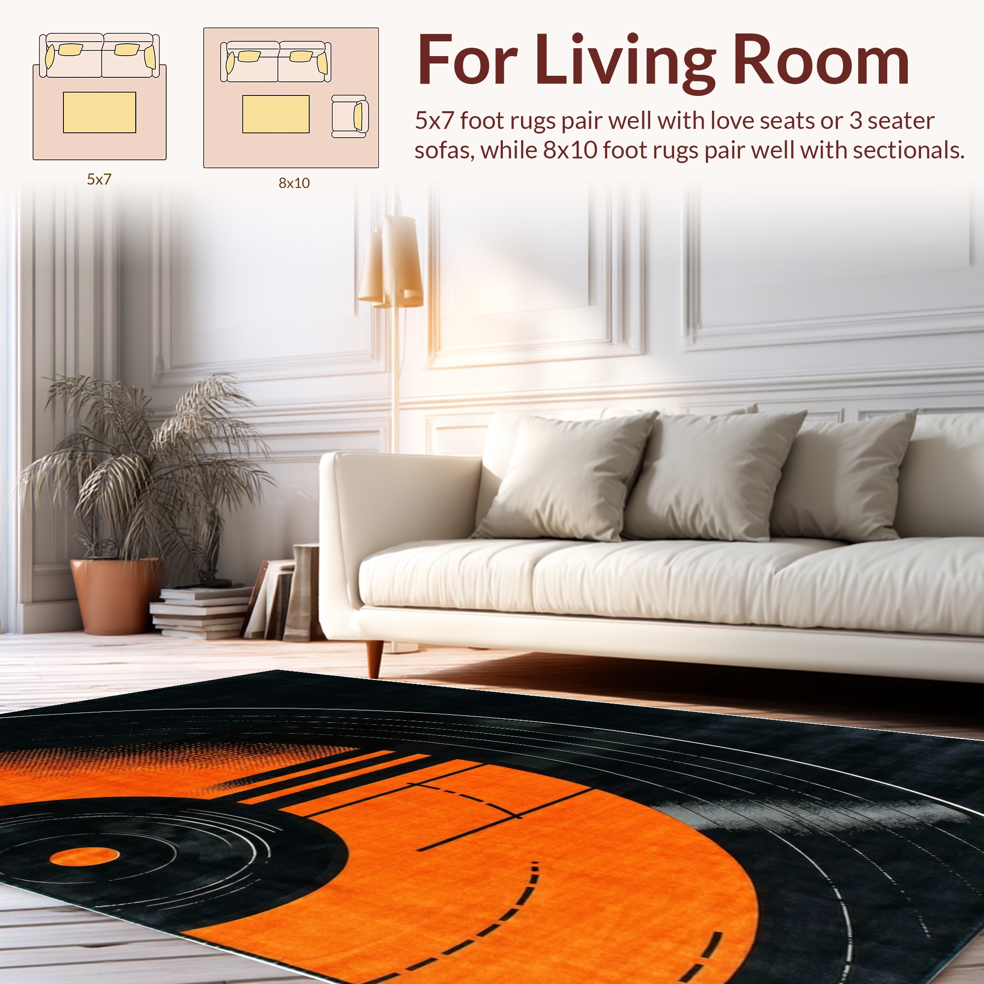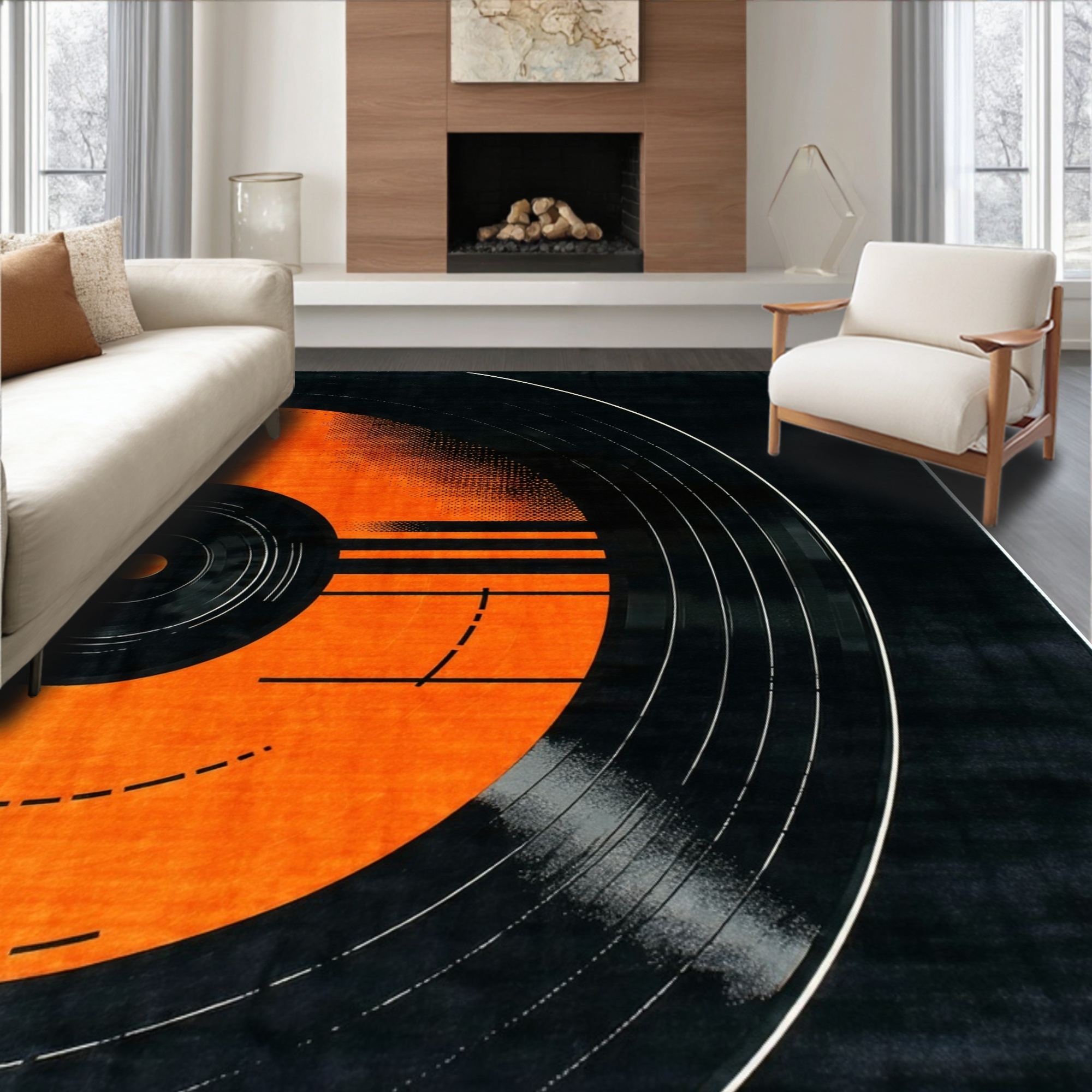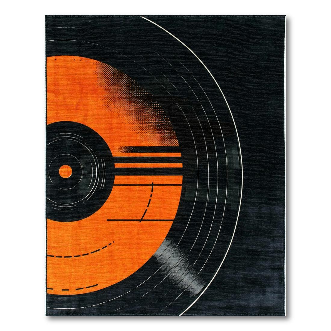 Orange Black Retro Vinyl Record Rug