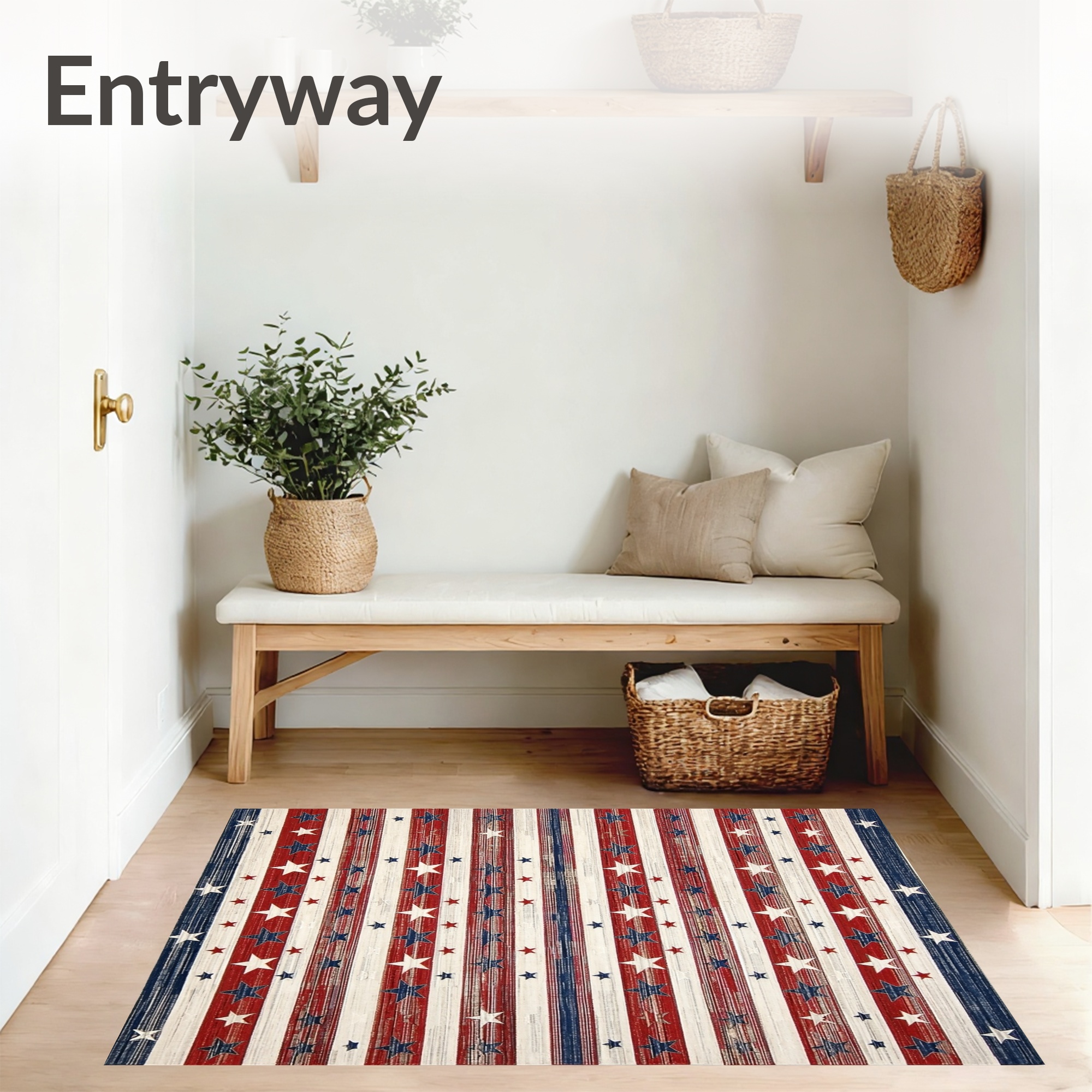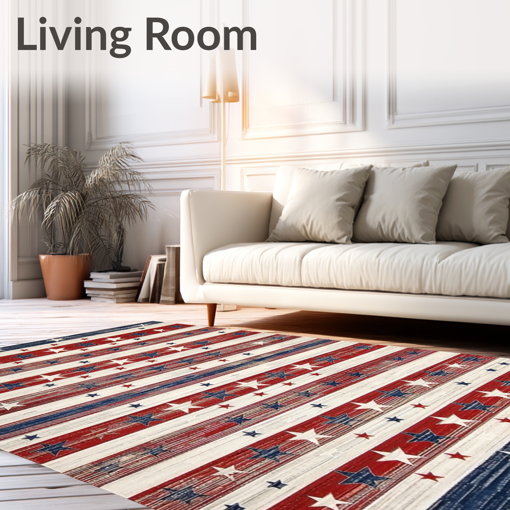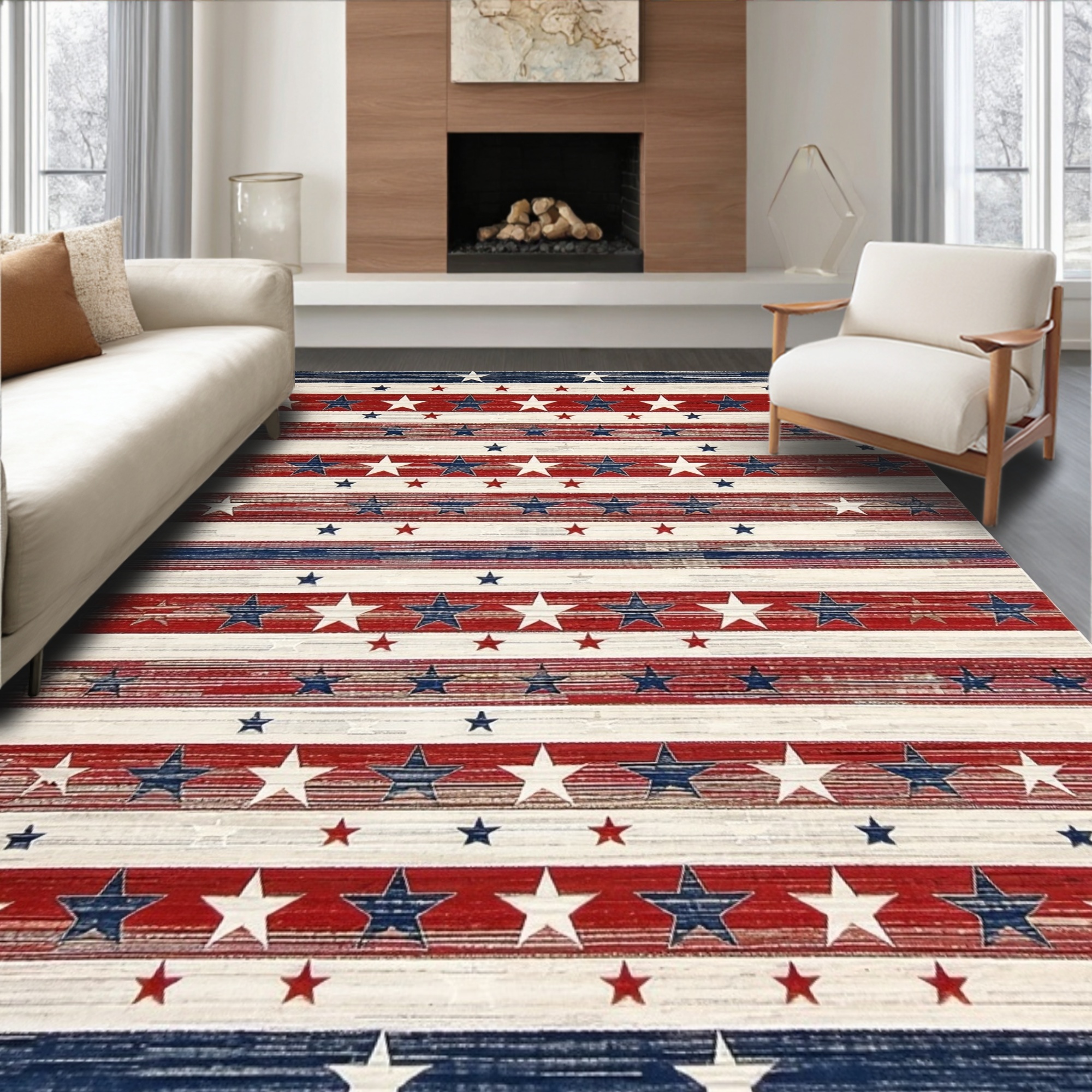 Patriotic Red White Blue Star-Striped Rug
