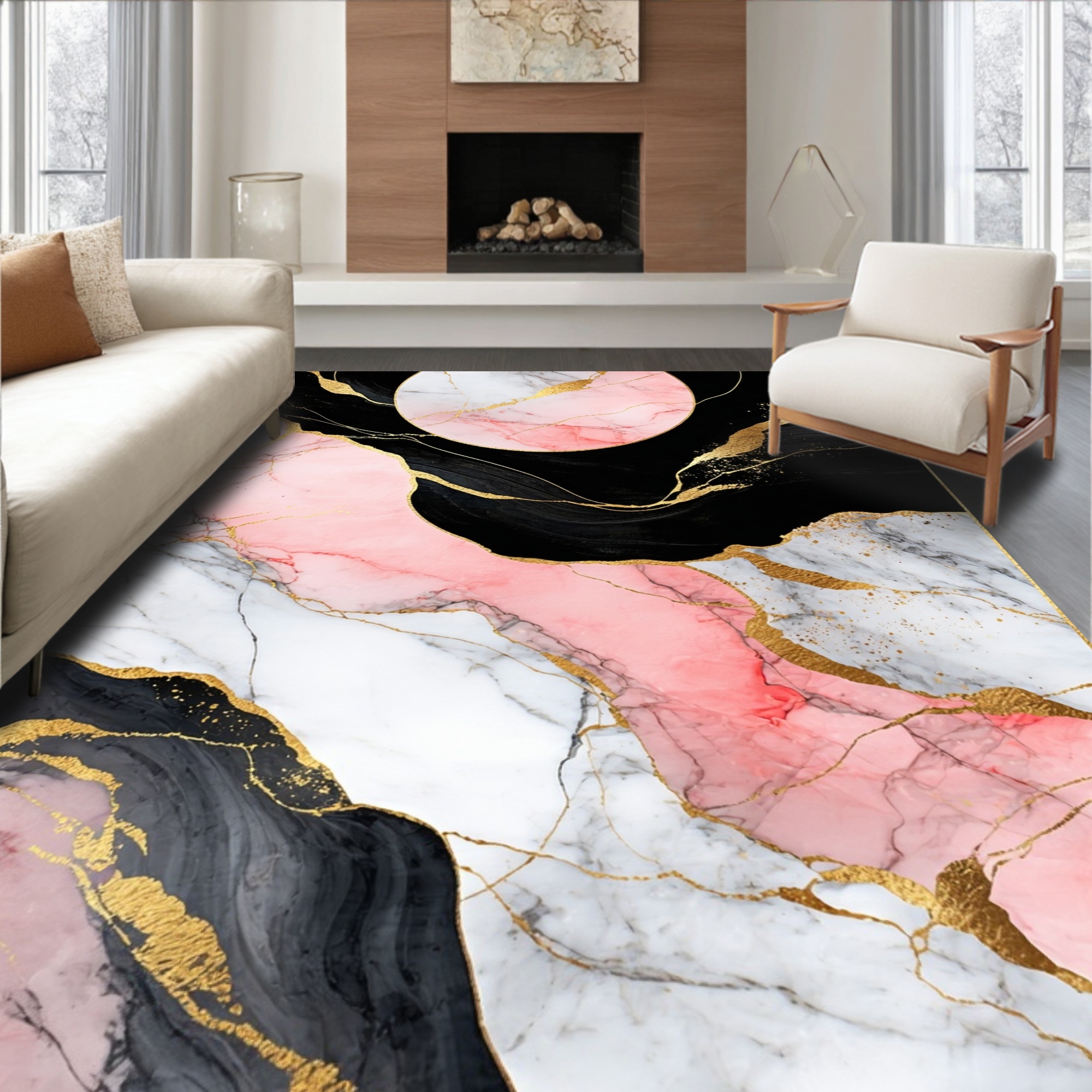 Pink Black Marble Modern Rug