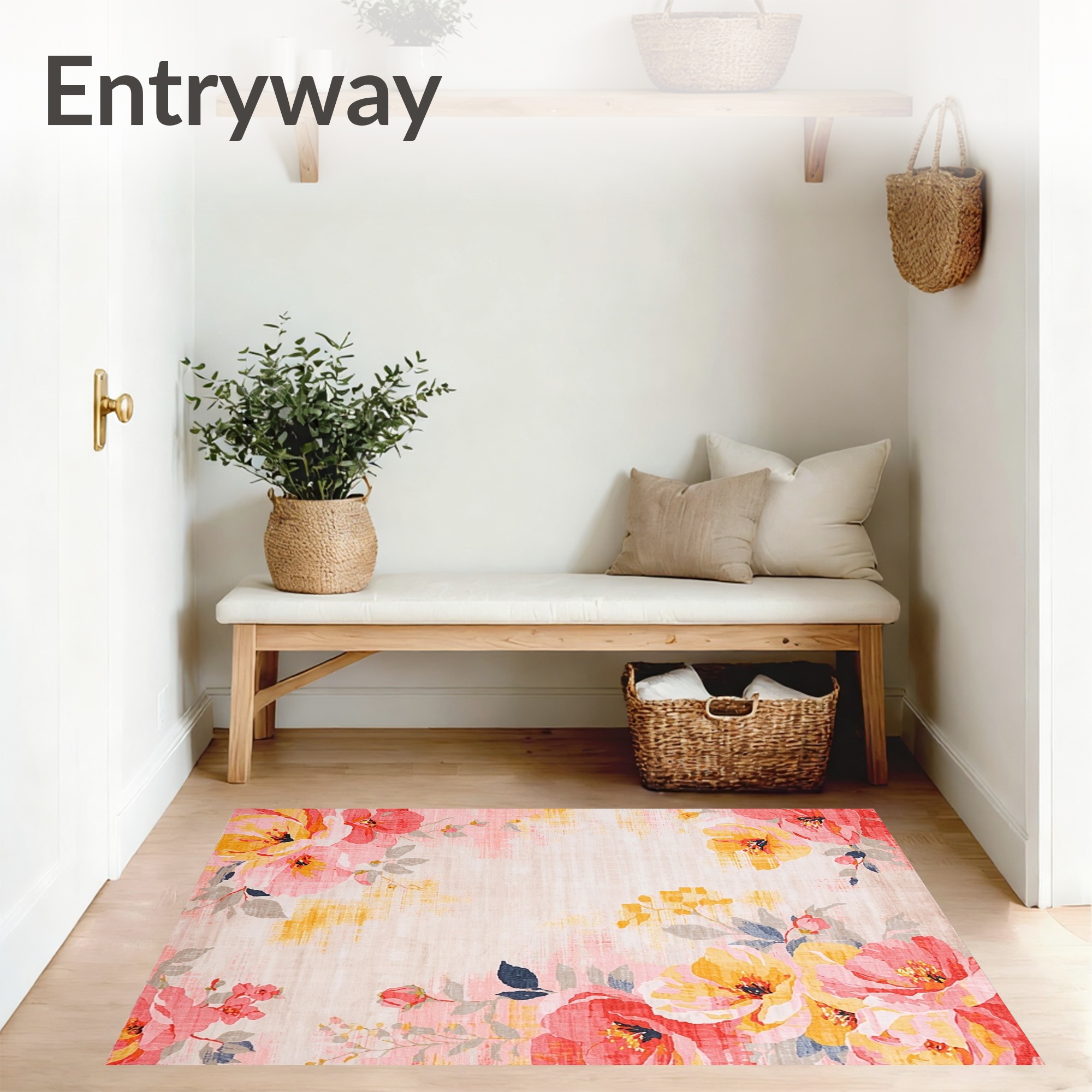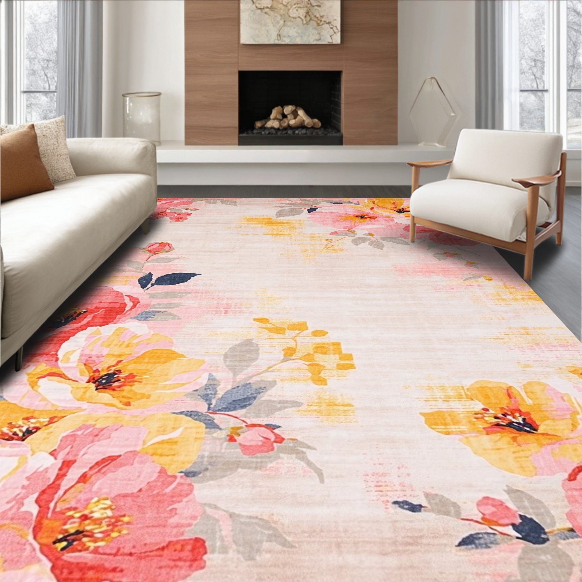 Pink Yellow Floral Cheerful Rug