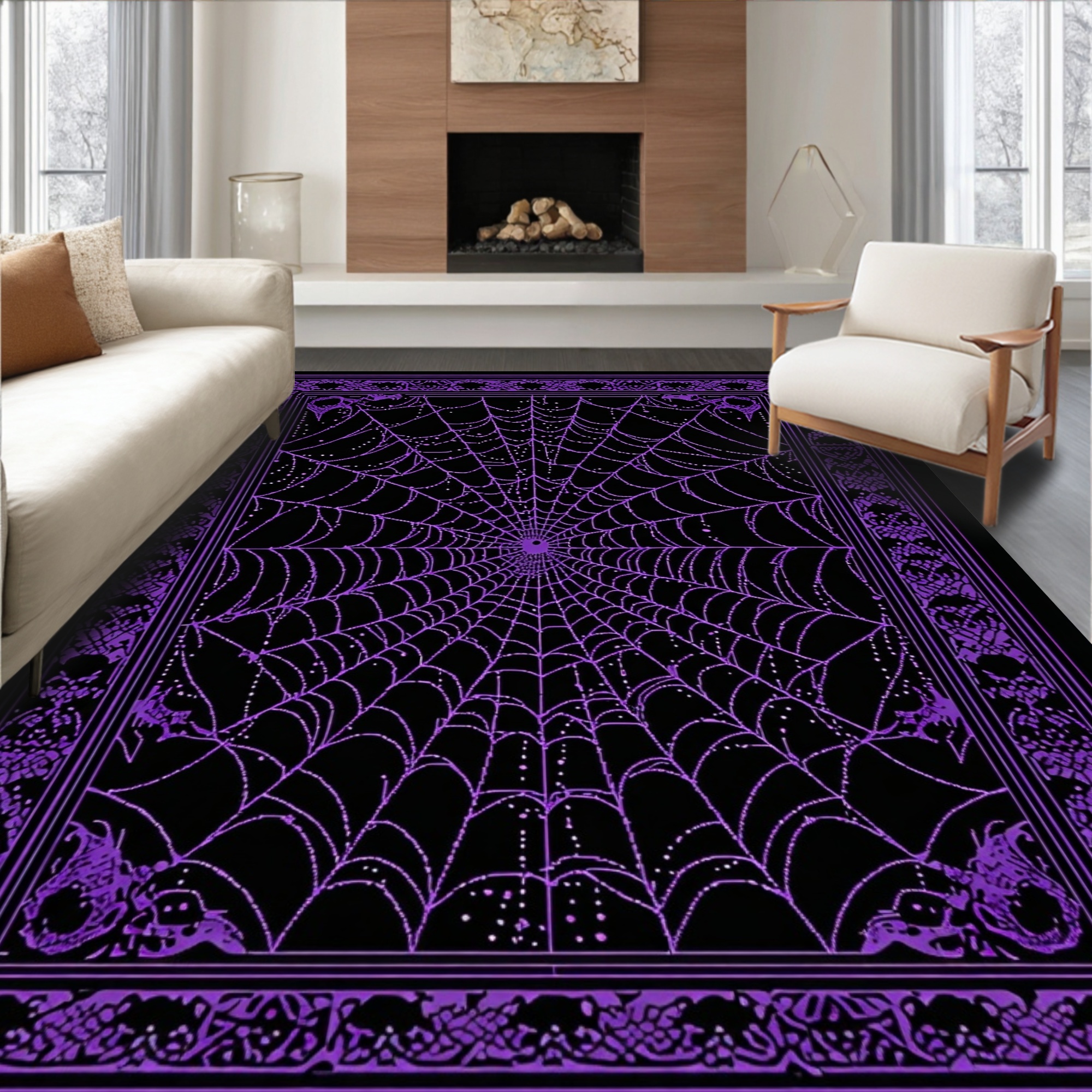 Purple Spider Web Spooky Rug
