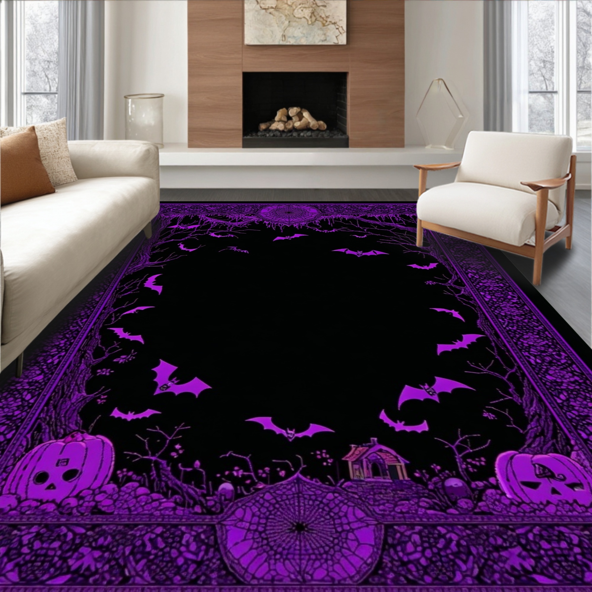 Purple Spooky Halloween Pattern Rug