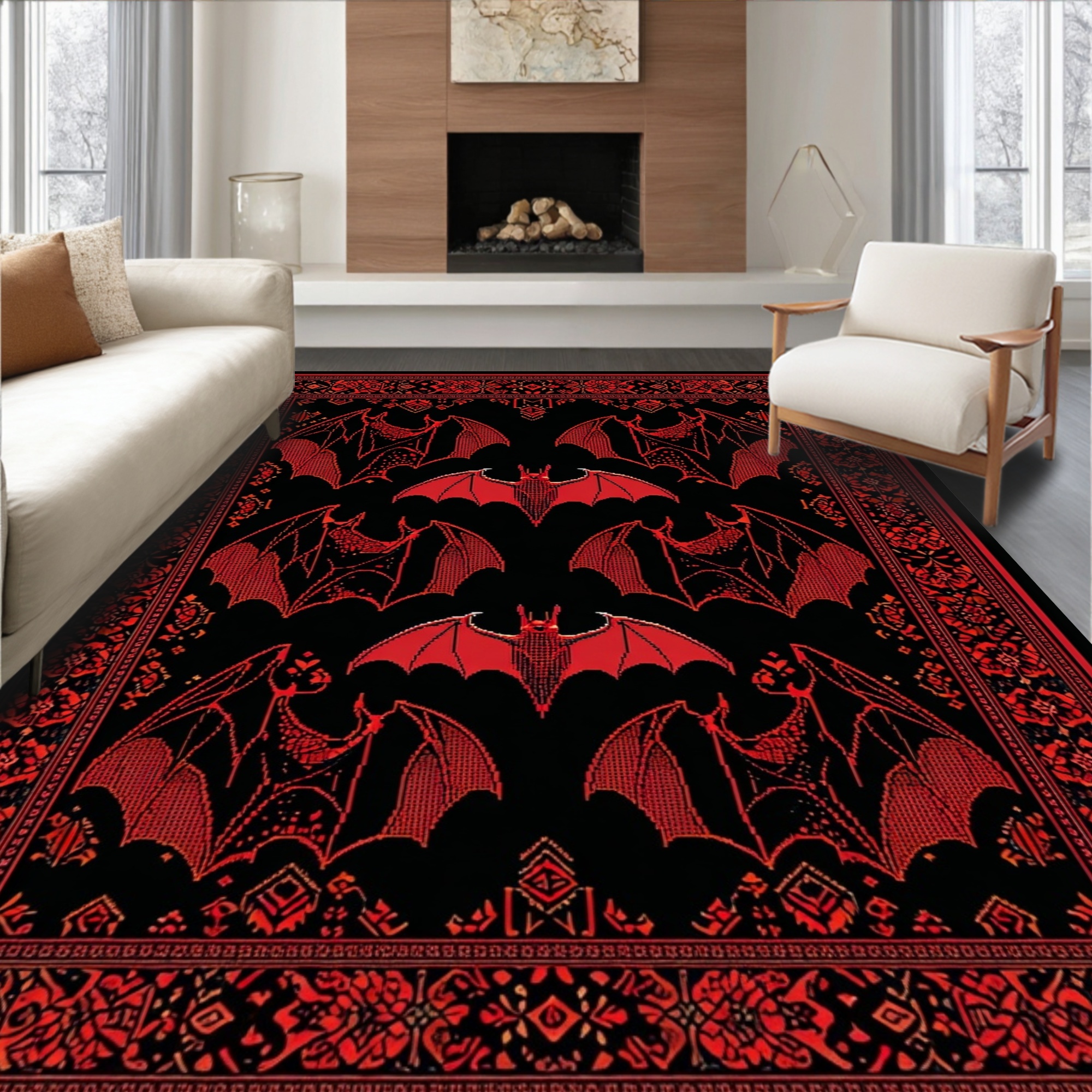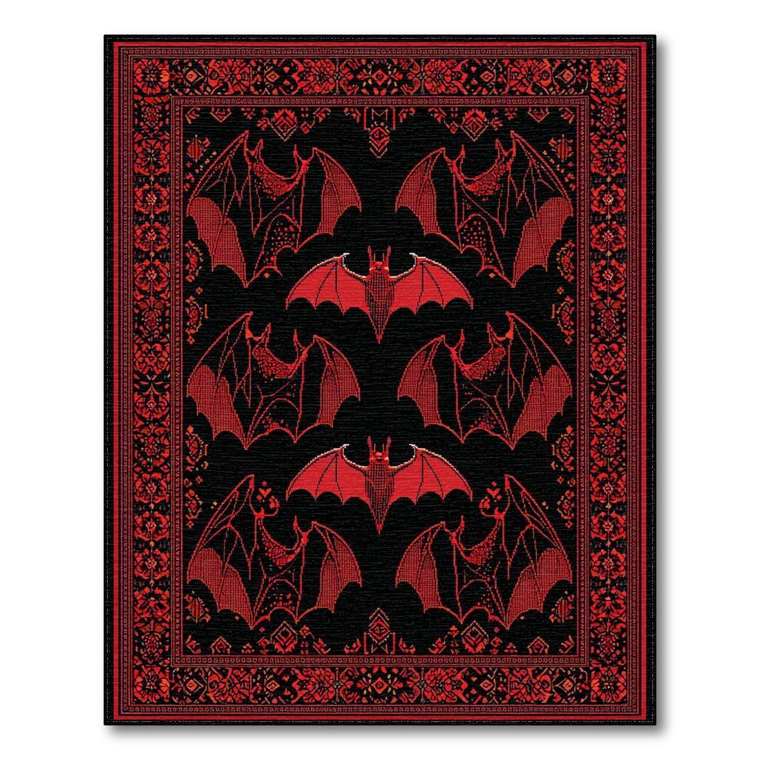 Red Black Bat-Patterned Mysterious Rug