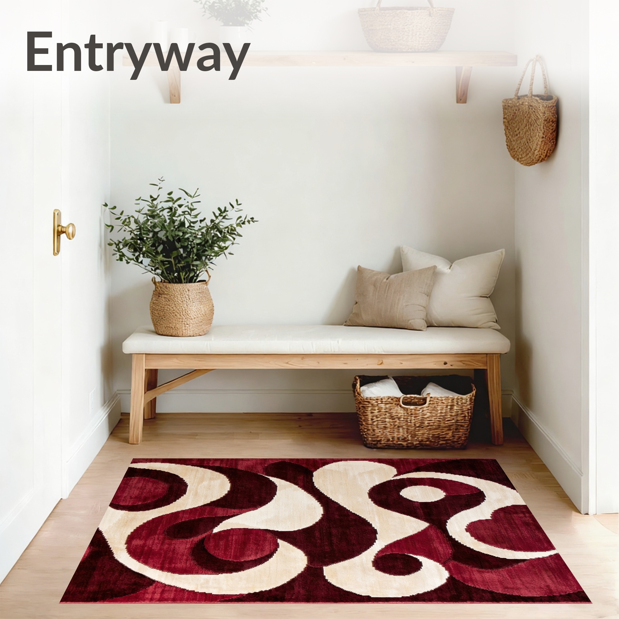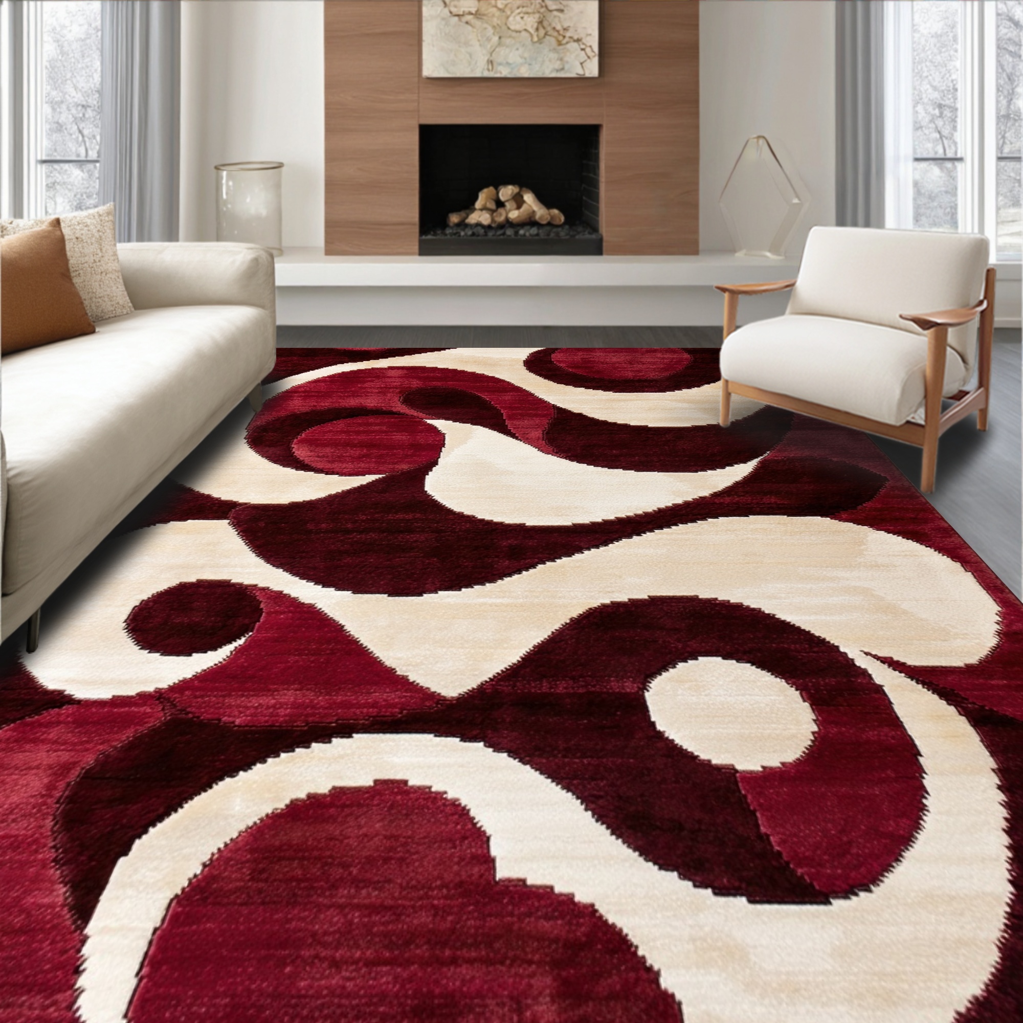 Red Cream Swirl Vibrant Rug