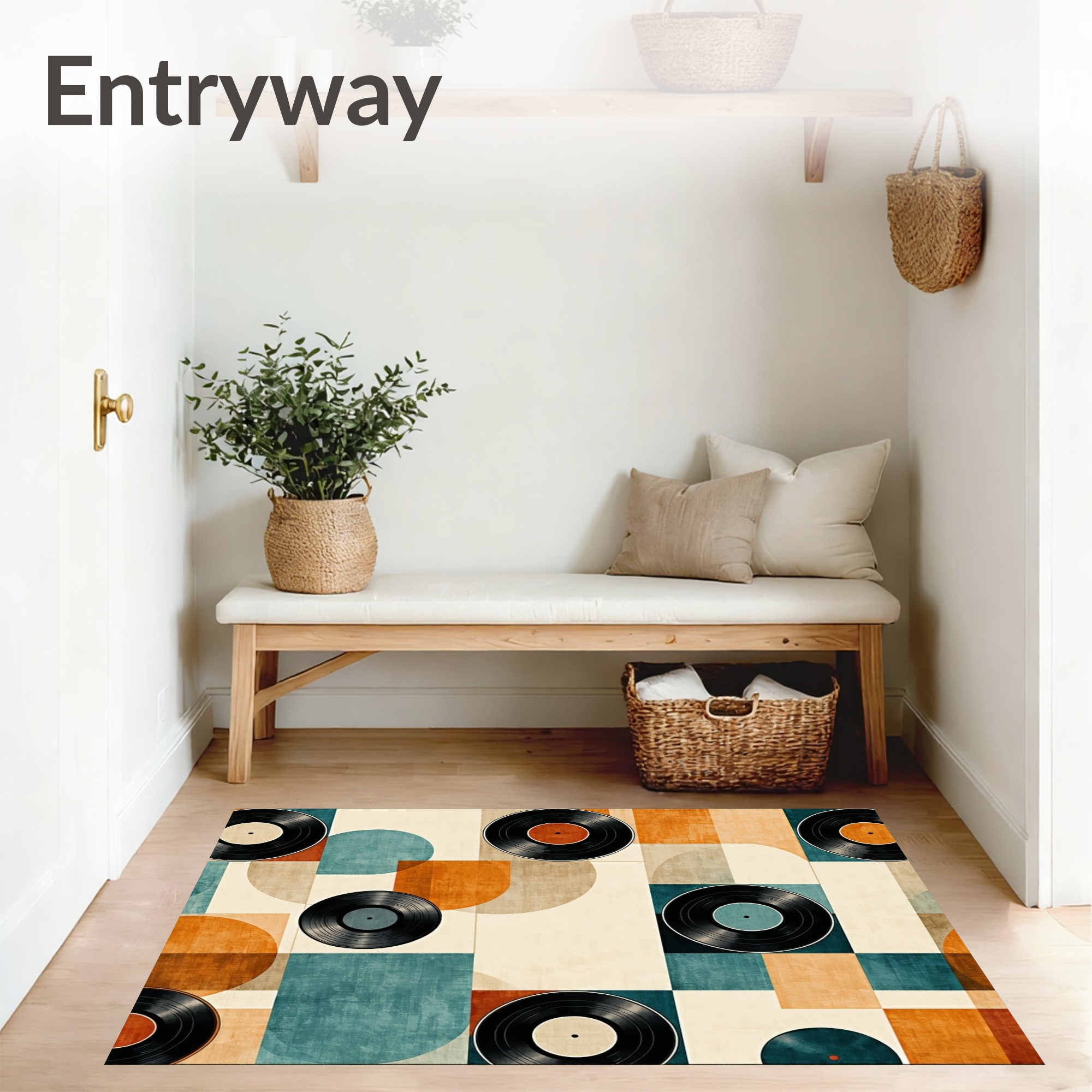 Retro Teal Orange Vinyl Geometric Rug