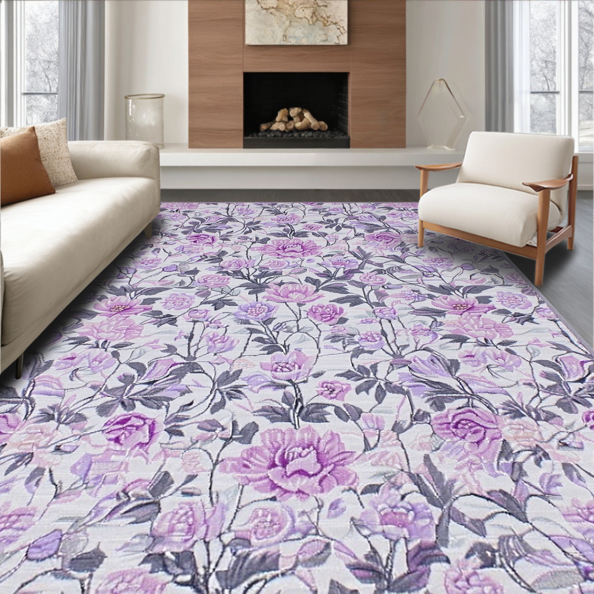 Romantic Lavender Floral Rug