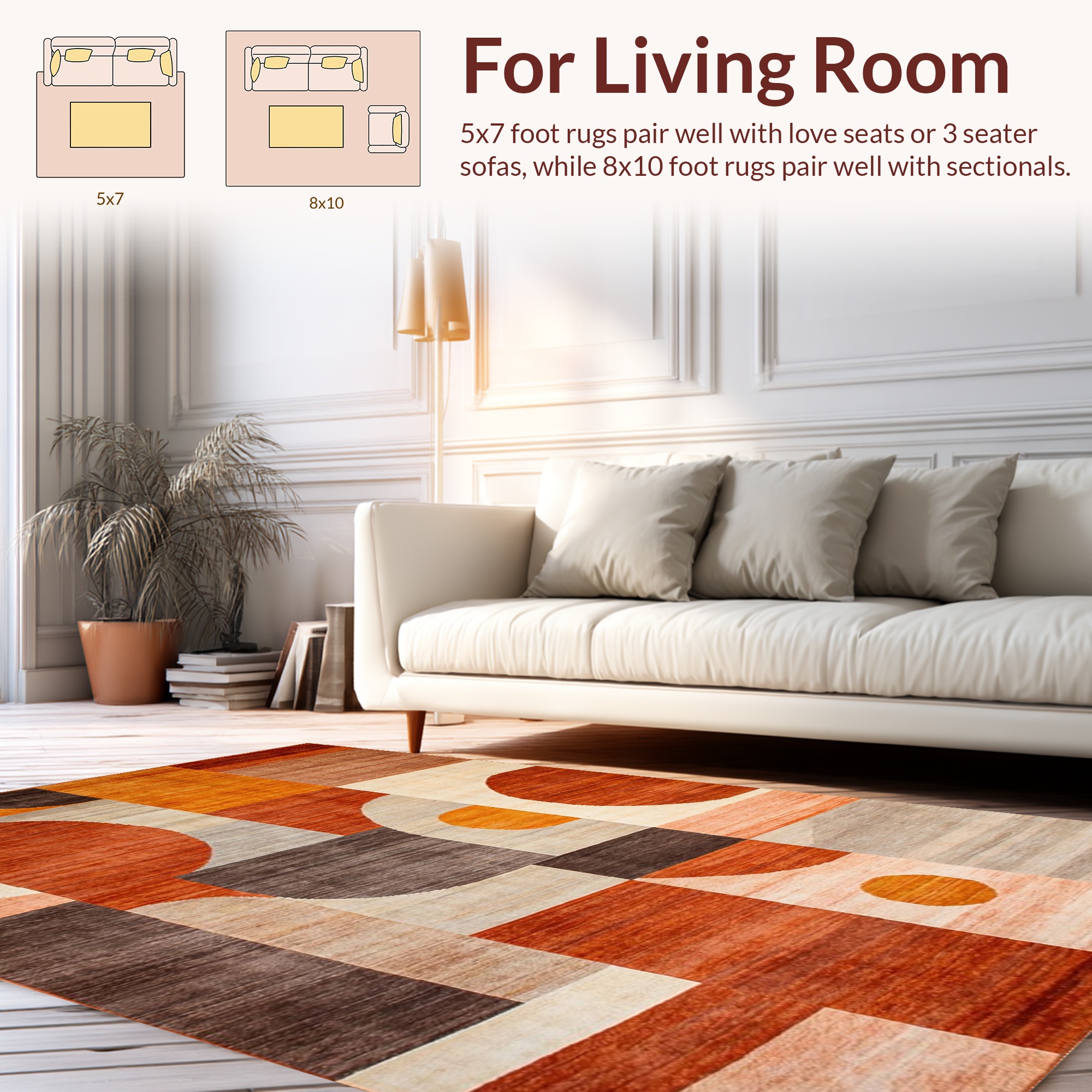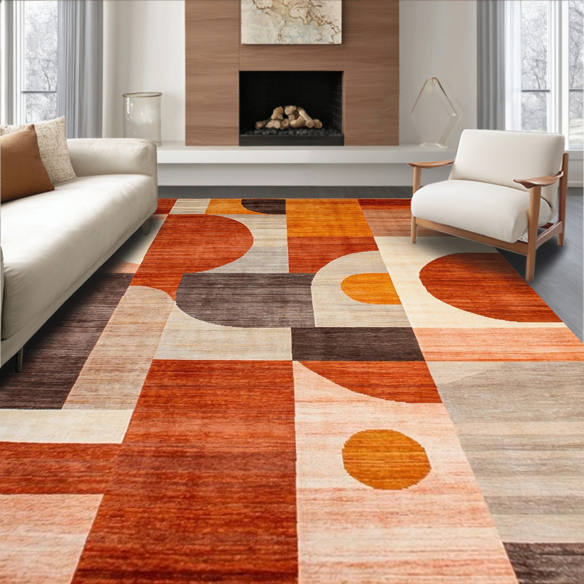 Rust Orange Geometric Vibrant Rug