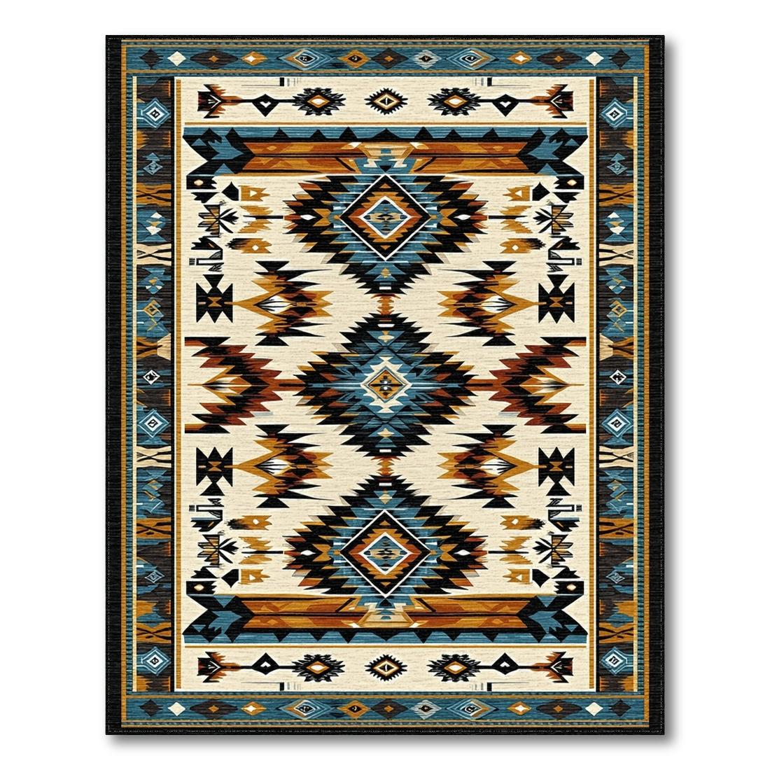 Rustic Geometric Blue Brown Cream Rug
