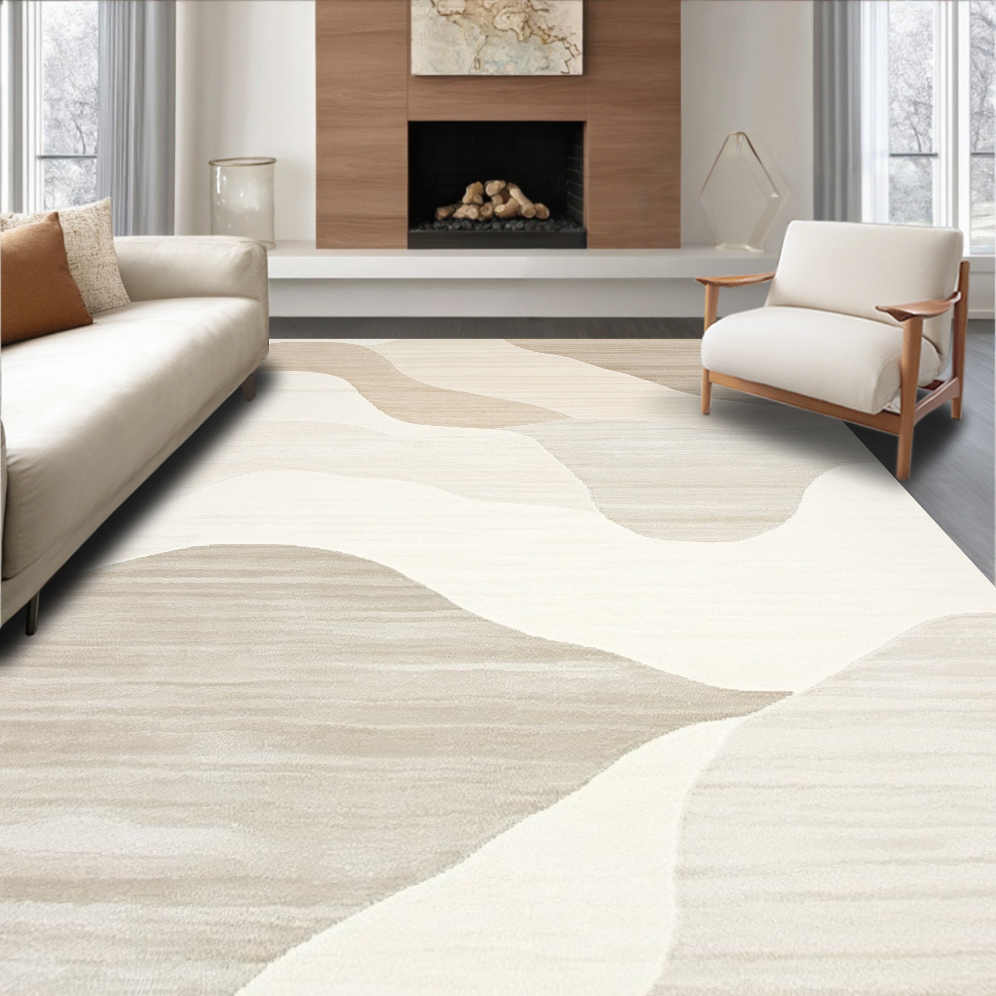 Serene Beige Cream Wave Rug