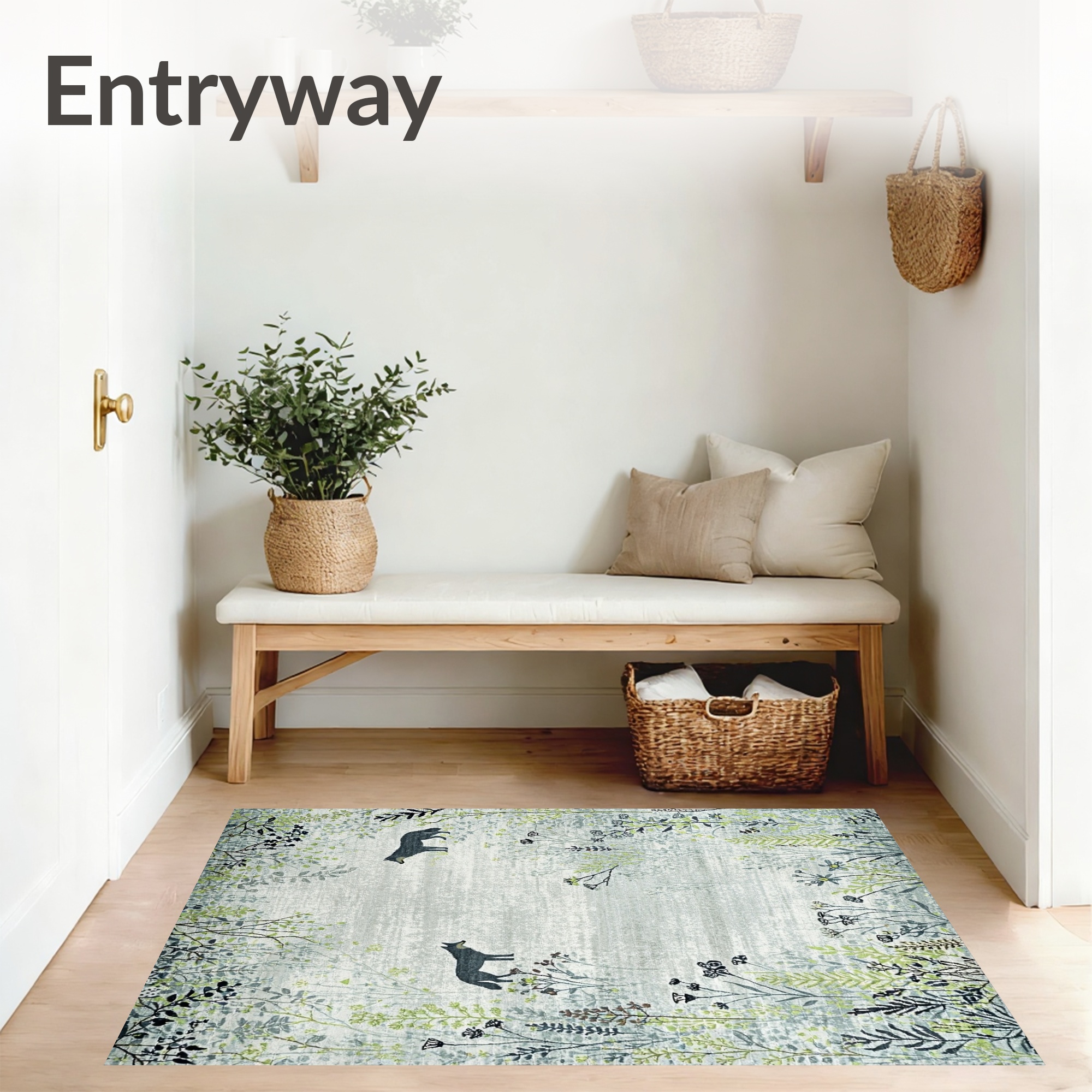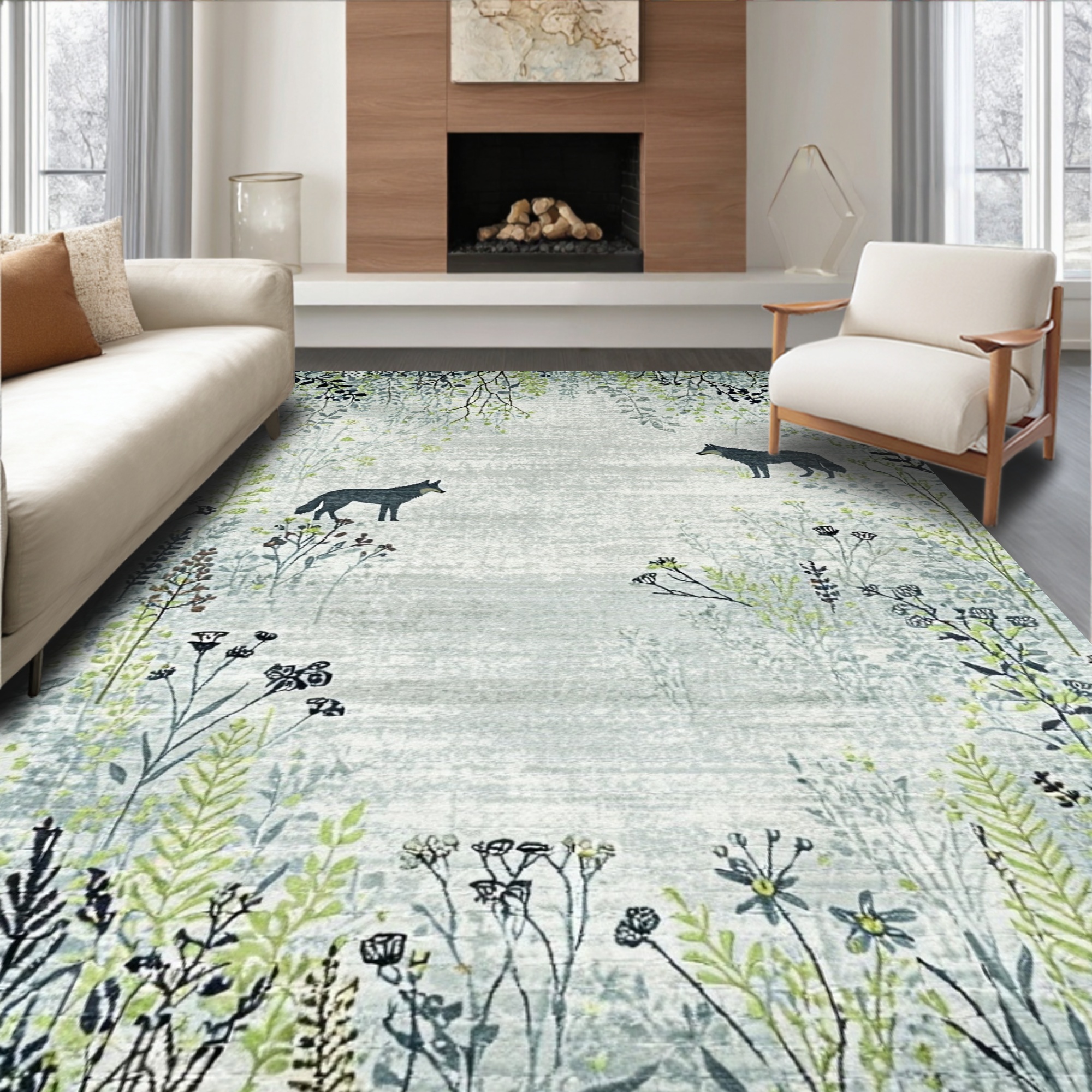 Serene Muted Green Woodland Rug