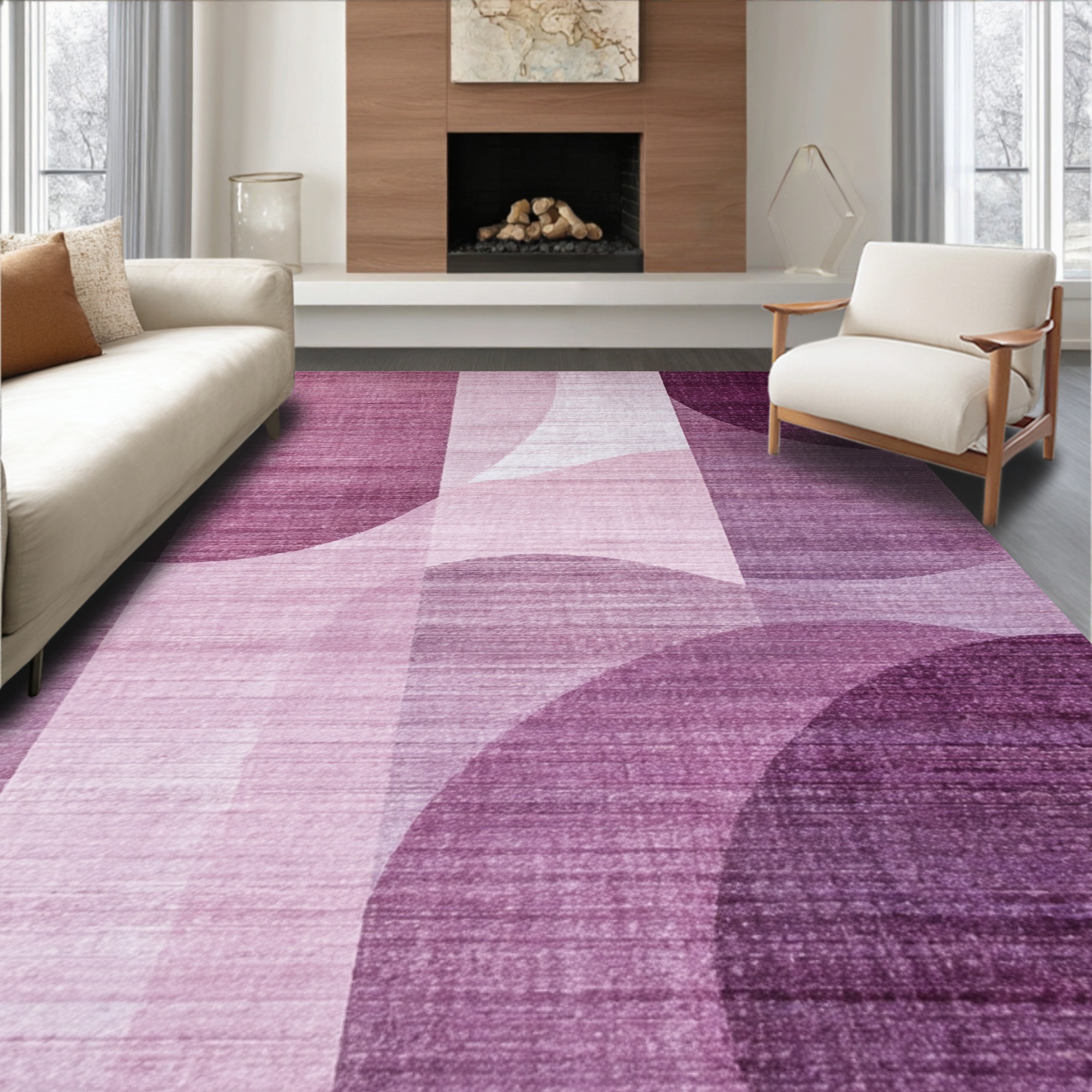 Serene Purple Curved Geometric Rug