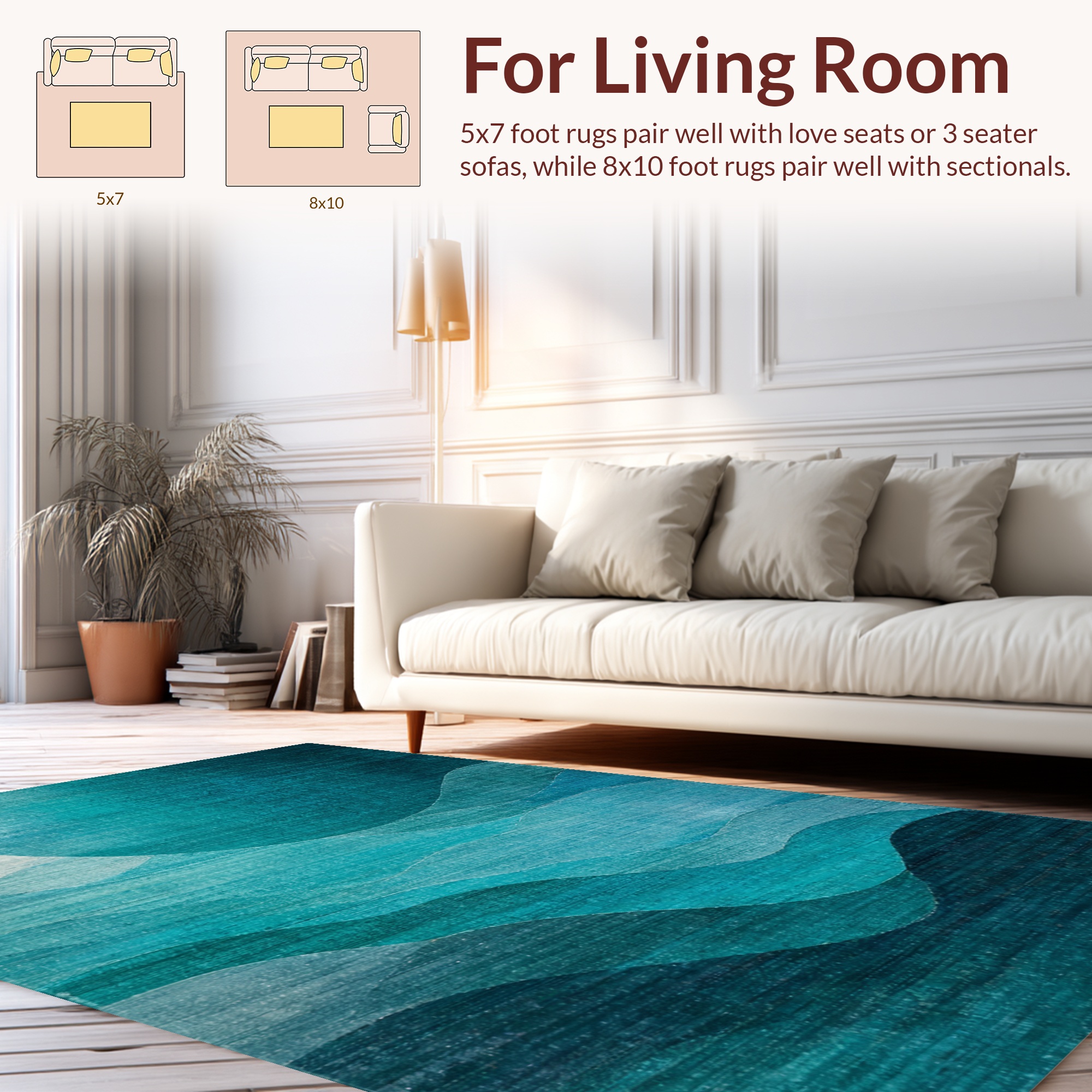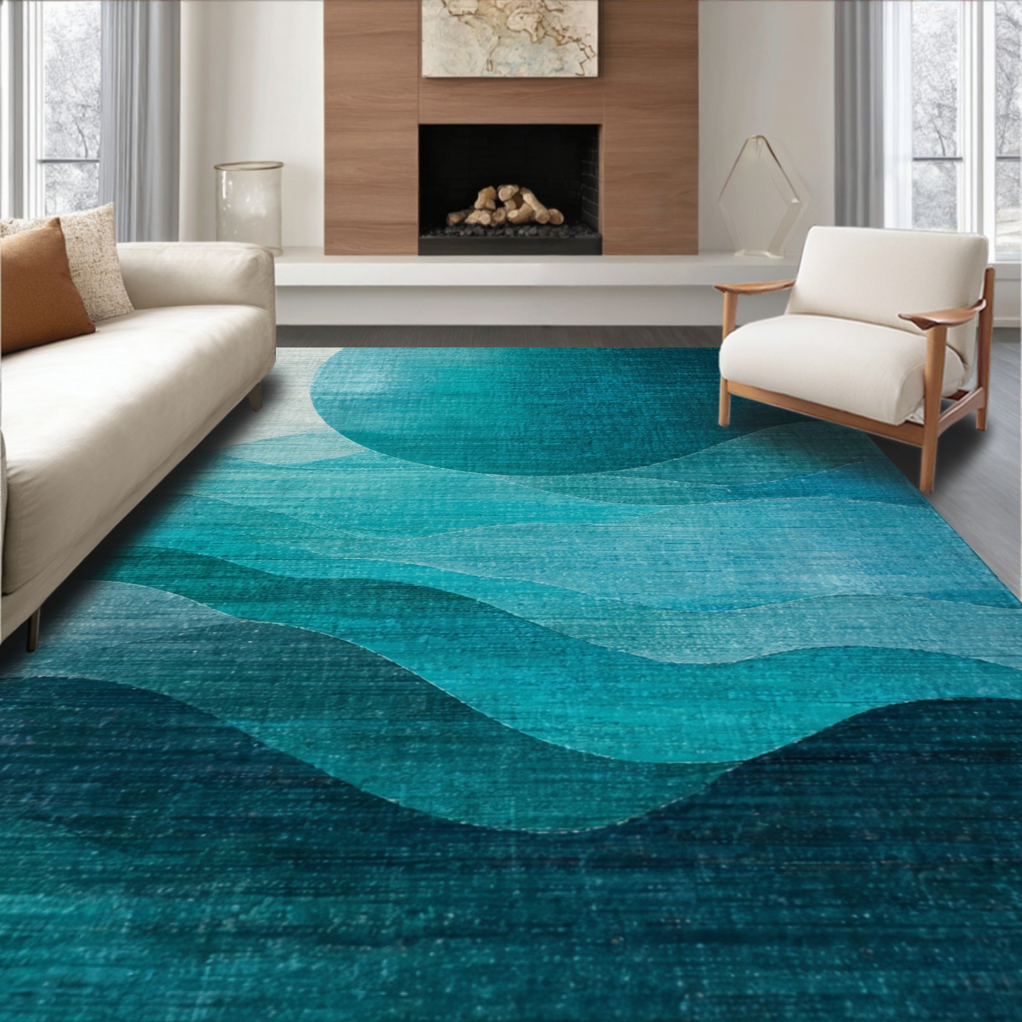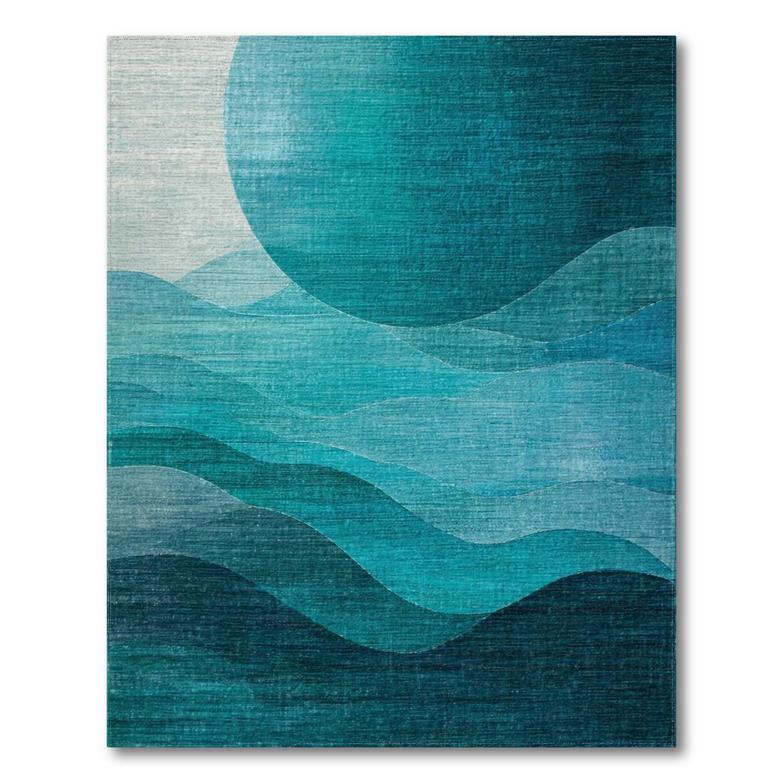 Serene Teal Wave-Patterned Rug