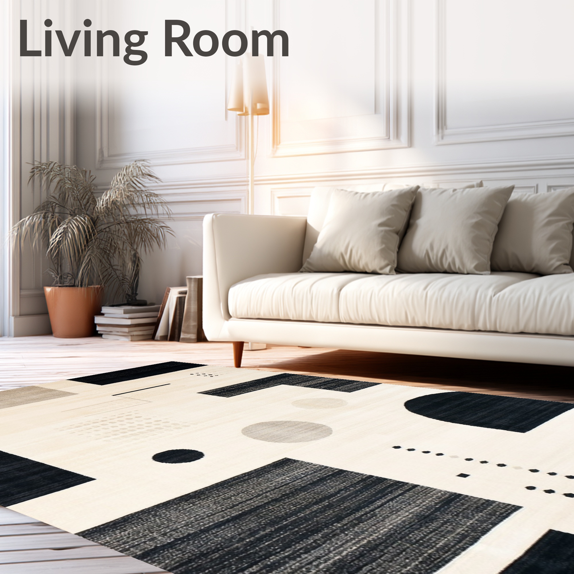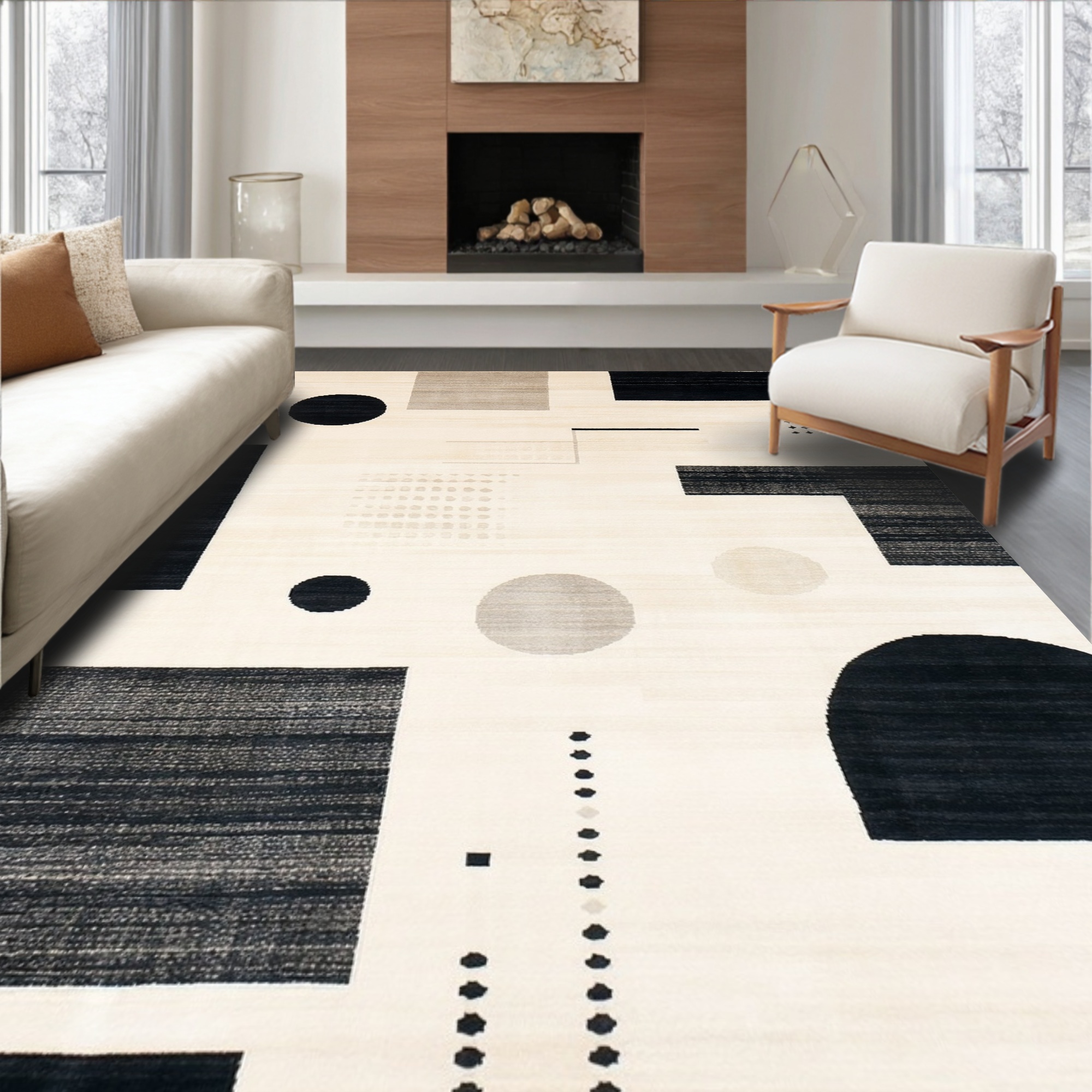 Sleek black-and-white geometric rug