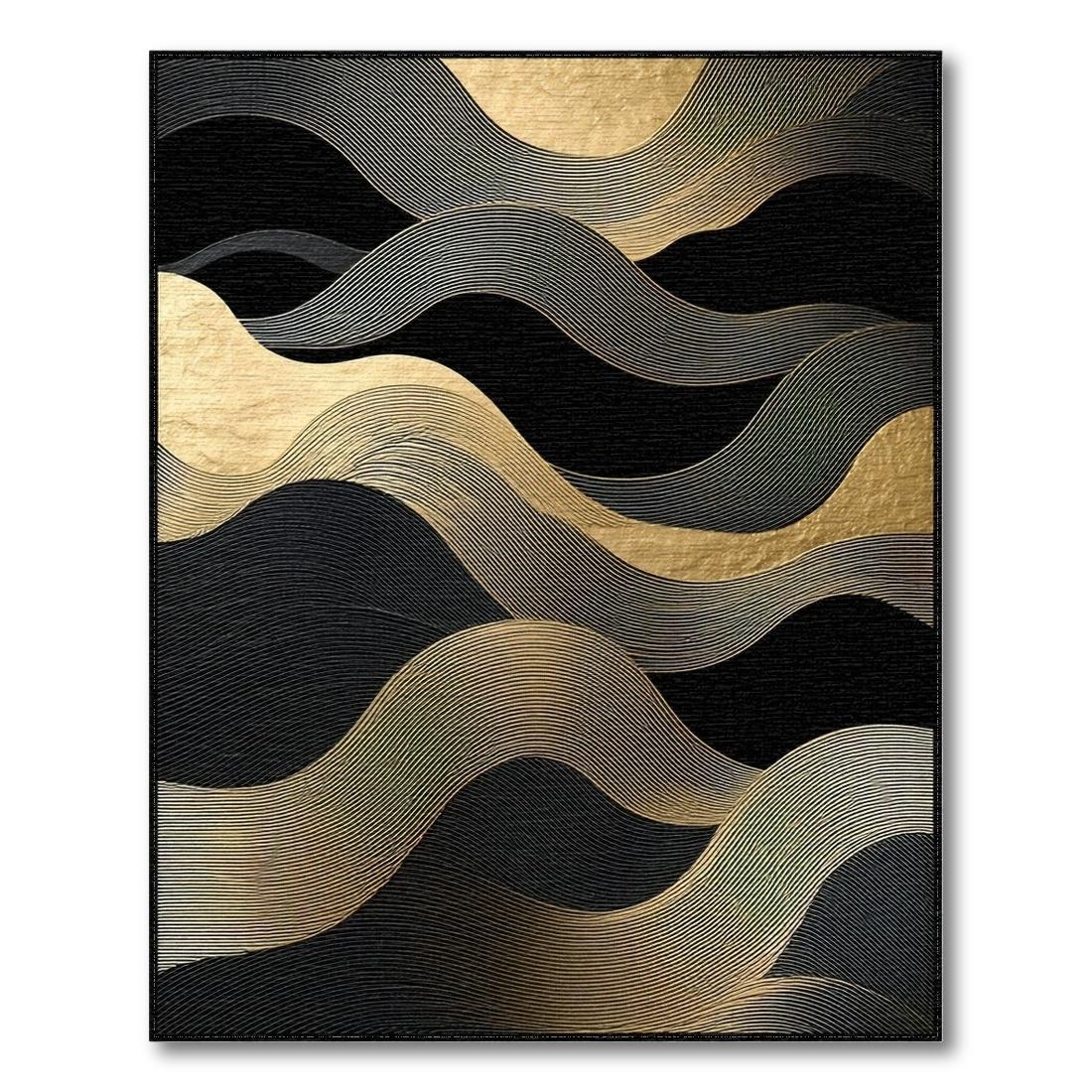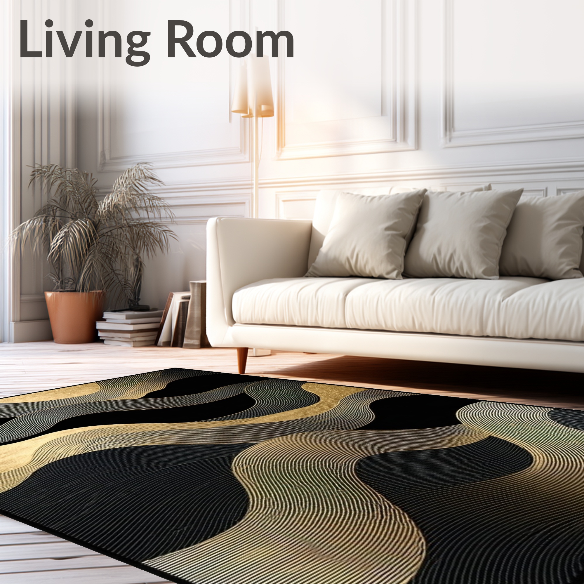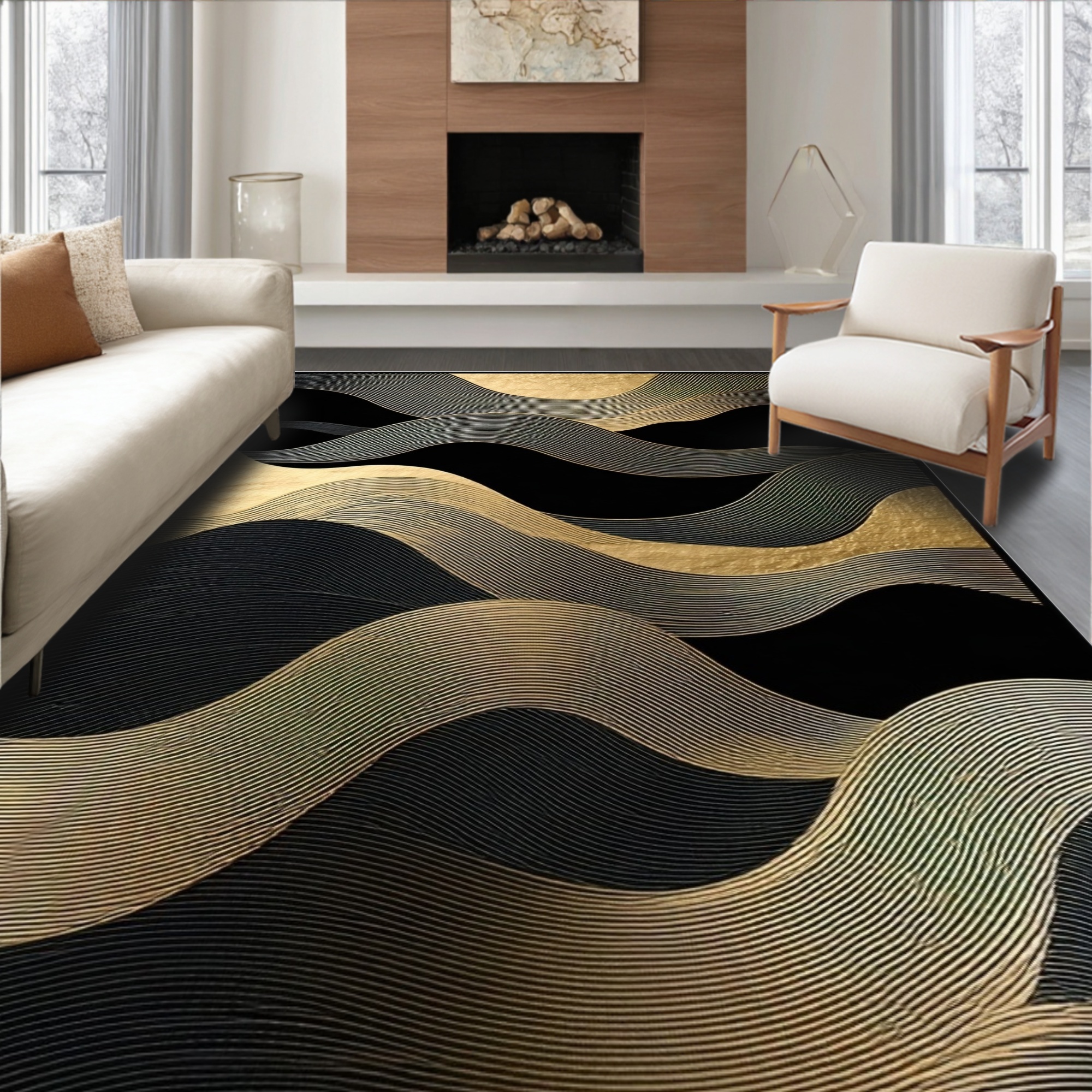 Sleek Black Gold Wavy Rug