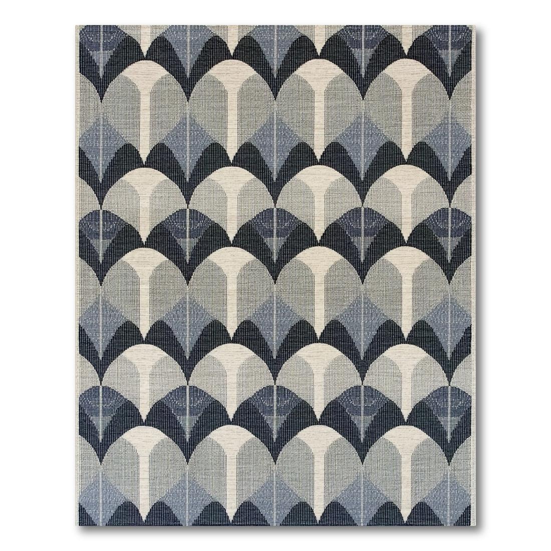 Sleek Blue Arched Geometric Rug